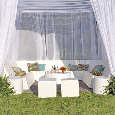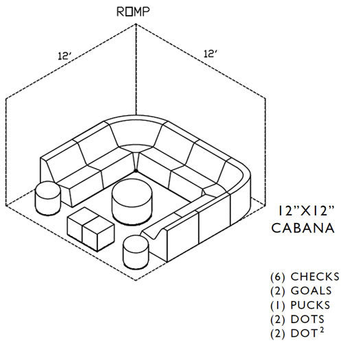 The Romp Club Now Collection by La-Fête is your go-to modular lounge for spontaneous outdoor gatherings and relaxed entertaining. This 12′ × 12′ cabana setup includes 6 Check Deep Lounge Chairs, 2 Goal Corner Modules, 1 Puck Round Ottoman, 2 Dot Cylinder Ottomans, and 2 Dot Squared Cube Ottomans—giving you flexible, stylish seating for guests, refreshments, and conversation clusters. Built from 95% recyclable materials and wrapped in durable marine-grade vinyl, this set is lightweight, weatherproof, and endlessly reconfigurable—perfect for patios, rooftops, resorts, and poolside events.