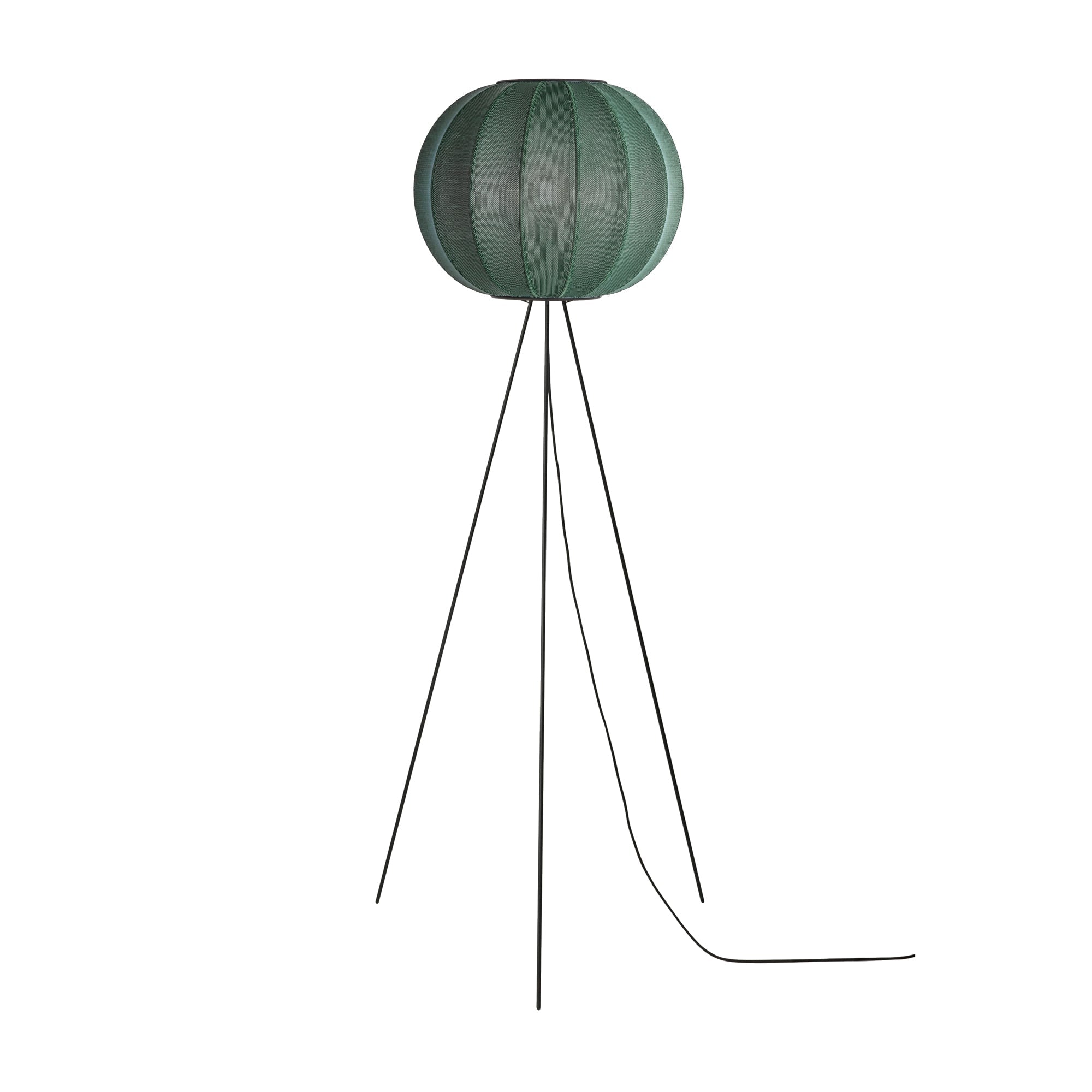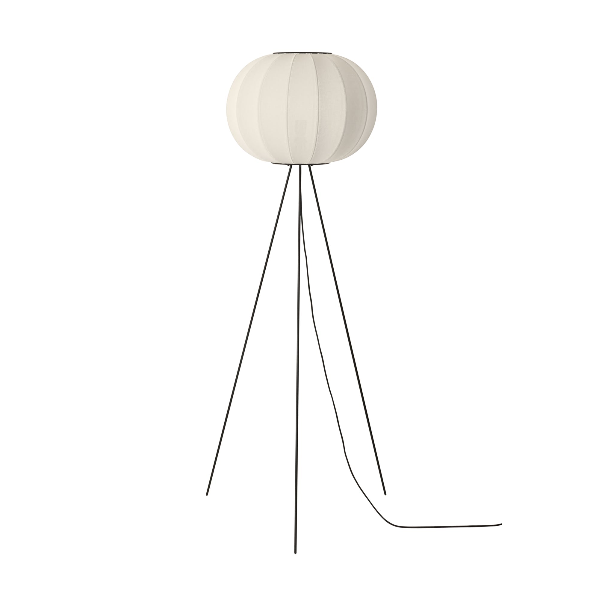 Floor lamp with foot switch on cord providing diffused ambient light. Bulb is visible through shade and one can use either a frosted or clear bulb to change the look. Production Process: The shade is knitted in three dimensions to give the ultimate in visual texture and interest. This process produces no waste material.