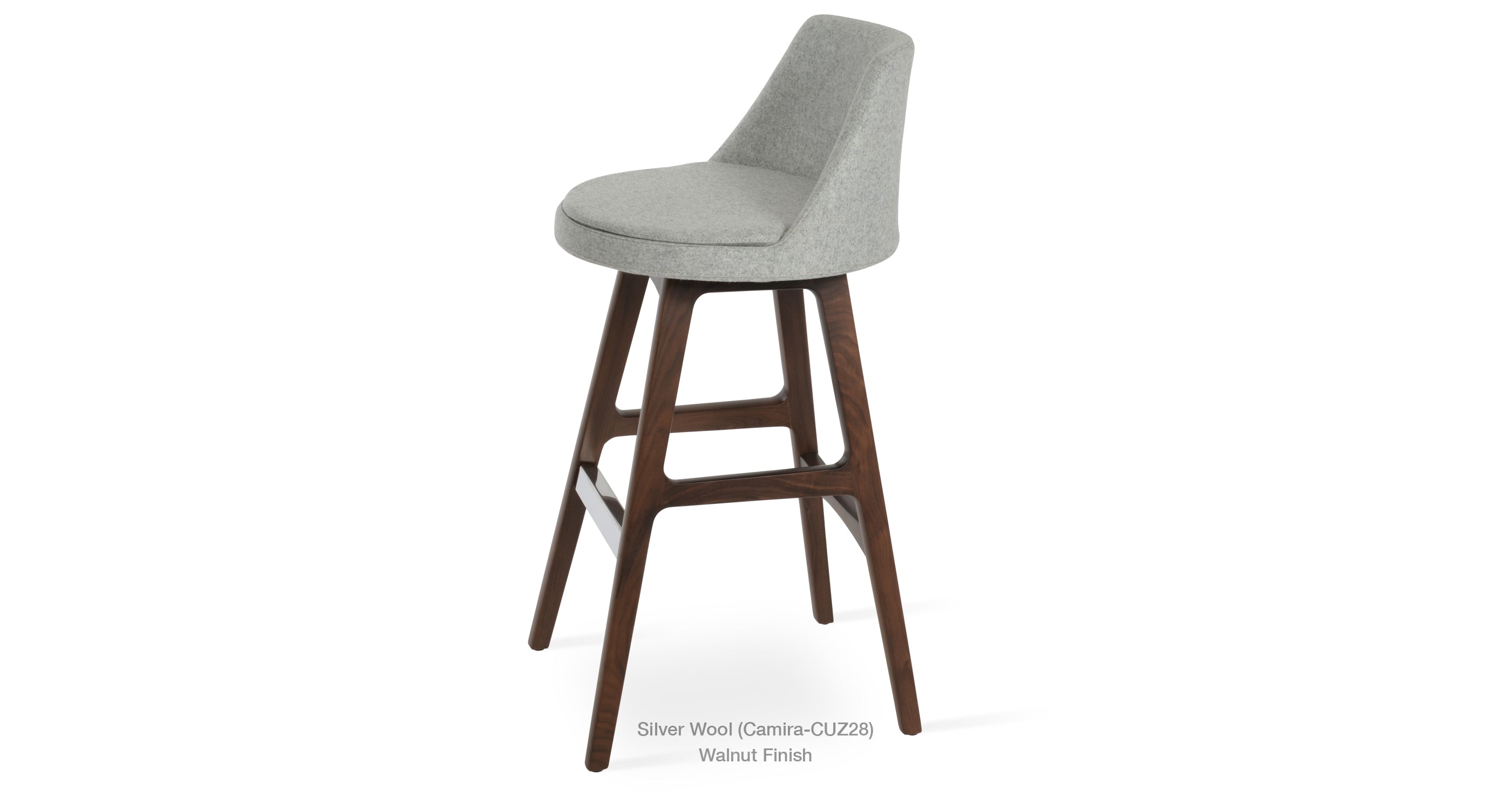 Martini PR Wood is a unique counter and bar stool with a comfortable upholstered seat and backrest on a wood base. The base finish is offered in beech wood walnut & wenge paint as well as original walnut and natural ash wood. The seat has a steel structure with “S” shape springs for extra flexibility and strength. This steel frame is molded by injecting polyurethane foam. Martini seat is upholstered with a removable velcro slip cover. The stool is specially recommended for commercial use with its durability. Upon request, stainless steel footrest will be used especially for contract projects.
