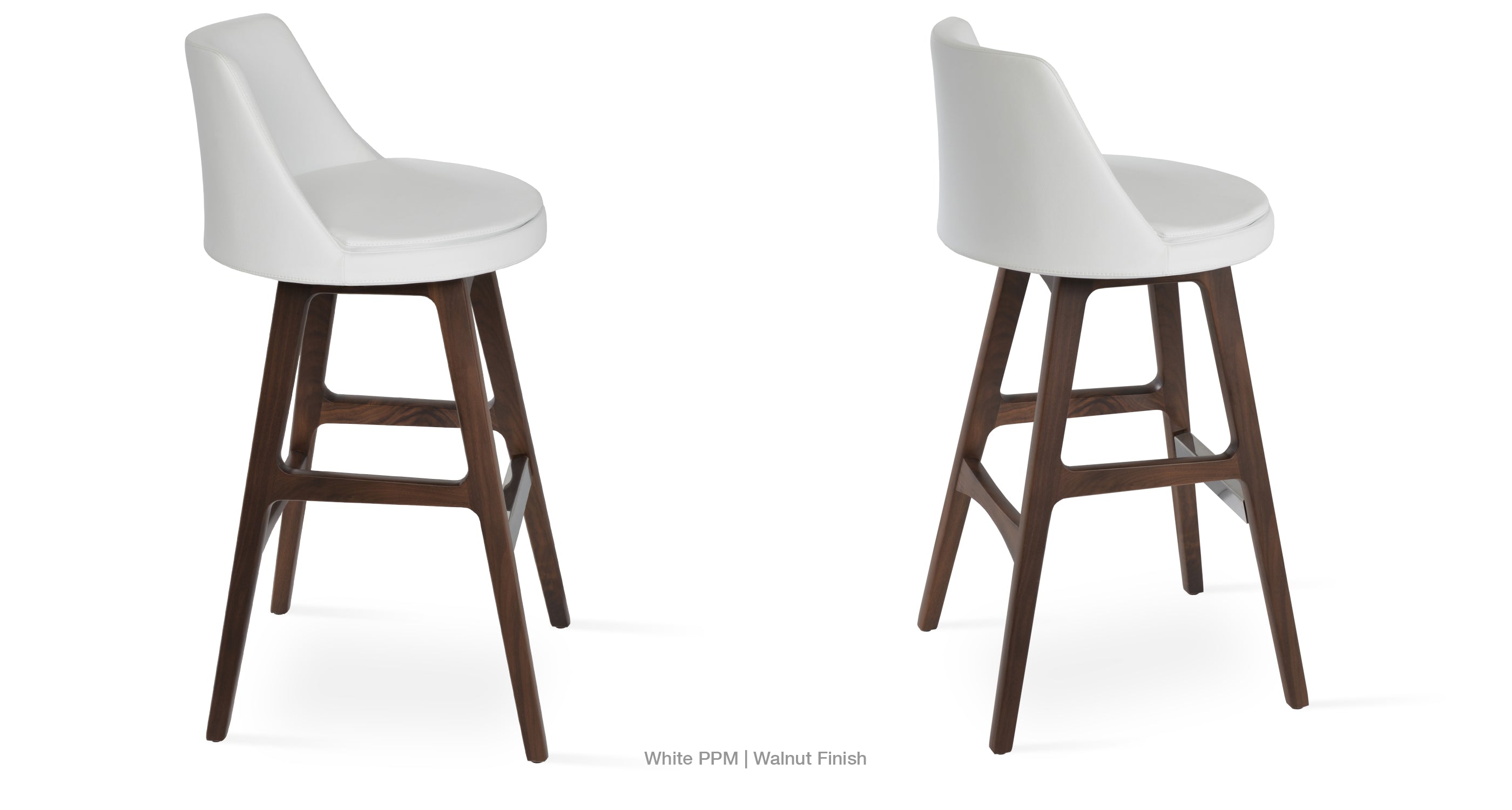 Martini PR Wood is a unique counter and bar stool with a comfortable upholstered seat and backrest on a wood base. The base finish is offered in beech wood walnut & wenge paint as well as original walnut and natural ash wood. The seat has a steel structure with “S” shape springs for extra flexibility and strength. This steel frame is molded by injecting polyurethane foam. Martini seat is upholstered with a removable velcro slip cover. The stool is specially recommended for commercial use with its durability. Upon request, stainless steel footrest will be used especially for contract projects.