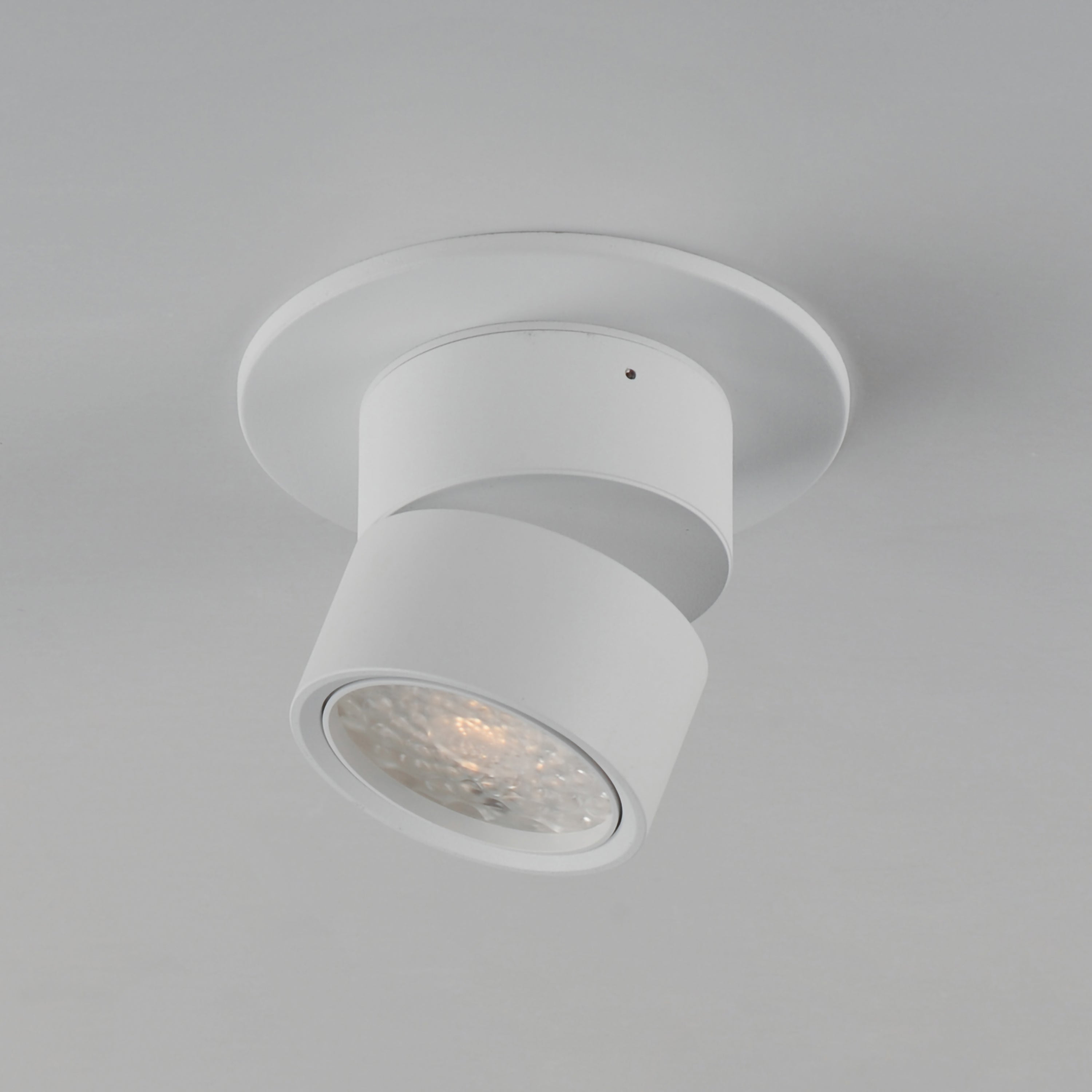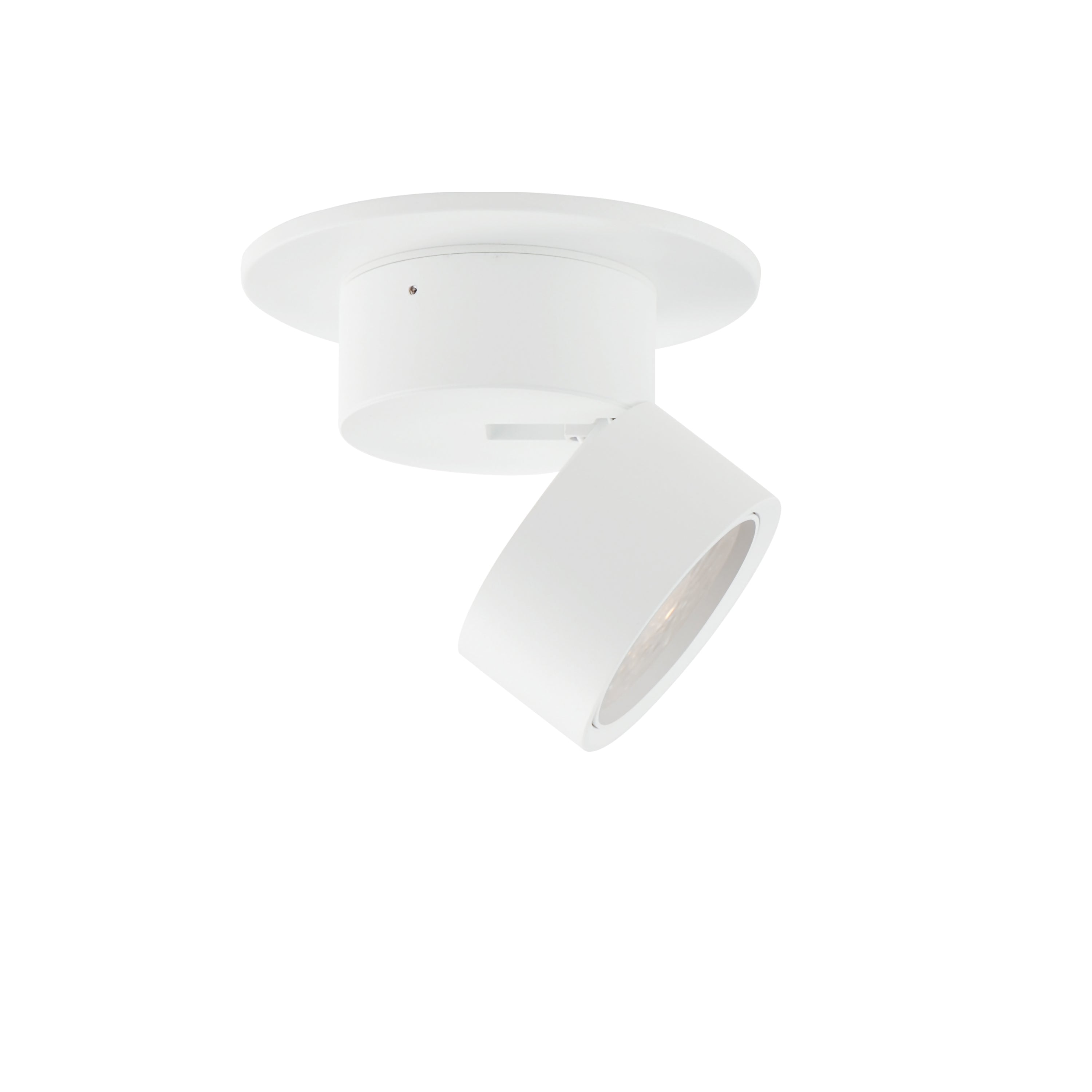 Inconspicuously recessed within its cylindrical house, an extending arm transforms this surface mounted light fixture into an adjustable spotlight. Simply unthread the top half along the seam to extend the frame length and swing the fixture into position. Twist the lens on the face of this fixture to adjust its beam angle spread. Available in Black and White and two apertures that include a mud-in ring for an even cleaner installation.