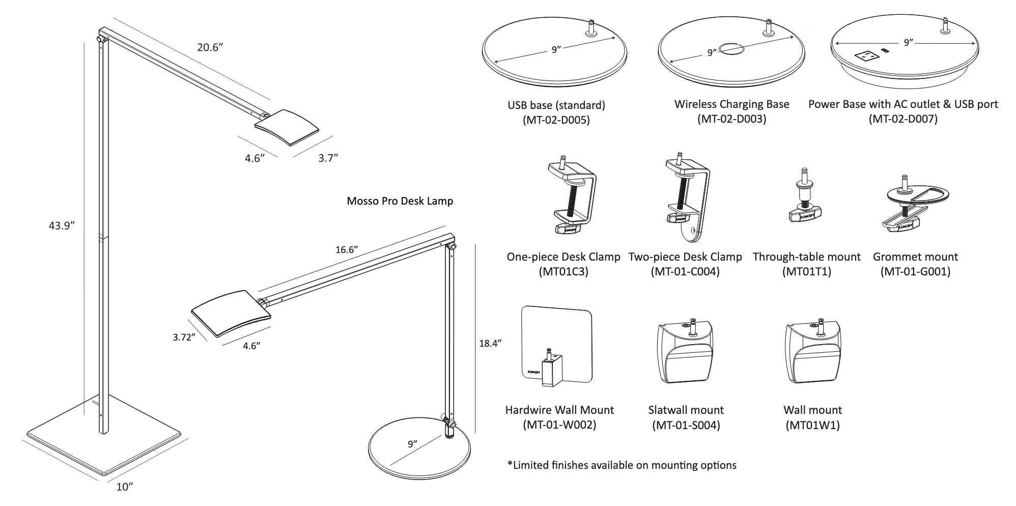 | Finishes | Metallic Black, Silver, White |
