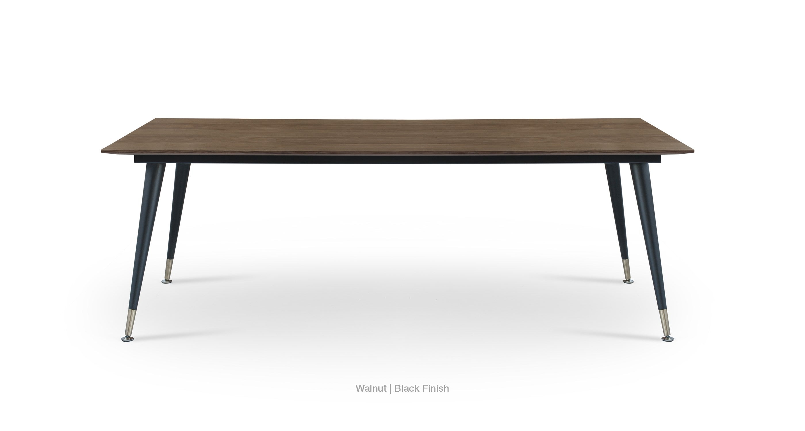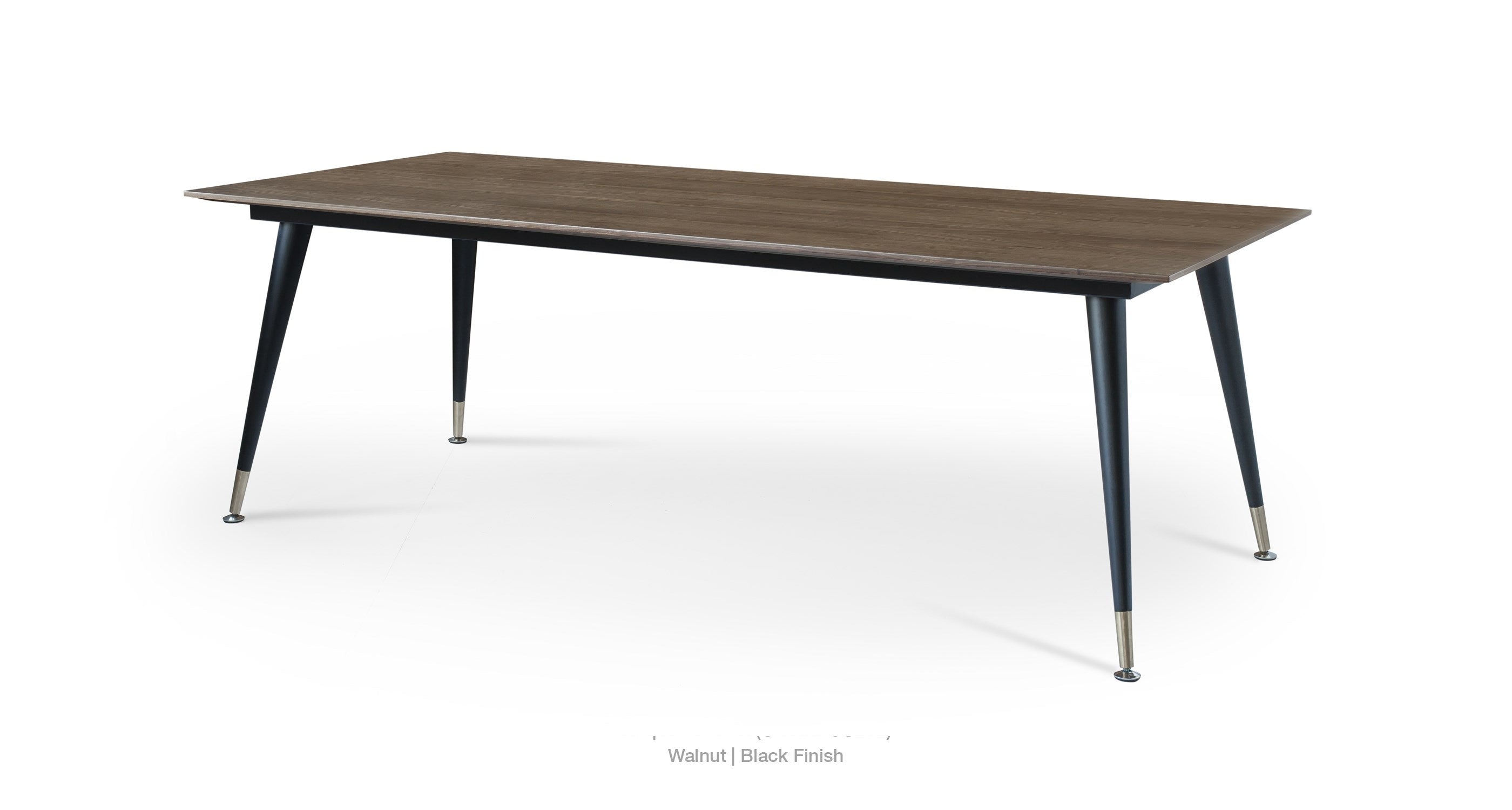 Made from a rich walnut wood with angled black lacquer legs with gold rings that lend visual interest and detail. The Neomi combines elegance and strength – making it the perfect place for gatherings.