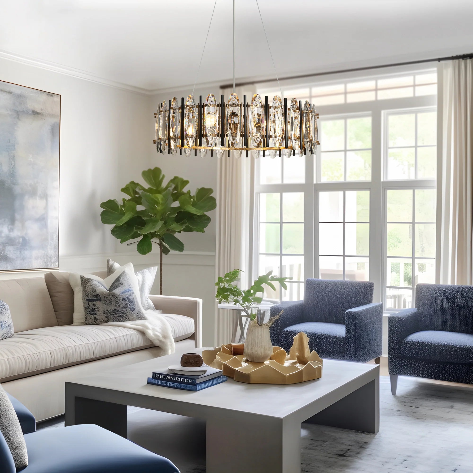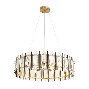 Black and Brass Crystal Drum Chandelier - Modern glam for your home.