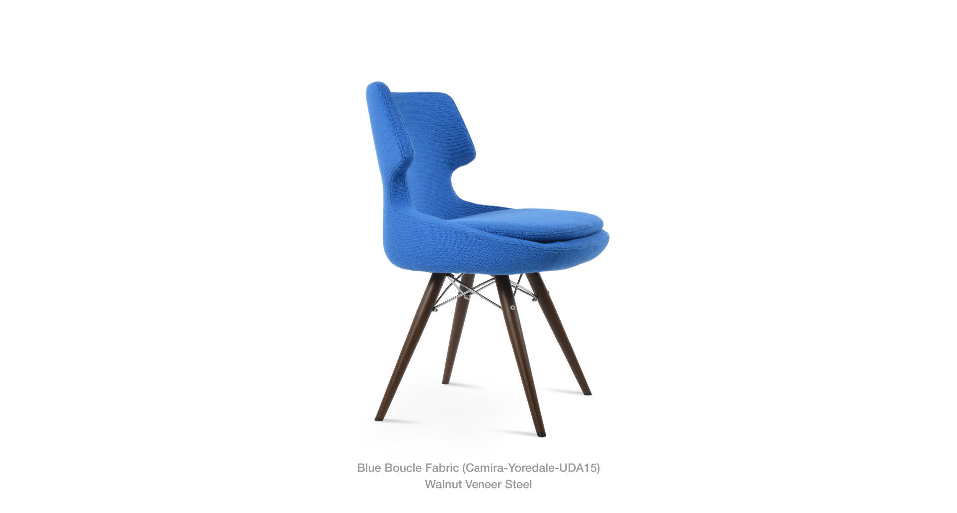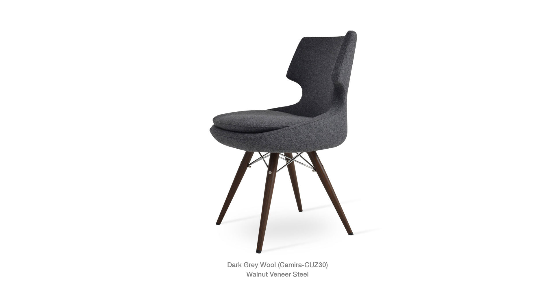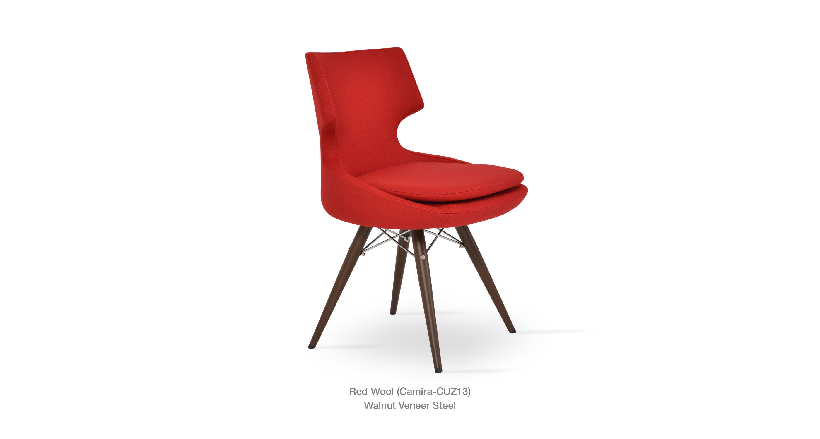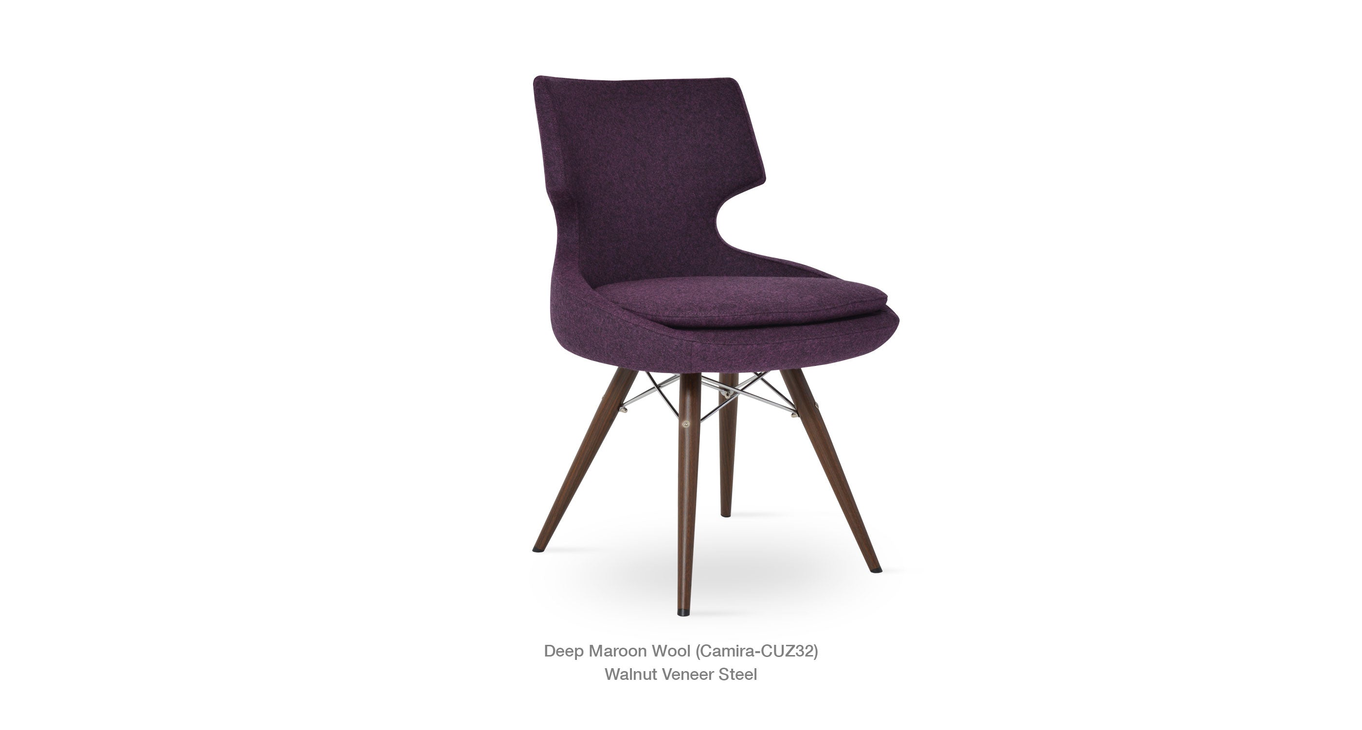 Patara Mw is a contemporary dining chair with a comfortable upholstered seat and backrest on dowel legs. Patara Mw has veneer steel legs available in black powder, natural as well as stainless steel finishes. Black wires are used with natural metal legs and chrome wires are used with black powdered metal legs. Each leg is tipped with a plastic glide screwed into the foot. The seat has a steel structure with “S” shape springs for extra flexibility and strength. This steel frame is molded by injecting polyurethane foam. Patara seat is upholstered with a removable velcro, enclosed leather, leatherette, wool as well as Camira organic wool slip cover. Patara Mw may be upholstered with variety of other colors as a special order with a minimum of quantity required. The chair is suitable for both residential and commercial use.