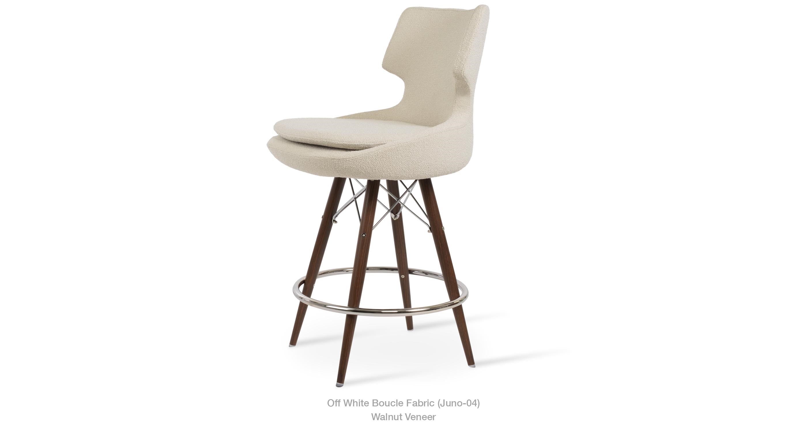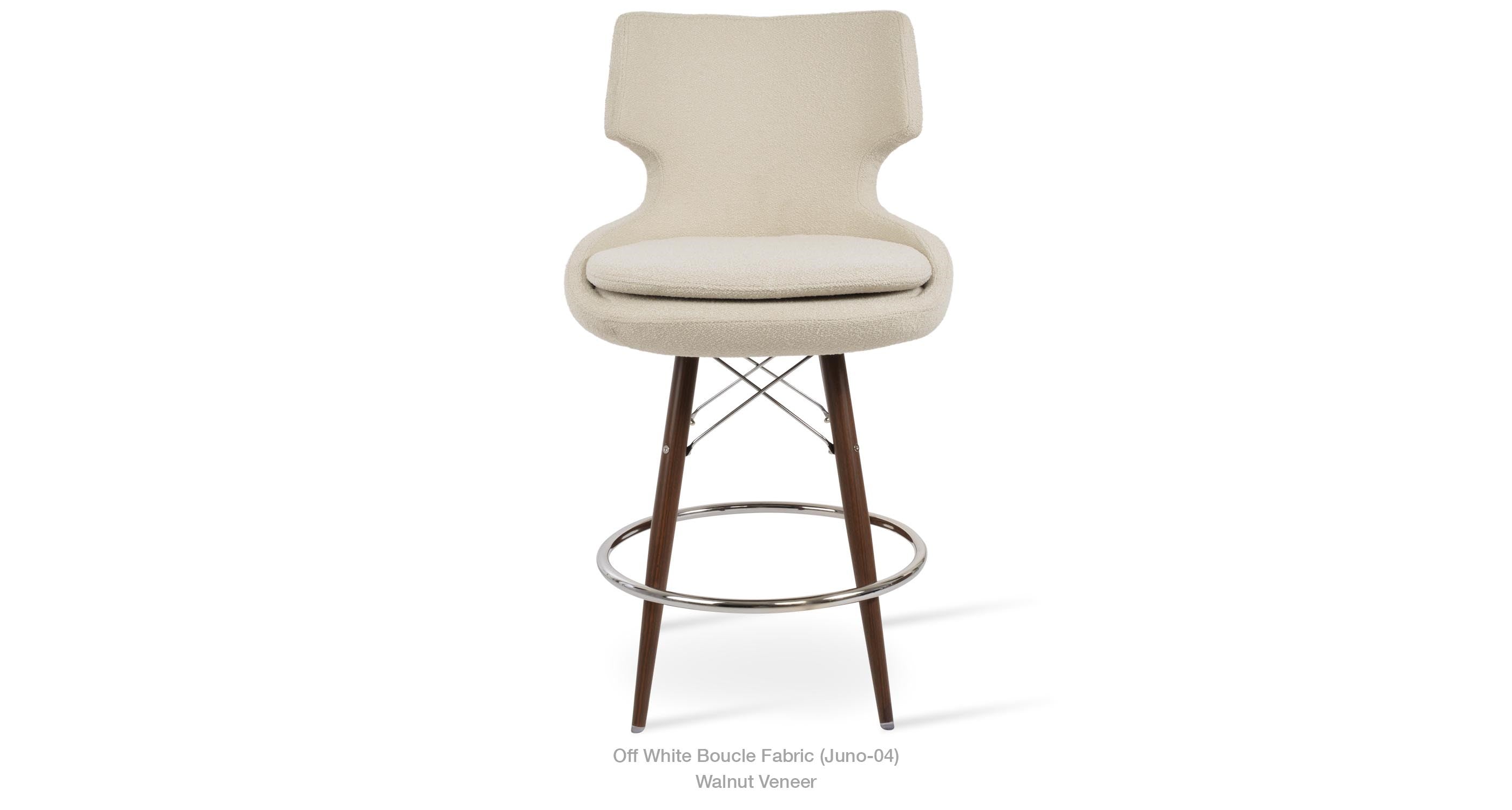 Patara MW Stool is a unique bar and counter stool with a comfortable upholstered seat on a steel frame. Metal legs available with black powder, natural as well as stainless steel finishes. Each leg is tipped with a plastic glides. The seat has a steel structure with “S” shape springs for extra flexibility and strength. This steel frame molded by injecting polyurethane foam. Patara seat is upholstered with a removable zipper enclosed leather, PPM, leatherette or wool fabric slip cover. This contemporary stool is suitable for both residential and commercial use.