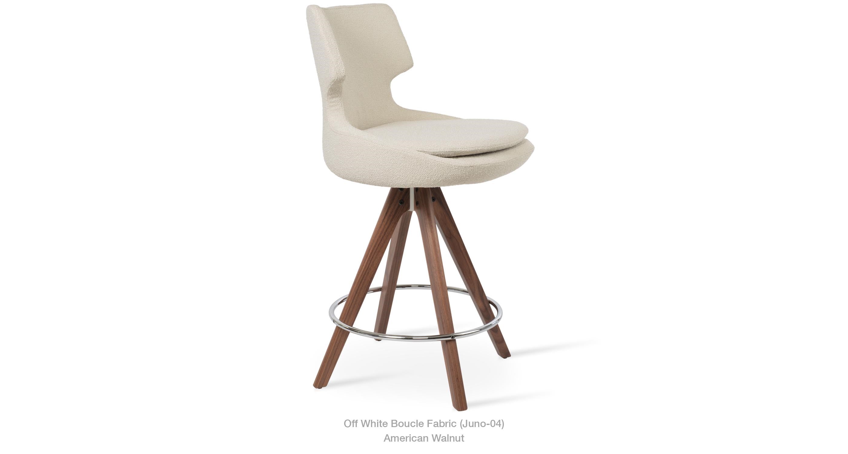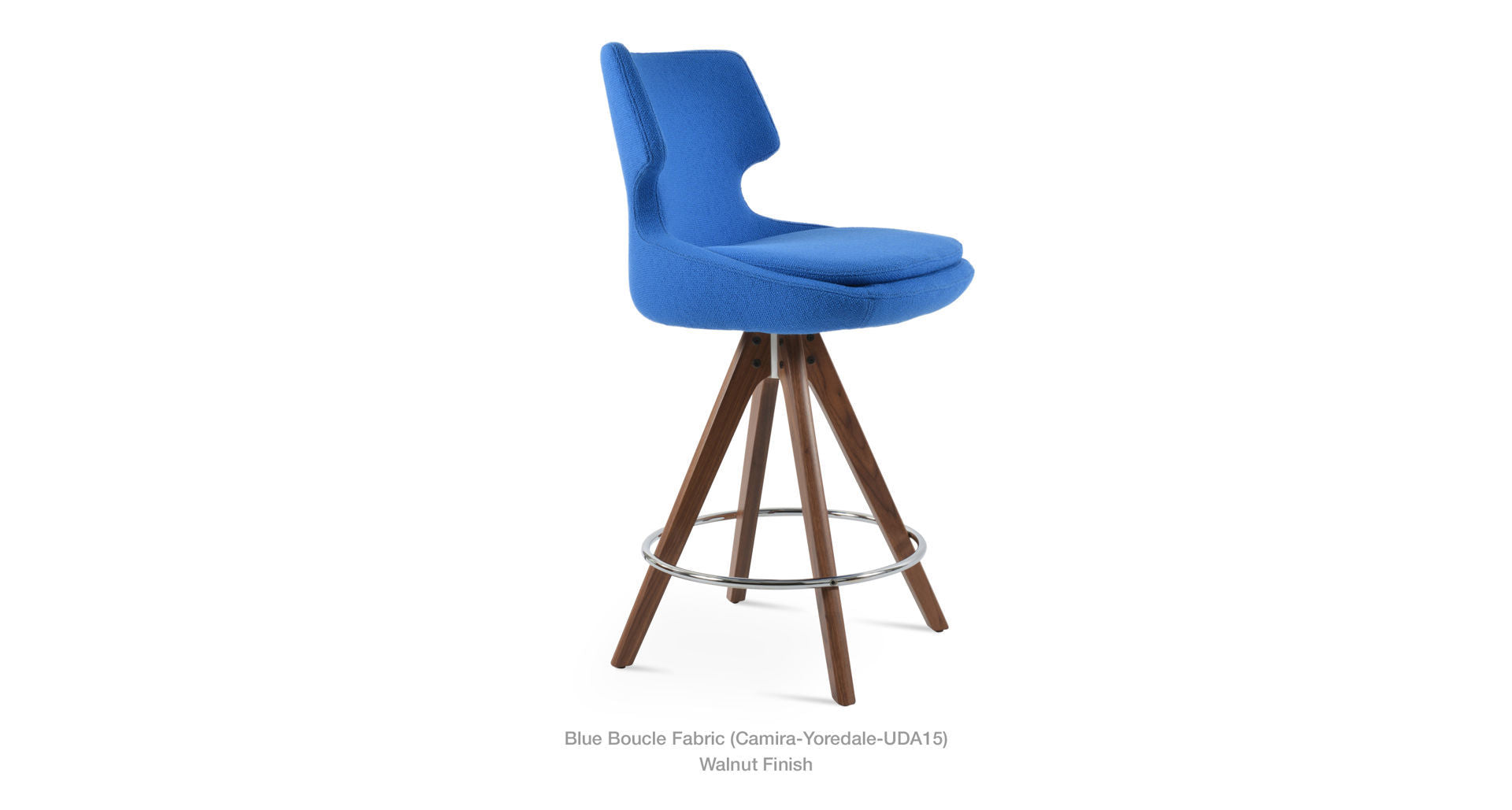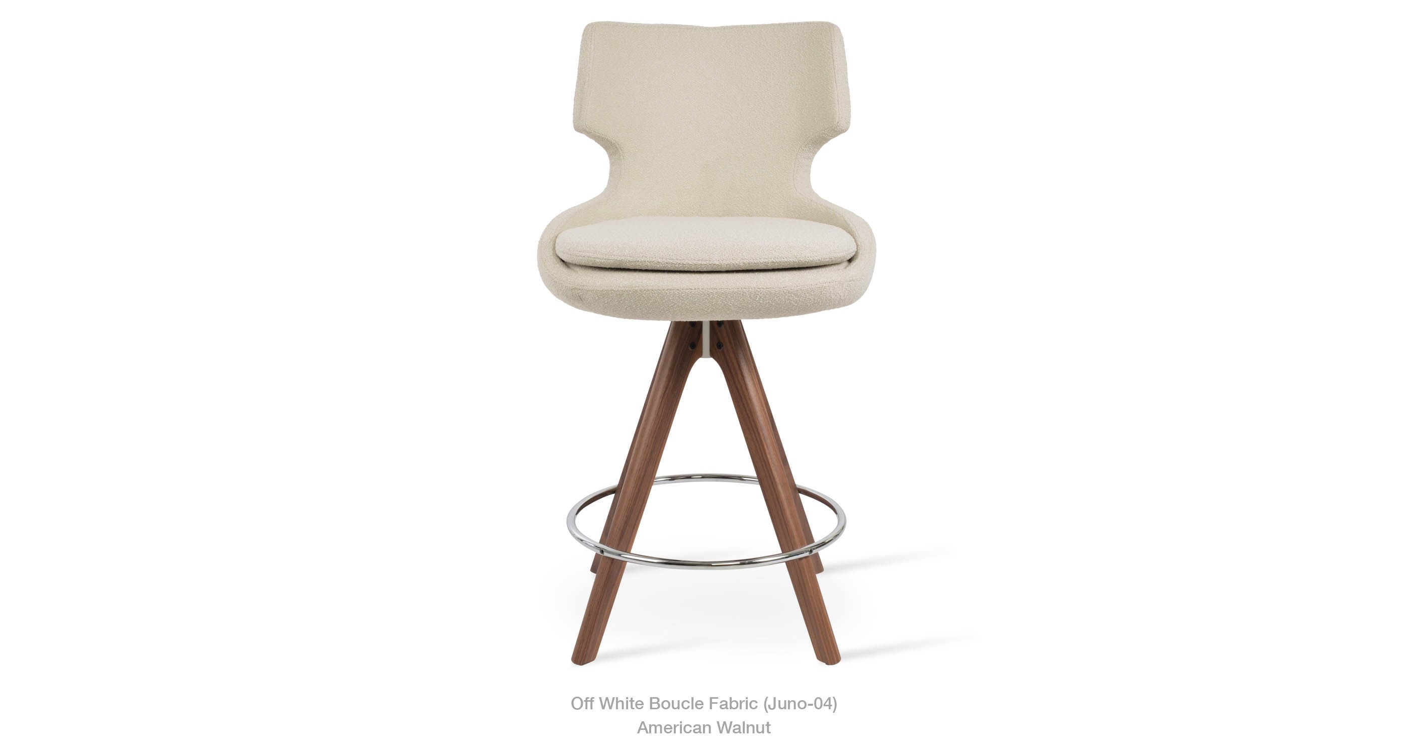 Patara Pyramid is a contemporary stool with a comfortable upholstered seat and backrest on wood legs available in walnut and natural finish. The seat has a steel structure with “S” shape springs for extra flexibility and strength. This steel frame molded by injecting polyurethane foam. Patara seat is upholstered with a removable zipper enclosed leather, PPM, leatherette or wool fabric slip cover. Patara Pyramid Stools may be upholstered with variety of other colors as a special order with a minimum of quantity required. This contemporary stool is suitable for both residential and commercial use.