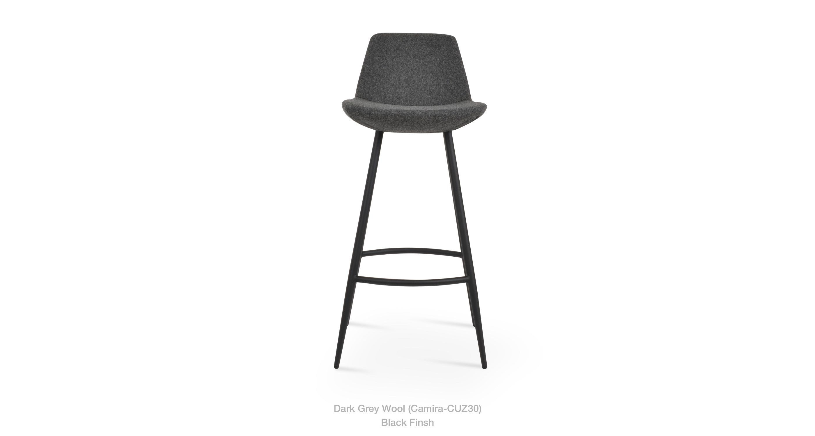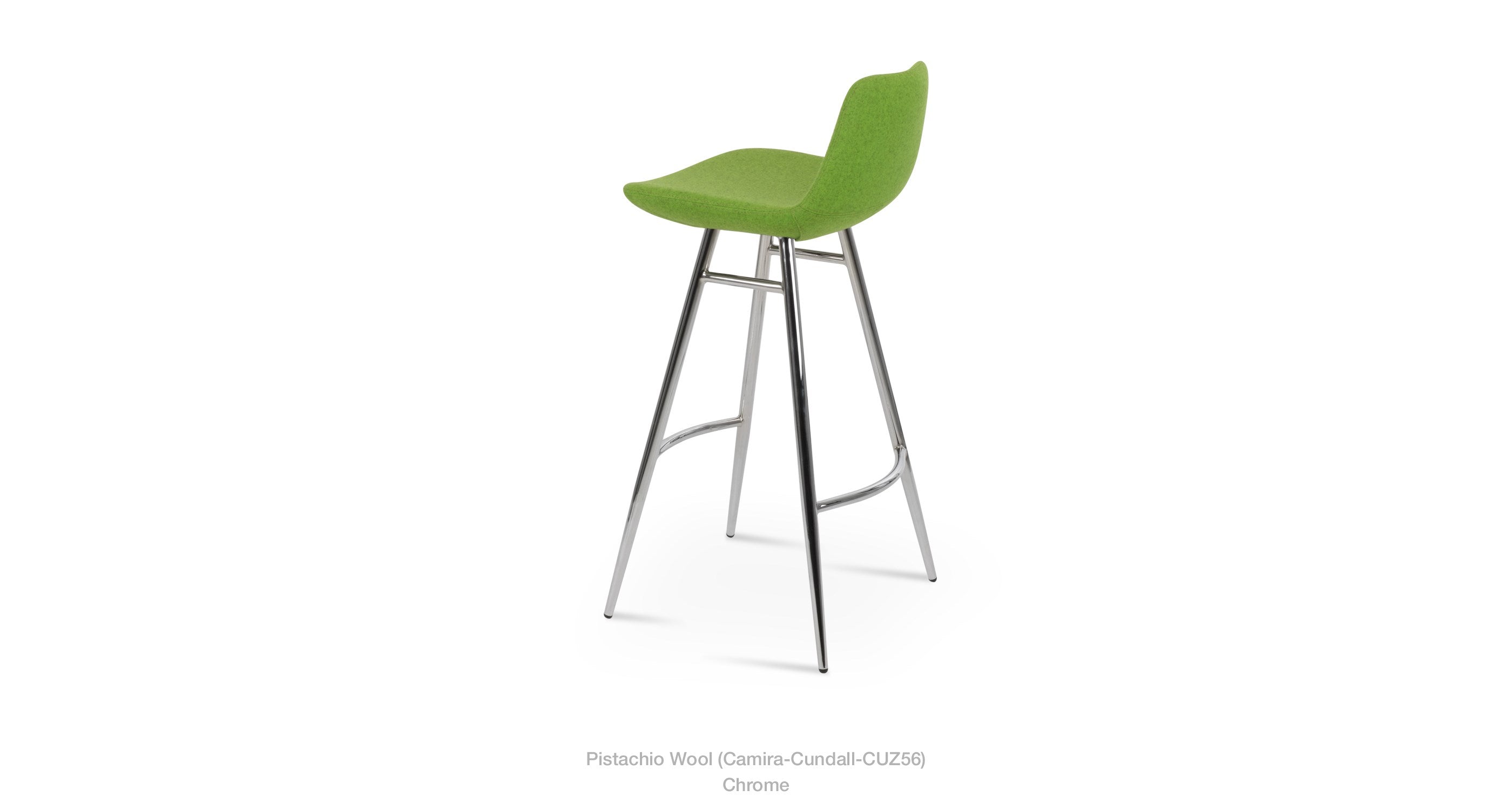 Pera Galata stool is a unique stool with a comfortable upholstered seat and backrest on steel frame. Each leg is tipped with a plastic glide inserted to the foot. With its chromed steel tubular footrests, it becomes an ideal solution for kitchen and bar counters. The footrests are fixed inside the four-leg frame. The seat has a steel structure with “S” shape springs for extra flexibility and strength. This steel frame molded by injecting polyurethane foam. Pera seat is upholstered with a removable velcro enclosed leather, PPM or wool fabric slip cover. The stool is suitable for both residential and commercial use and can be ordered as counter or bar stool. Pera Galata stool are available with swivel seat options too.