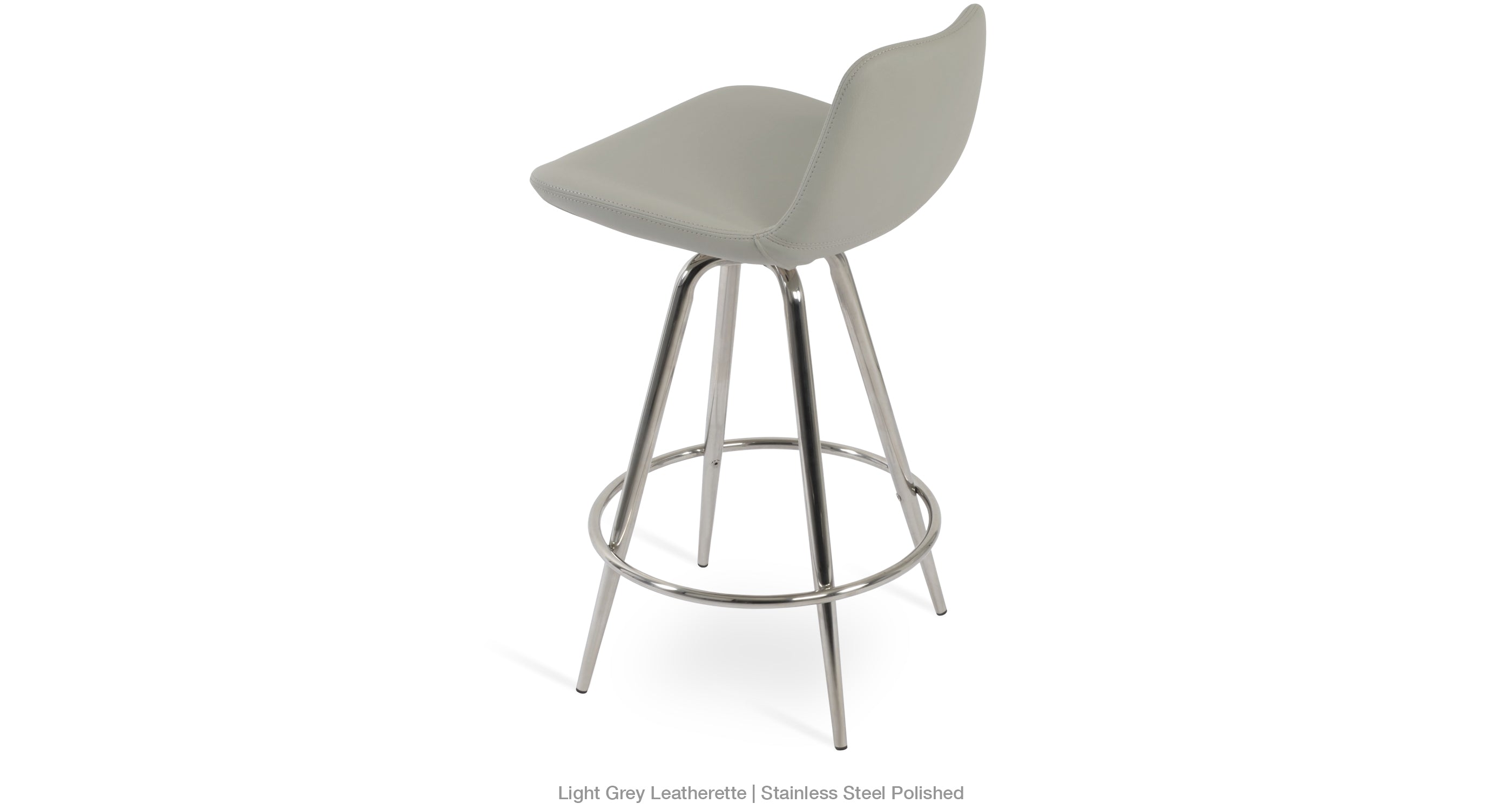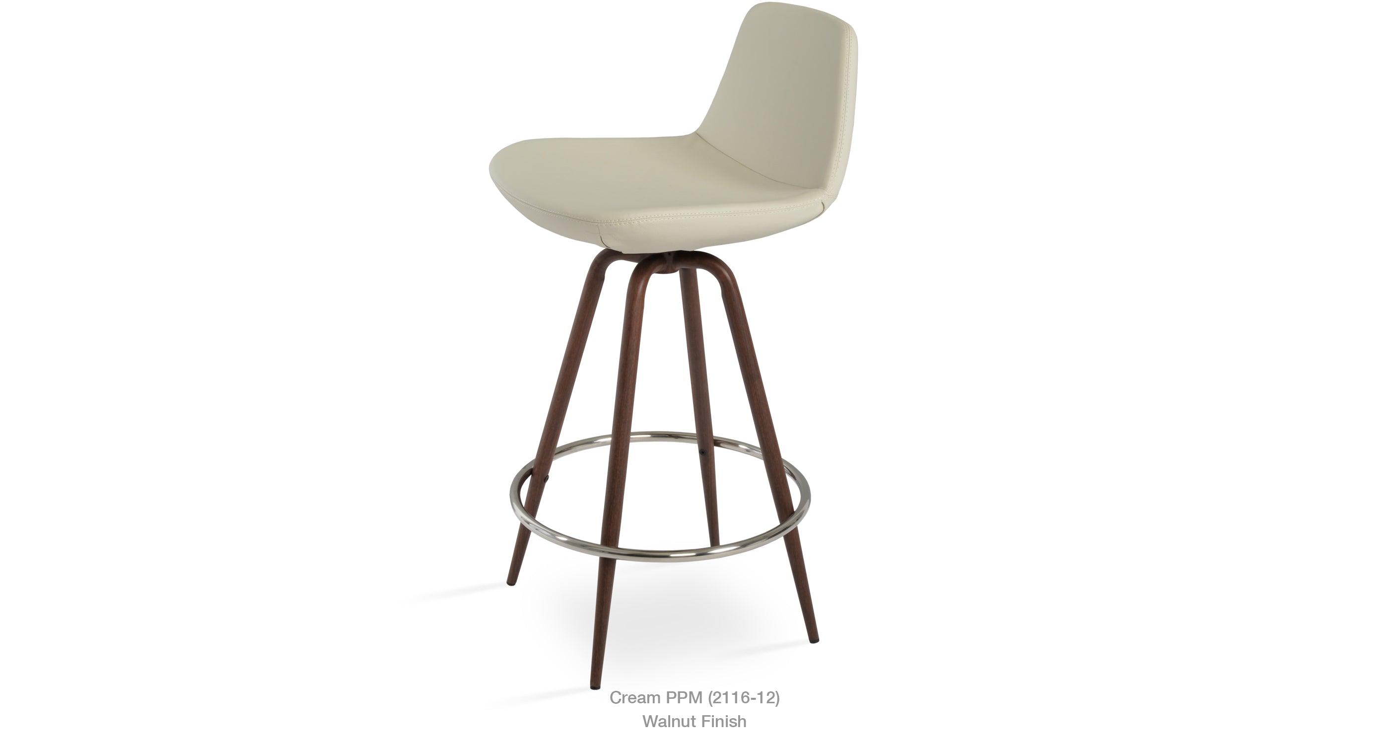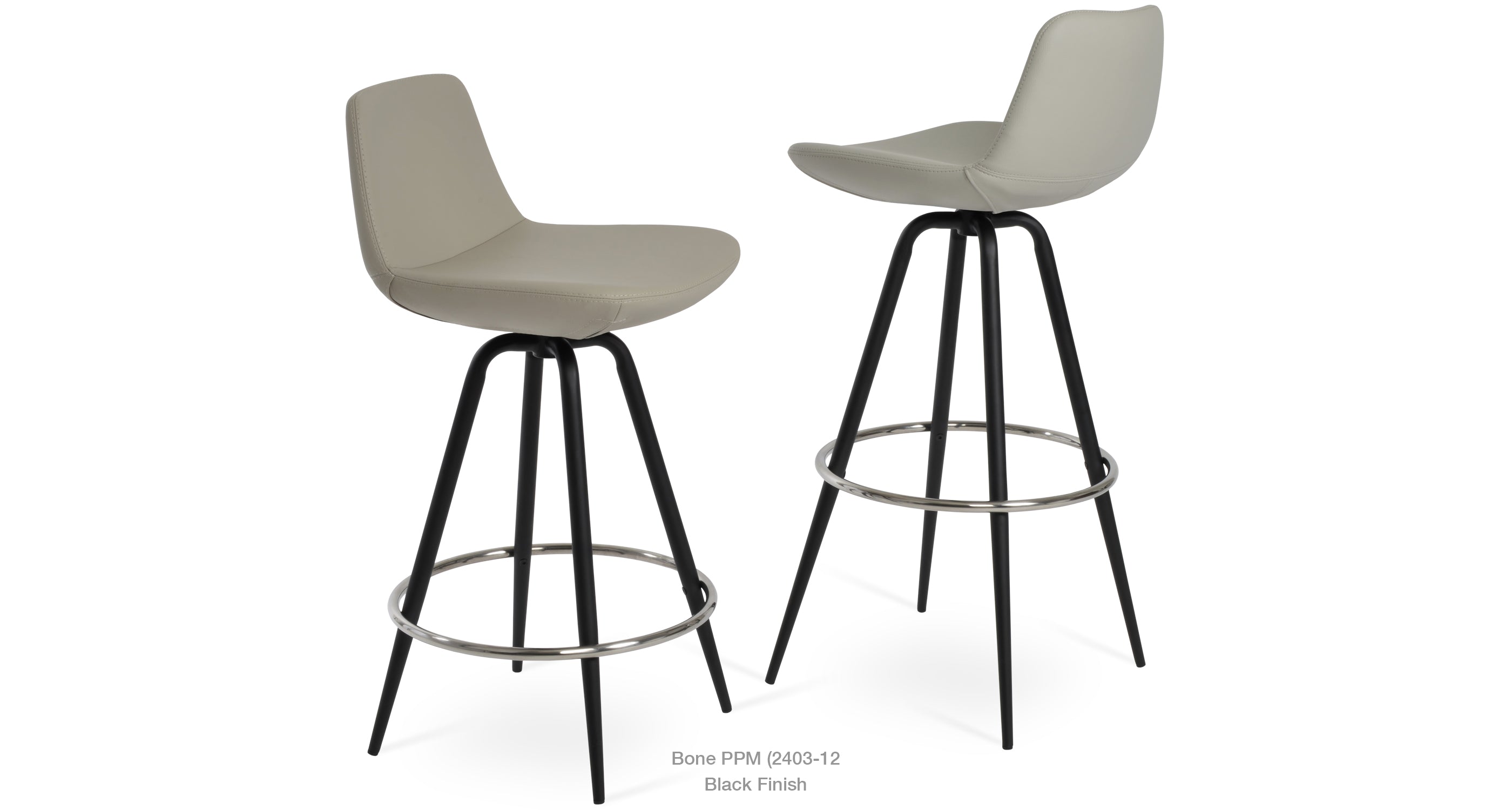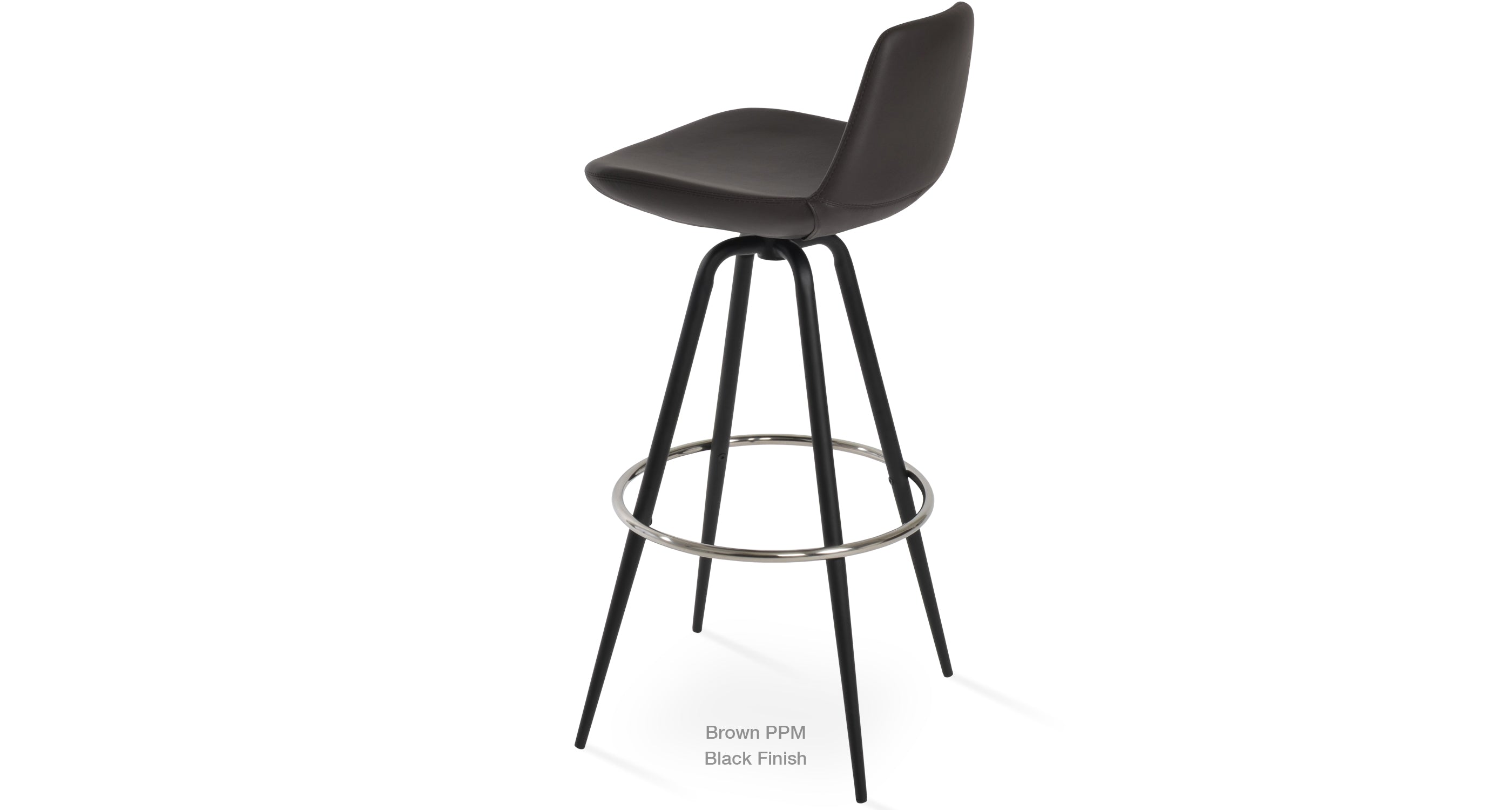 Pera Max Swivel stool is a unique counter and bar stool with a comfortable upholstered seat and backrest on solid chromed steel max swivel base. Each leg is tipped with a plastic glide embedded into the metal wire. The seat has a steel structure with “S” shape springs for extra flexibility and strength. This steel frame molded by injecting polyurethane foam. Pera seat is upholstered with a removable velcro enclosed leather, PPM or wool fabric slip cover. The stool is suitable for both residential and commercial use.