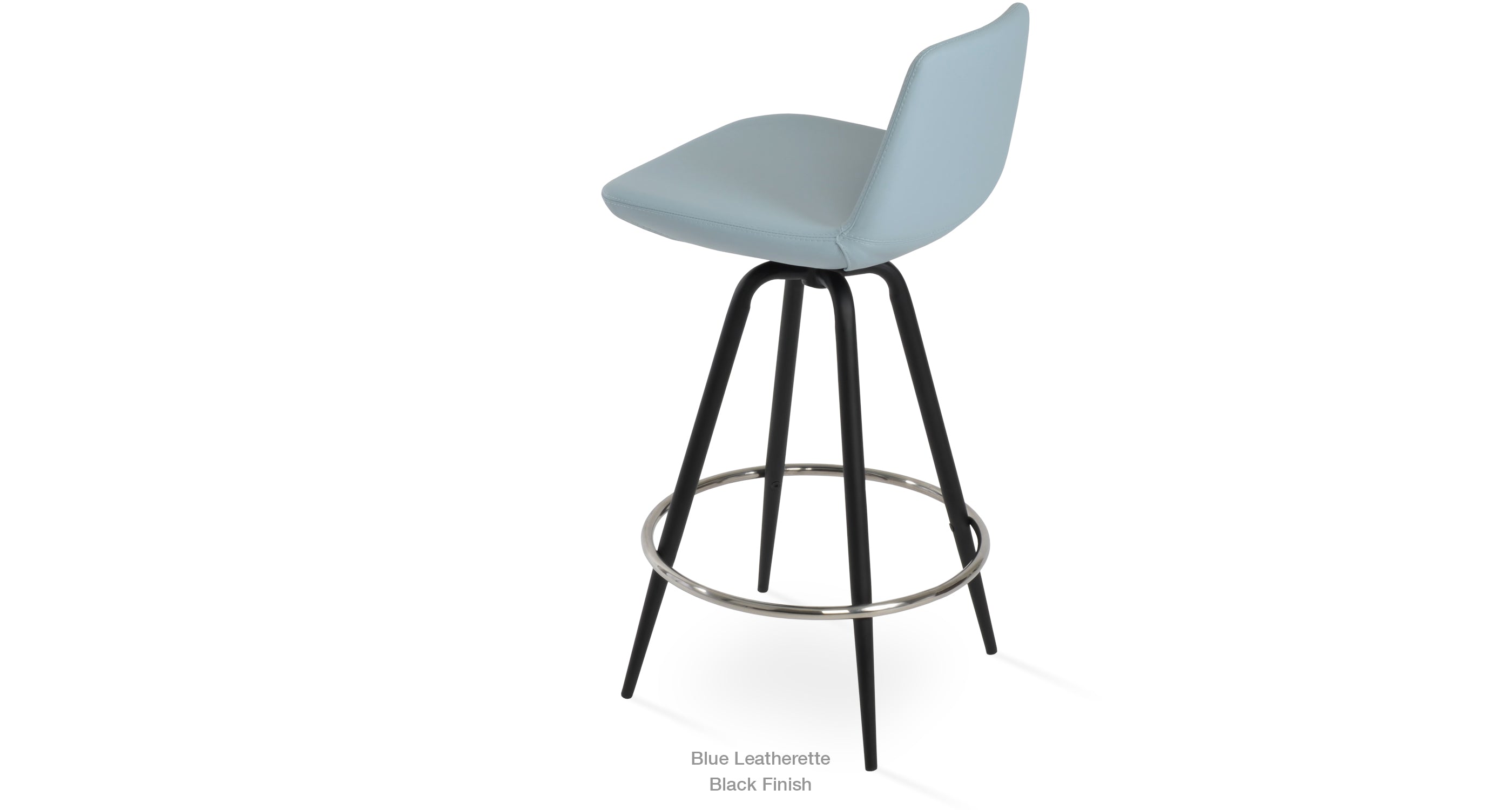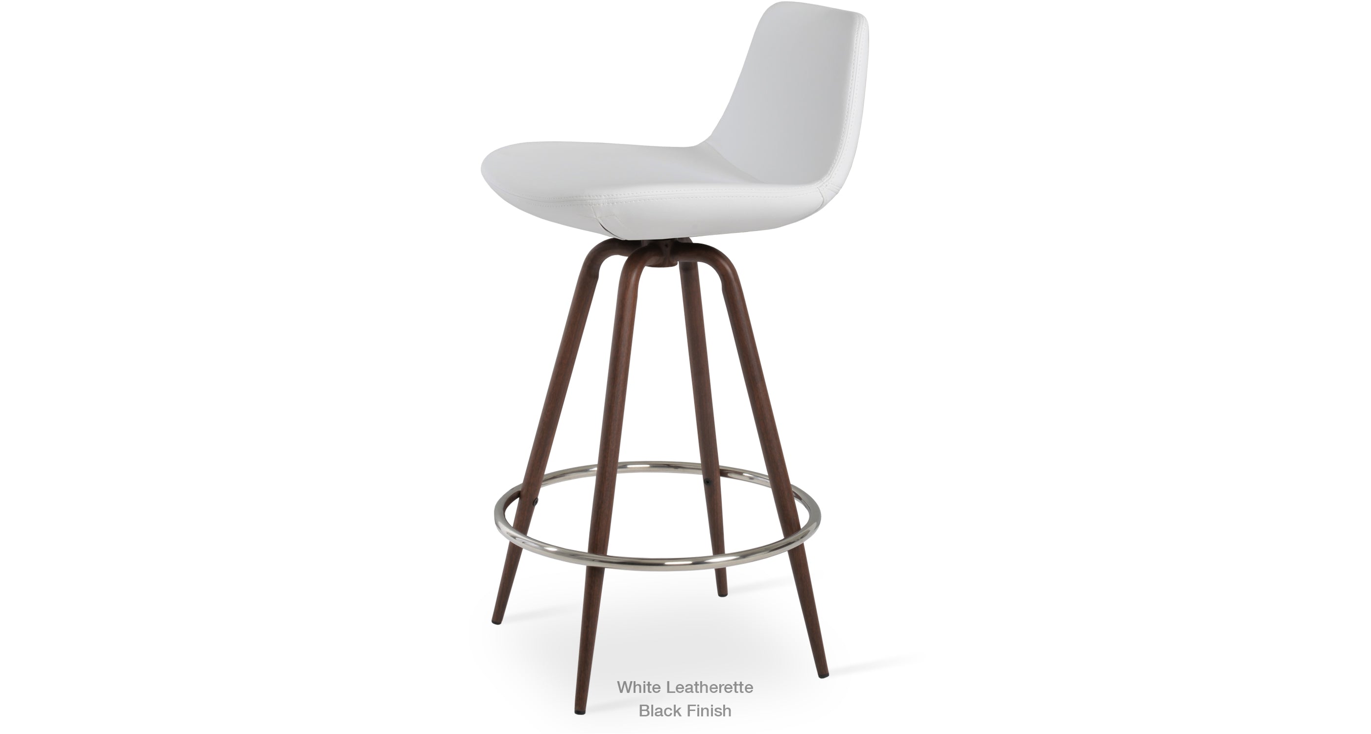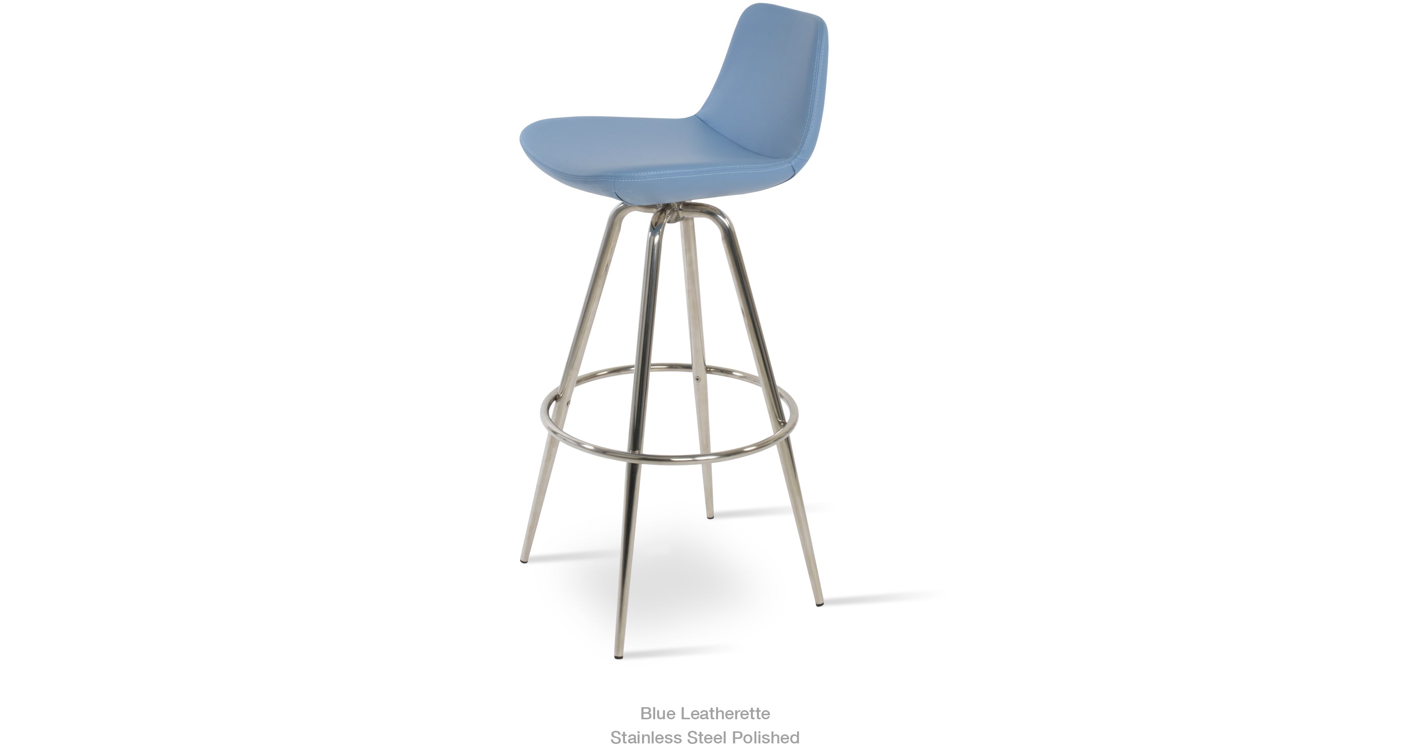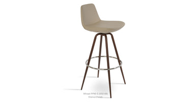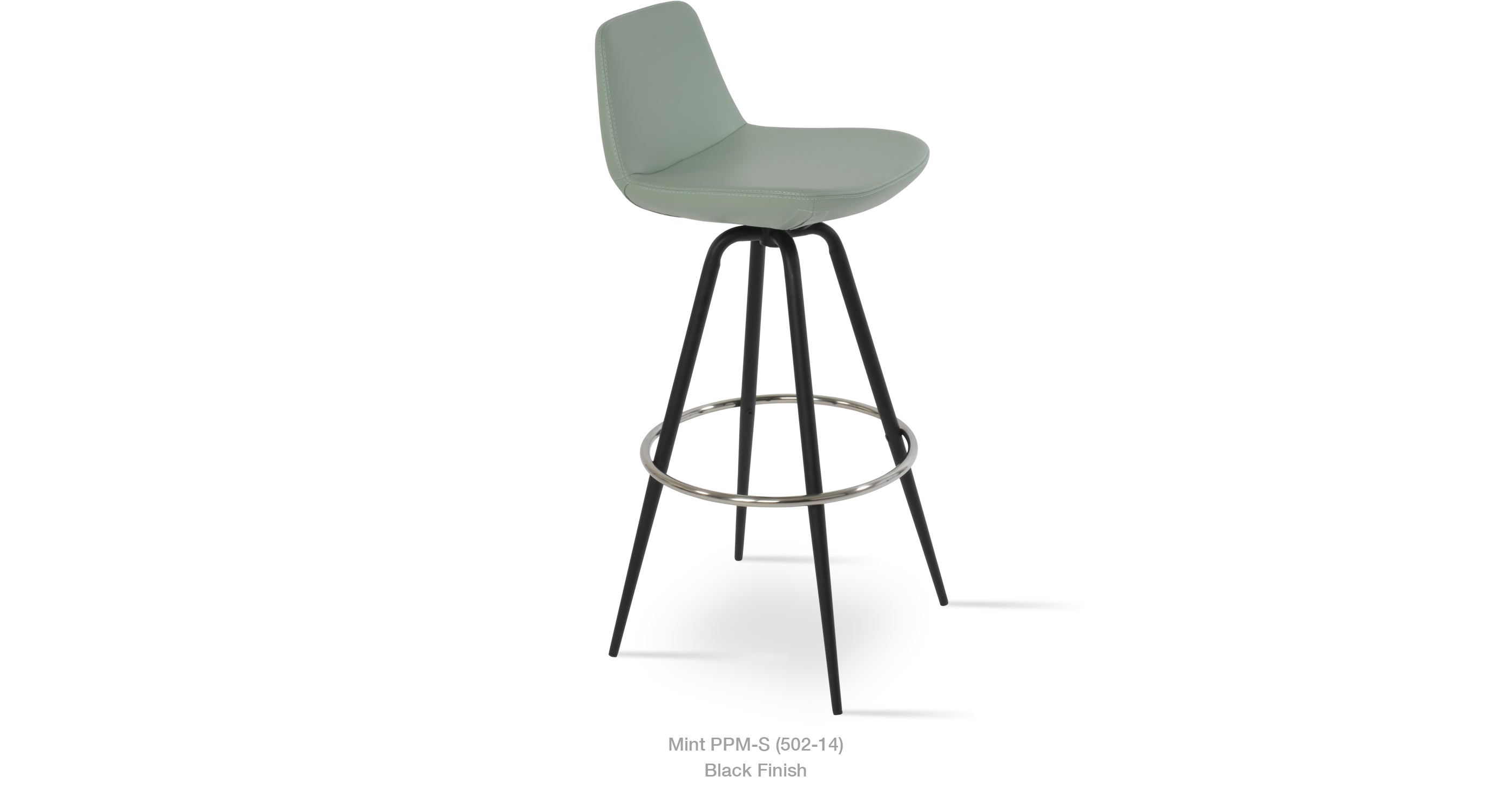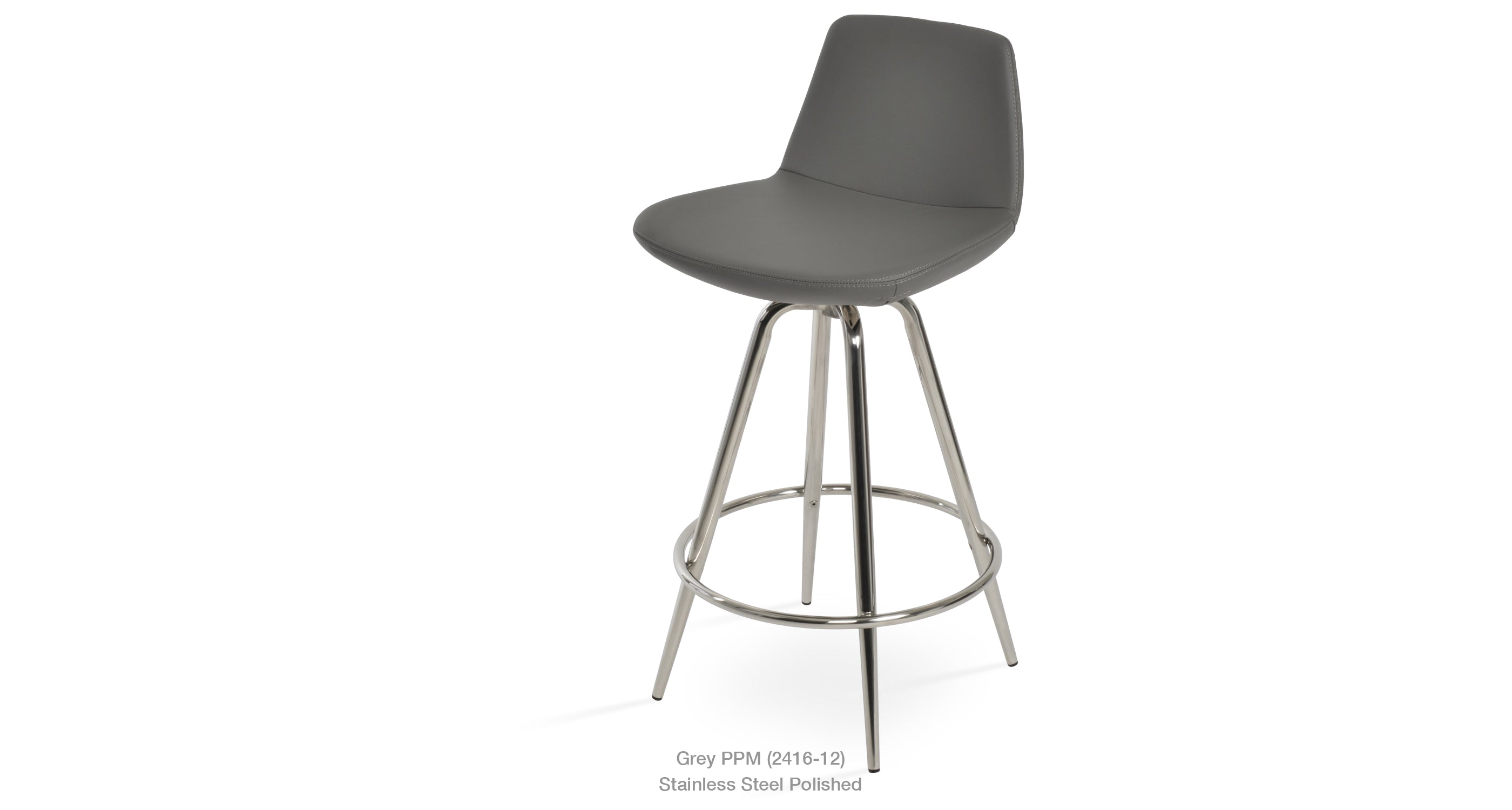 Pera Max Swivel stool is a unique counter and bar stool with a comfortable upholstered seat and backrest on solid chromed steel max swivel base. Each leg is tipped with a plastic glide embedded into the metal wire. The seat has a steel structure with “S” shape springs for extra flexibility and strength. This steel frame molded by injecting polyurethane foam. Pera seat is upholstered with a removable velcro enclosed leather, PPM or wool fabric slip cover. The stool is suitable for both residential and commercial use.