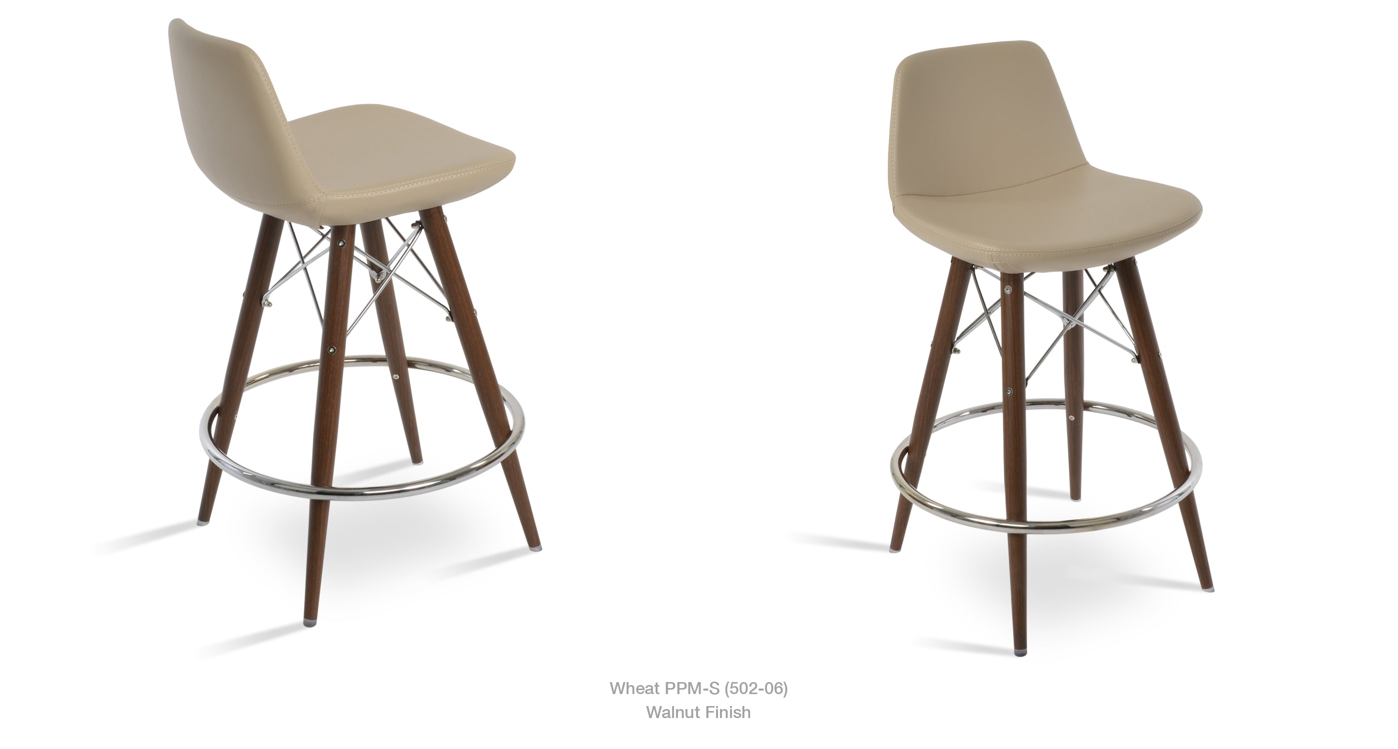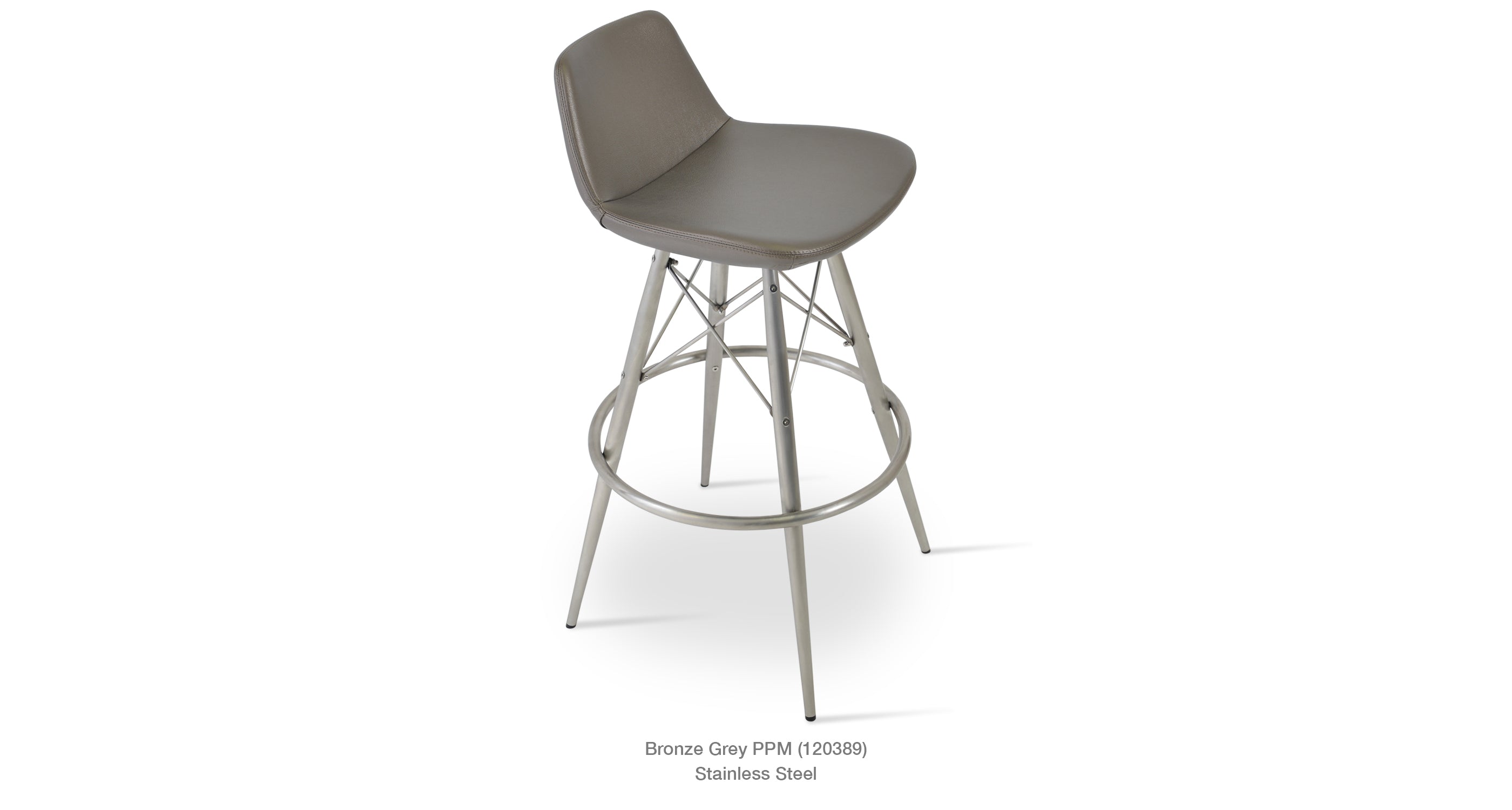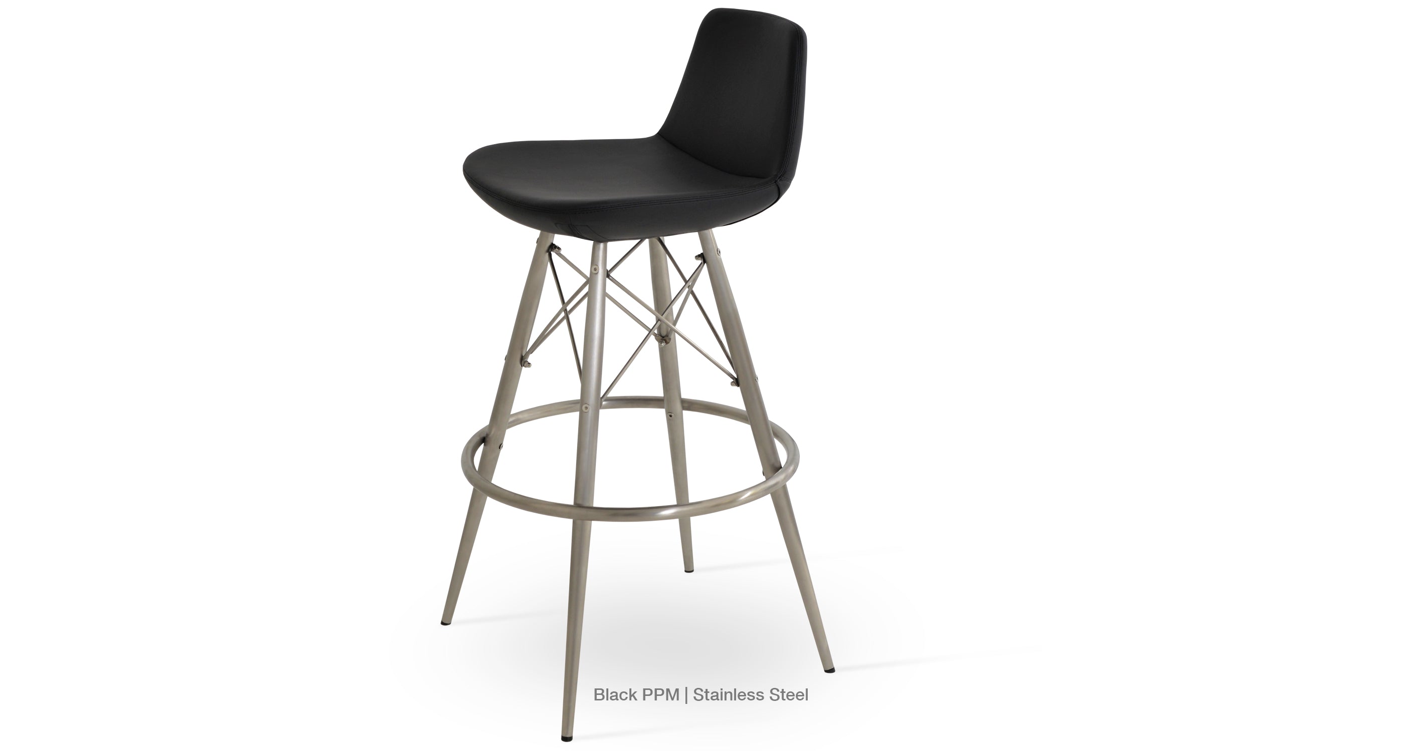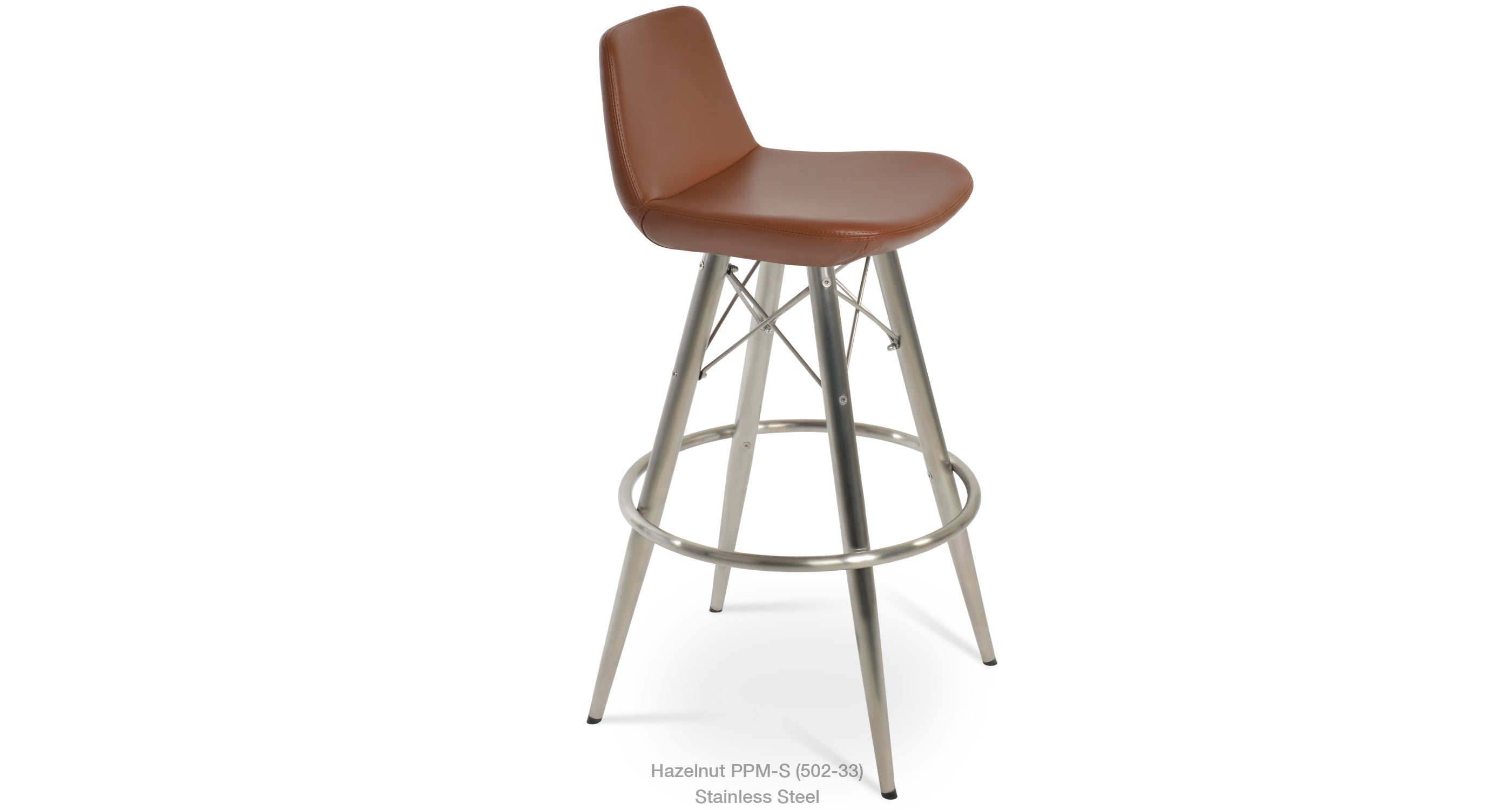 Pera MW stool is a unique stool with a comfortable upholstered seat and backrest on a powder-coated steel frame. Each leg is tipped with a plastic glide inserted to the foot. With its chromed steel tubular footrests, it becomes an ideal solution for kitchen and bar counters. The footrests are fixed inside the four-leg frame. The seat has a steel structure with “S” shape springs for extra flexibility and strength. This steel frame molded by injecting polyurethane foam. Pera seat is upholstered with a removable velcro enclosed leather, PPM or wool fabric slip cover. The stool is suitable for both residential and commercial use and can be ordered as counter or bar stool. Pera MW stool are available with swivel seat options too.