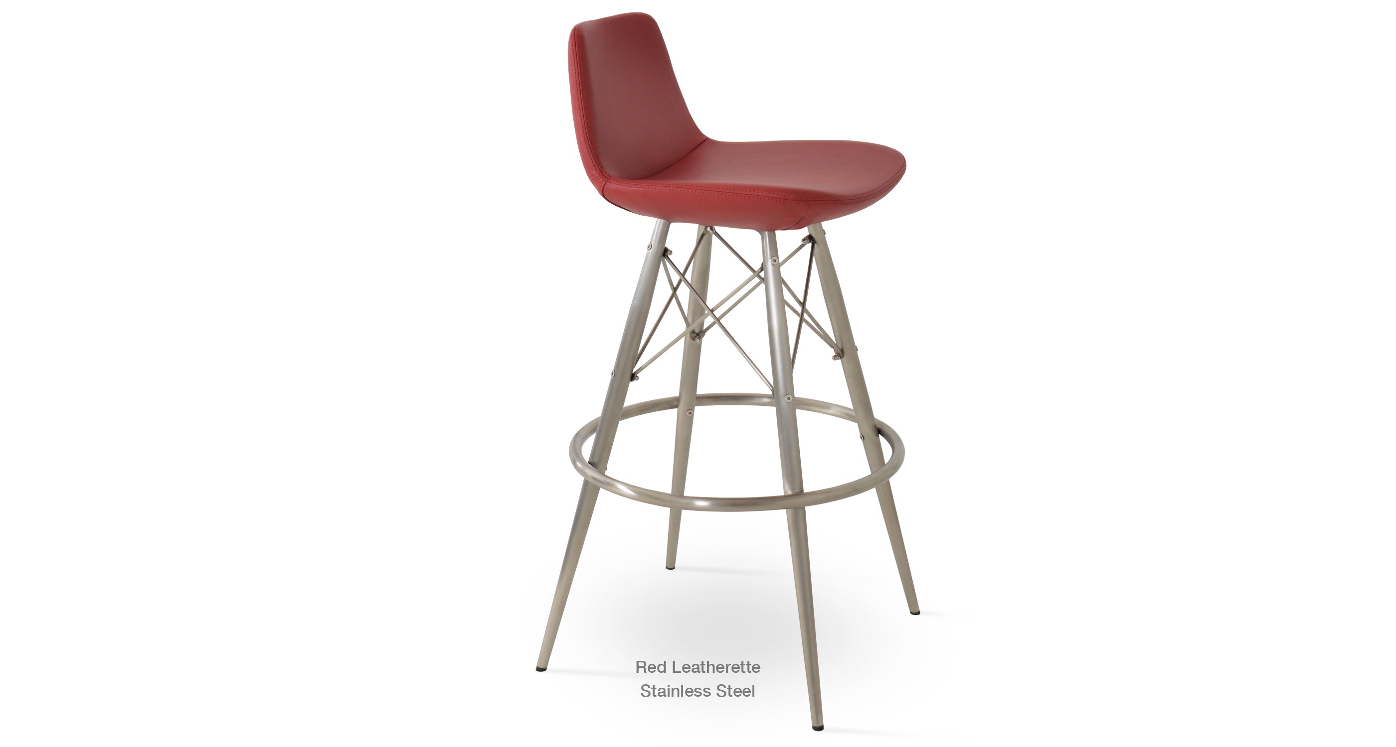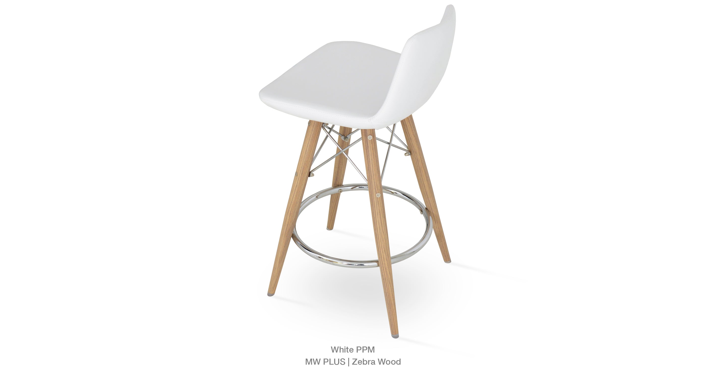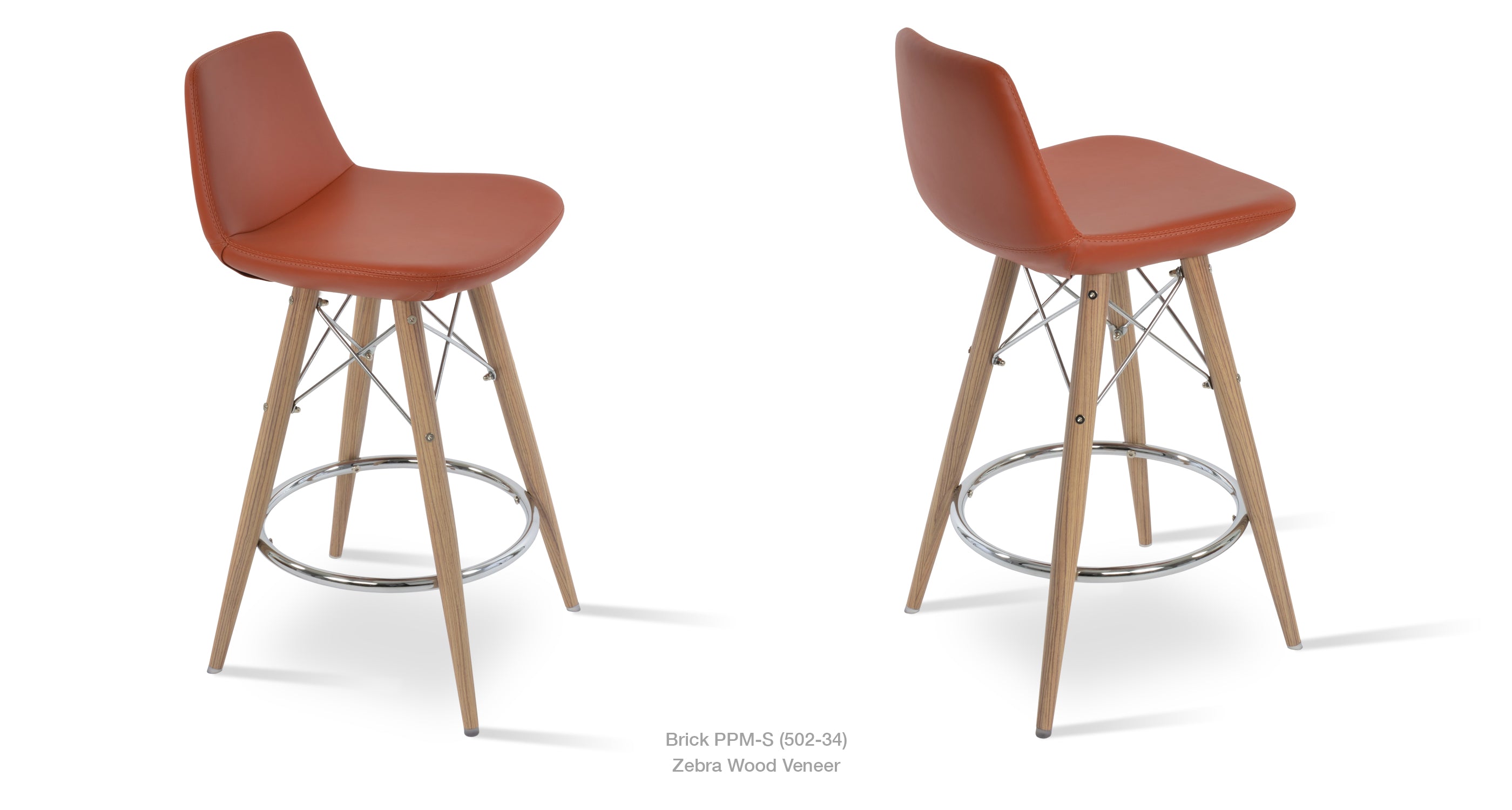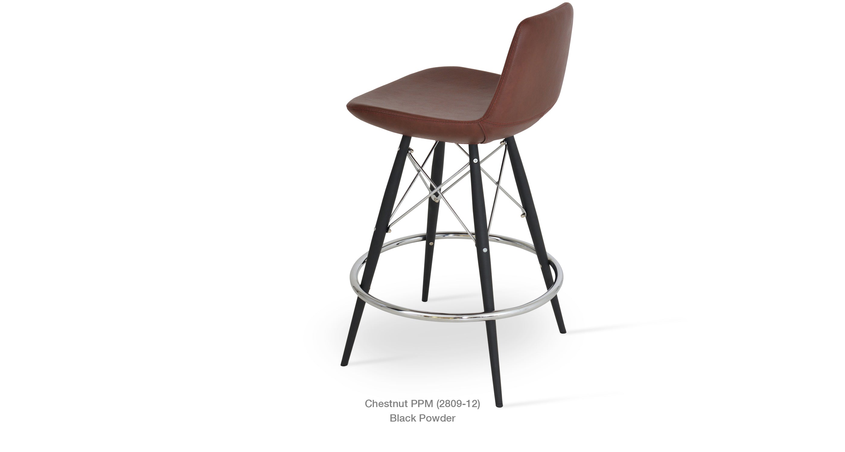 Pera MW stool is a unique stool with a comfortable upholstered seat and backrest on a powder-coated steel frame. Each leg is tipped with a plastic glide inserted to the foot. With its chromed steel tubular footrests, it becomes an ideal solution for kitchen and bar counters. The footrests are fixed inside the four-leg frame. The seat has a steel structure with “S” shape springs for extra flexibility and strength. This steel frame molded by injecting polyurethane foam. Pera seat is upholstered with a removable velcro enclosed leather, PPM or wool fabric slip cover. The stool is suitable for both residential and commercial use and can be ordered as counter or bar stool. Pera MW stool are available with swivel seat options too.