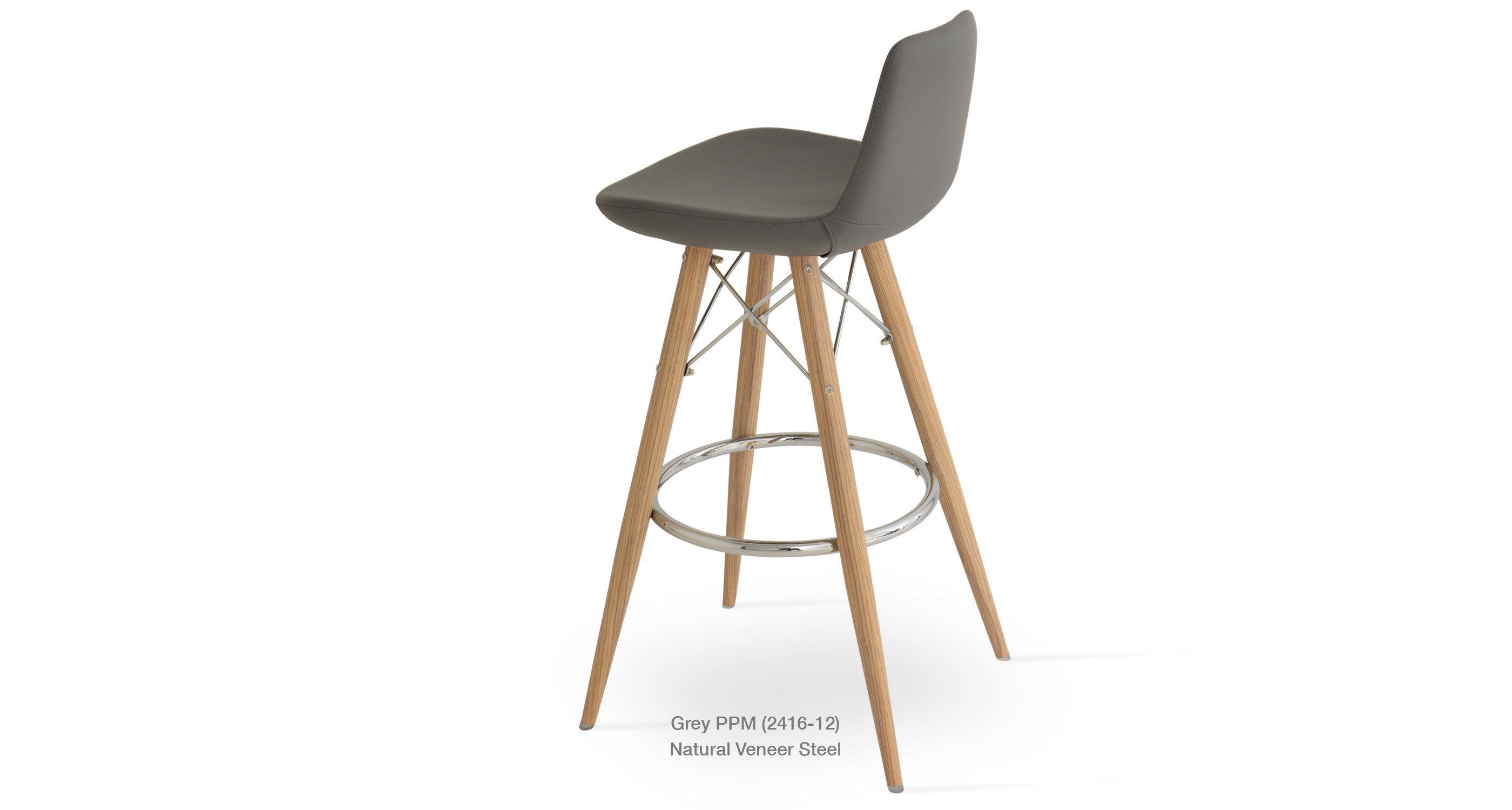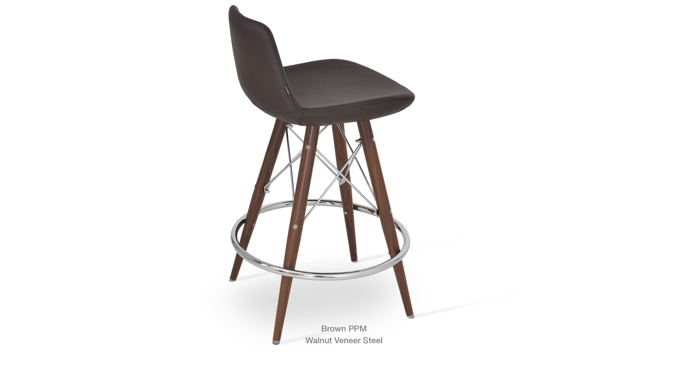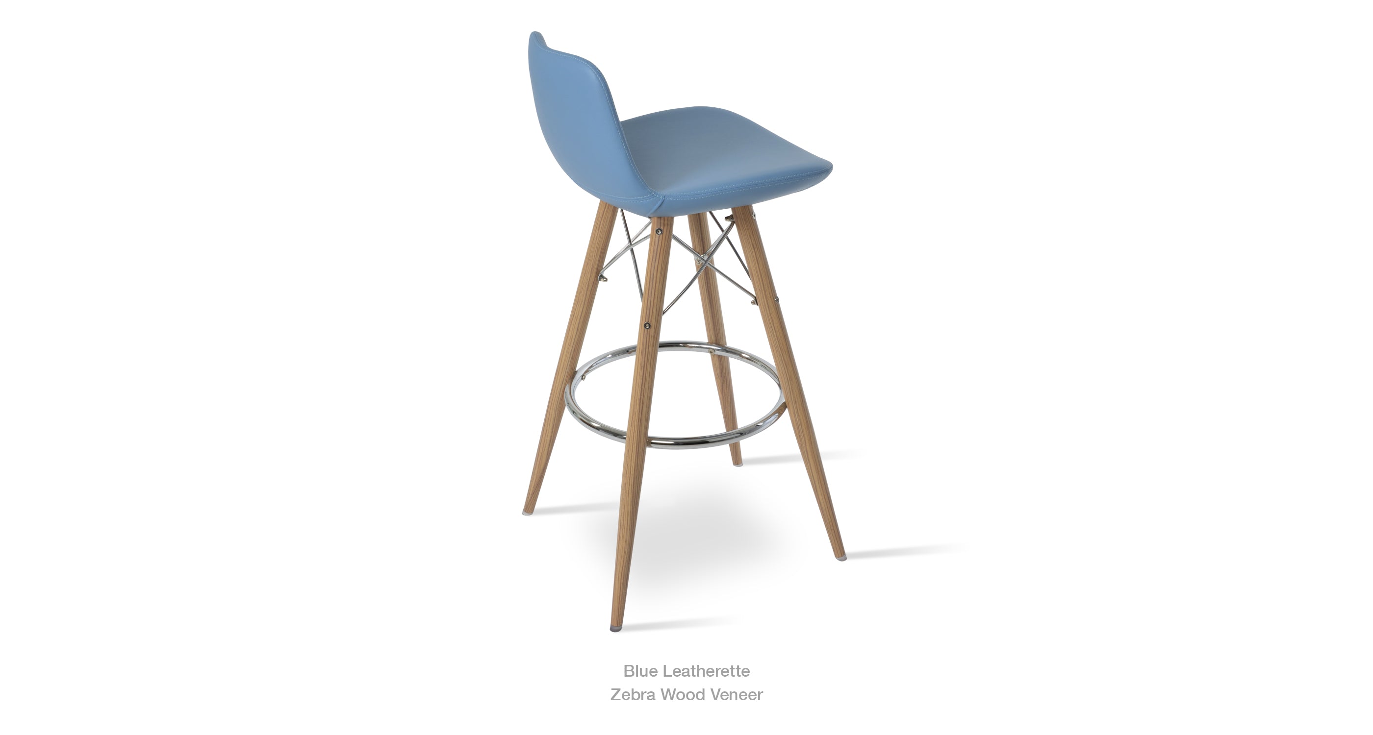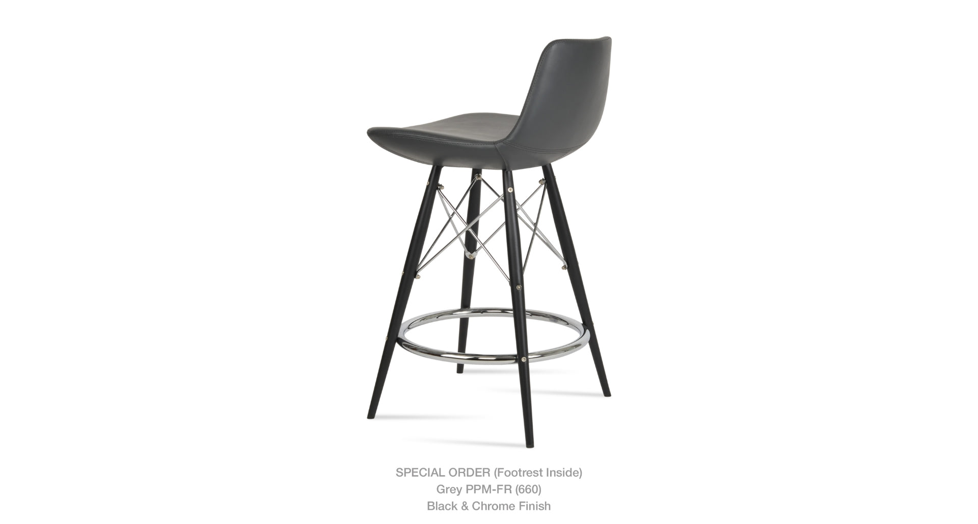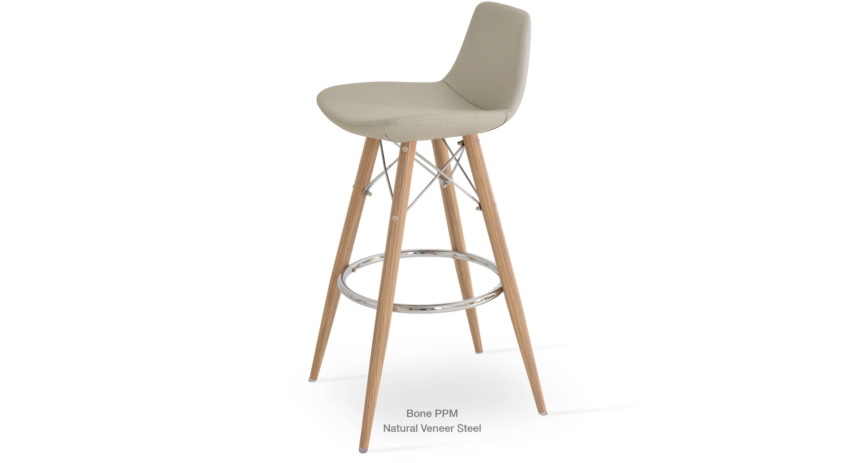 Pera MW stool is a unique stool with a comfortable upholstered seat and backrest on a powder-coated steel frame. Each leg is tipped with a plastic glide inserted to the foot. With its chromed steel tubular footrests, it becomes an ideal solution for kitchen and bar counters. The footrests are fixed inside the four-leg frame. The seat has a steel structure with “S” shape springs for extra flexibility and strength. This steel frame molded by injecting polyurethane foam. Pera seat is upholstered with a removable velcro enclosed leather, PPM or wool fabric slip cover. The stool is suitable for both residential and commercial use and can be ordered as counter or bar stool. Pera MW stool are available with swivel seat options too.