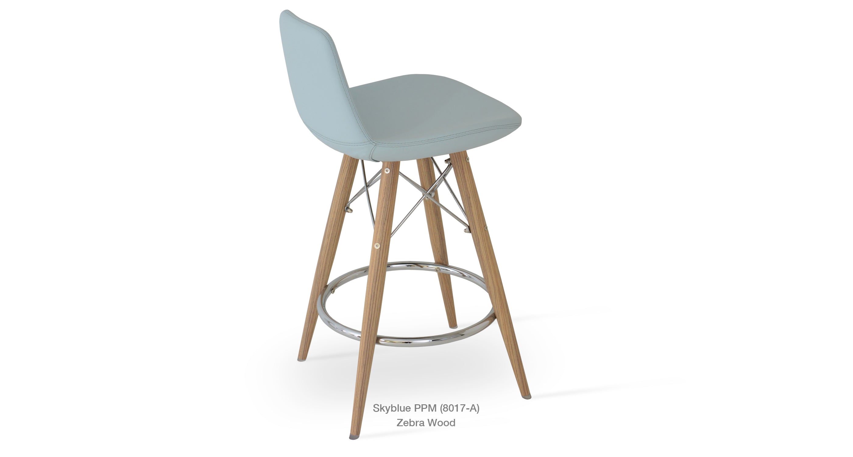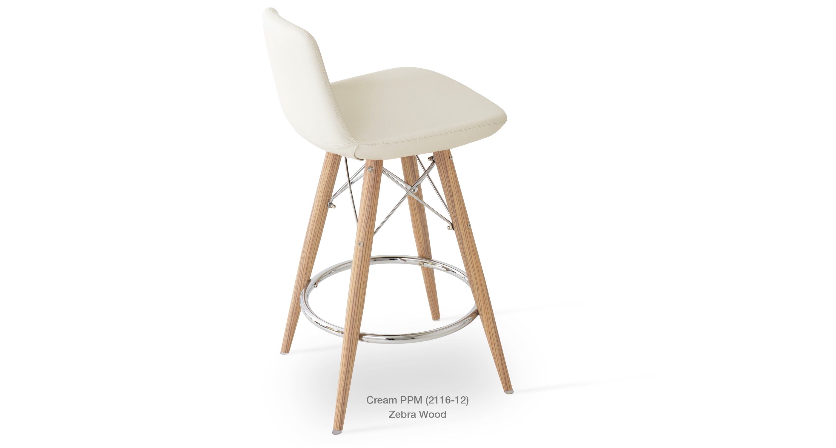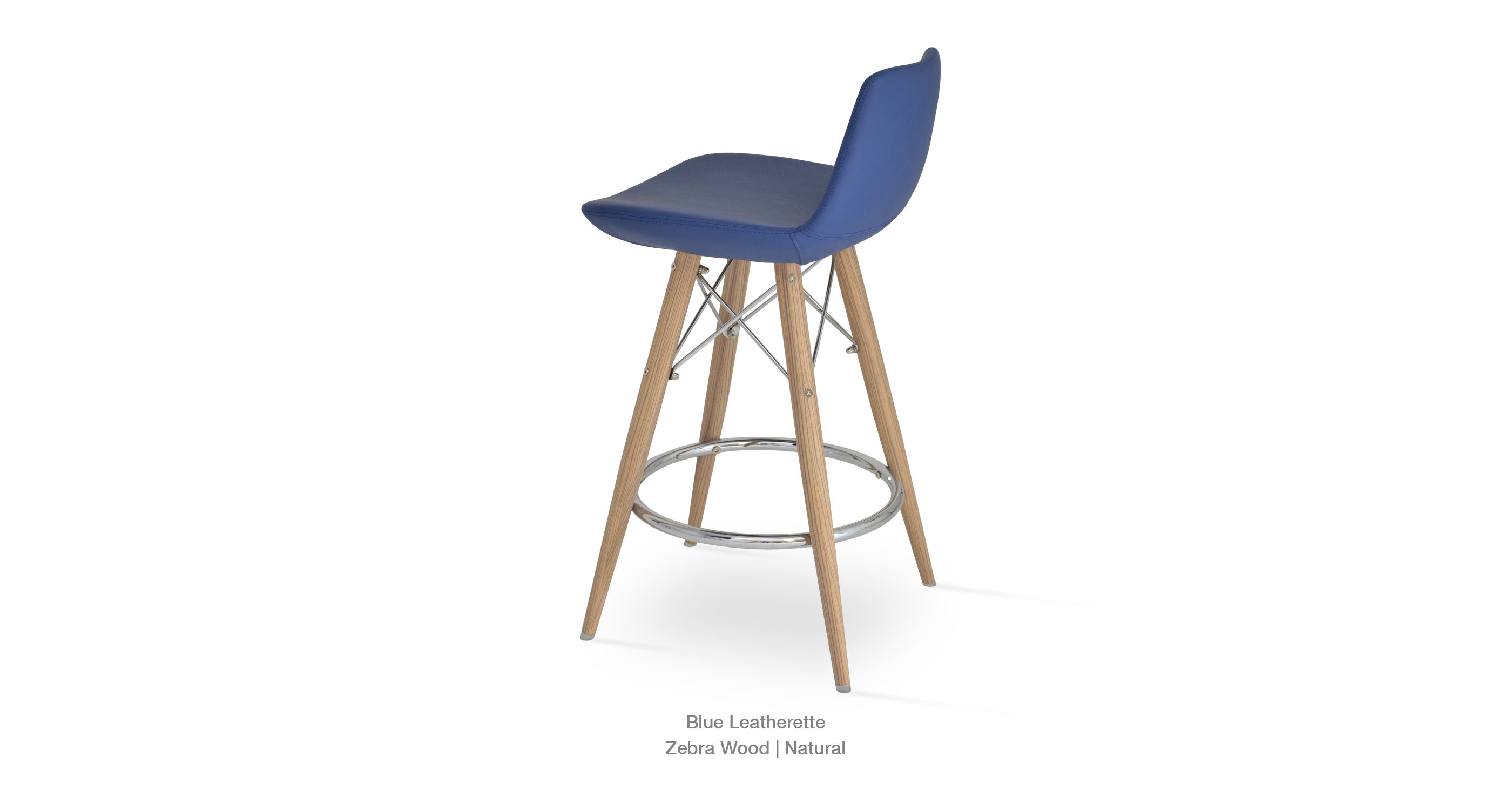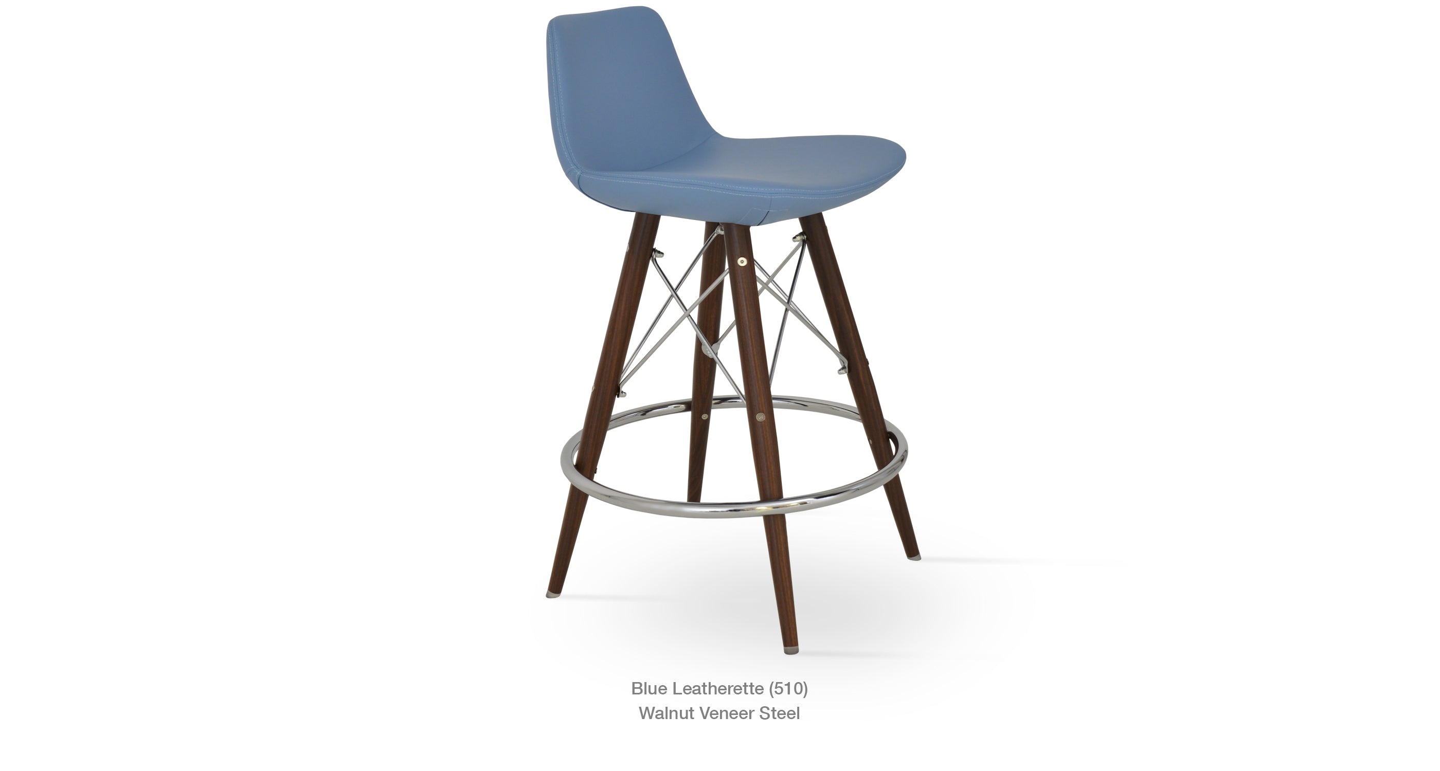Pera MW stool is a unique stool with a comfortable upholstered seat and backrest on a powder-coated steel frame. Each leg is tipped with a plastic glide inserted to the foot. With its chromed steel tubular footrests, it becomes an ideal solution for kitchen and bar counters. The footrests are fixed inside the four-leg frame. The seat has a steel structure with “S” shape springs for extra flexibility and strength. This steel frame molded by injecting polyurethane foam. Pera seat is upholstered with a removable velcro enclosed leather, PPM or wool fabric slip cover. The stool is suitable for both residential and commercial use and can be ordered as counter or bar stool. Pera MW stool are available with swivel seat options too.
