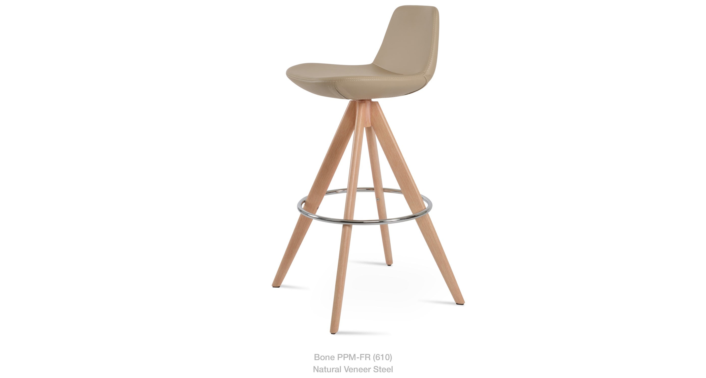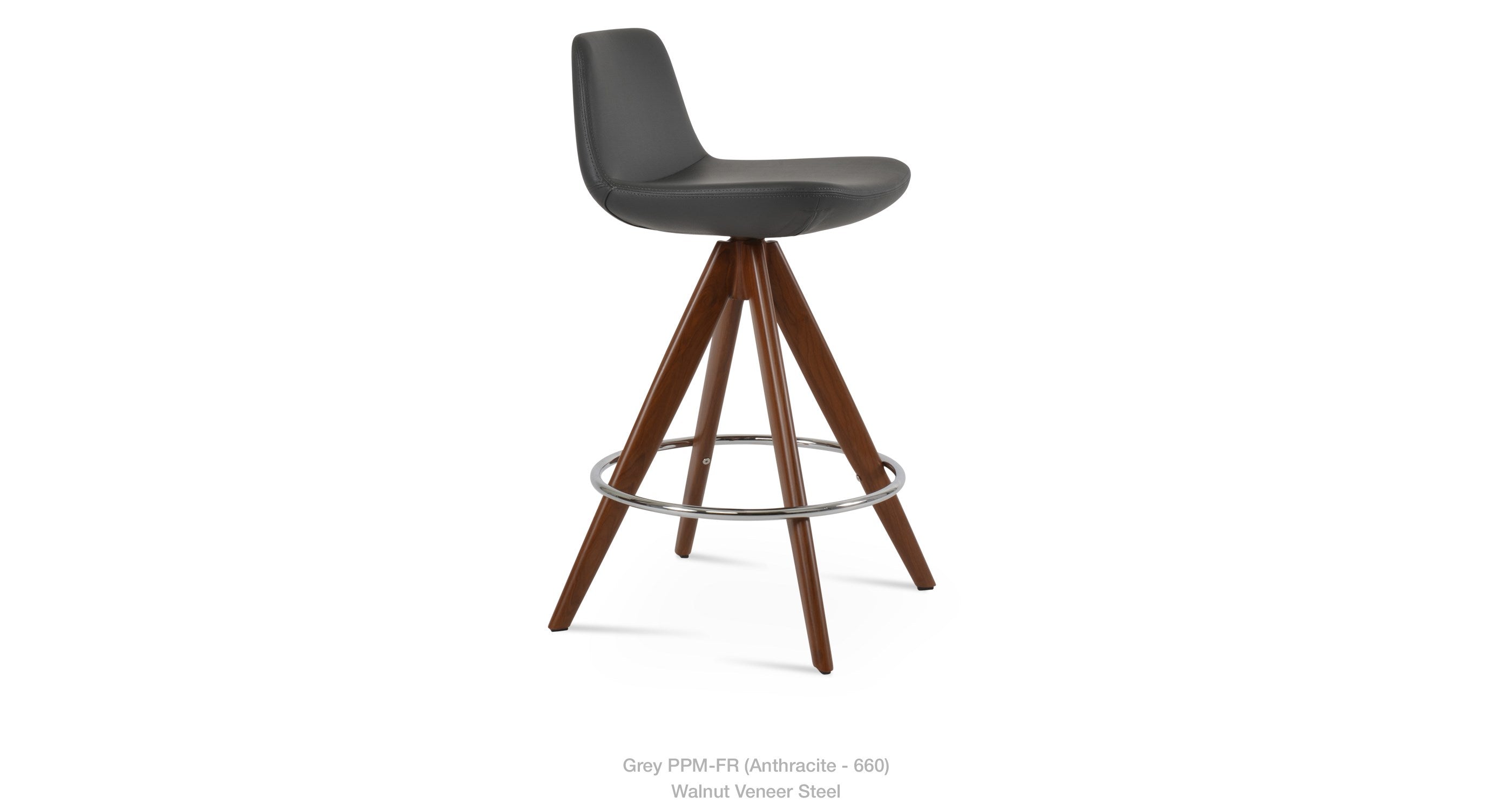 Pera Pyramid MW is a unique counter and bar stool with a comfortable upholstered seat and backrest on a swivel steel base. The seat has a steel structure with “S” shape springs for extra flexibility and strength. This steel frame is molded by injecting polyurethane foam. Pera seat is upholstered with a removable velcro slip cover. The stool is specially recommended for commercial use with its durability. Upon request, stainless steel footrest will be used especially for contract projects.