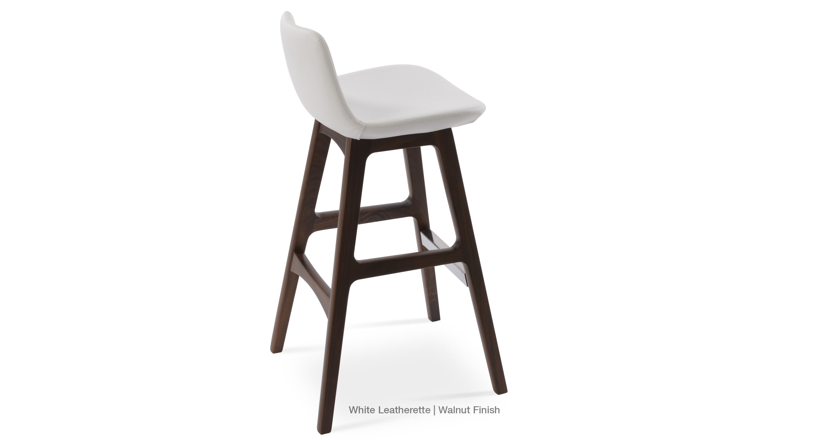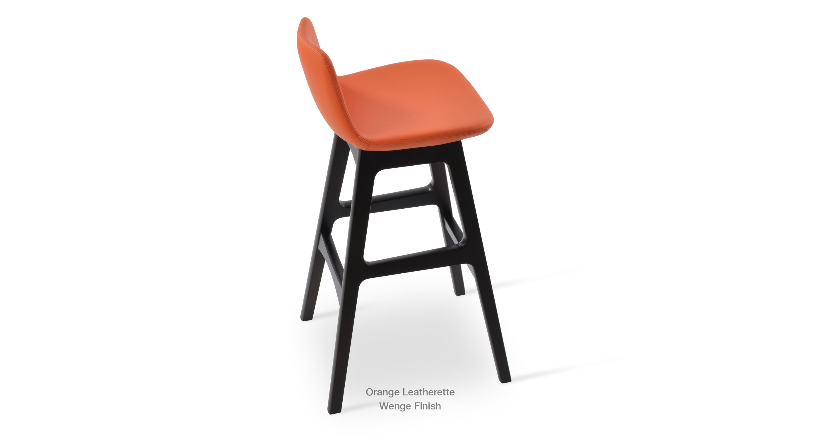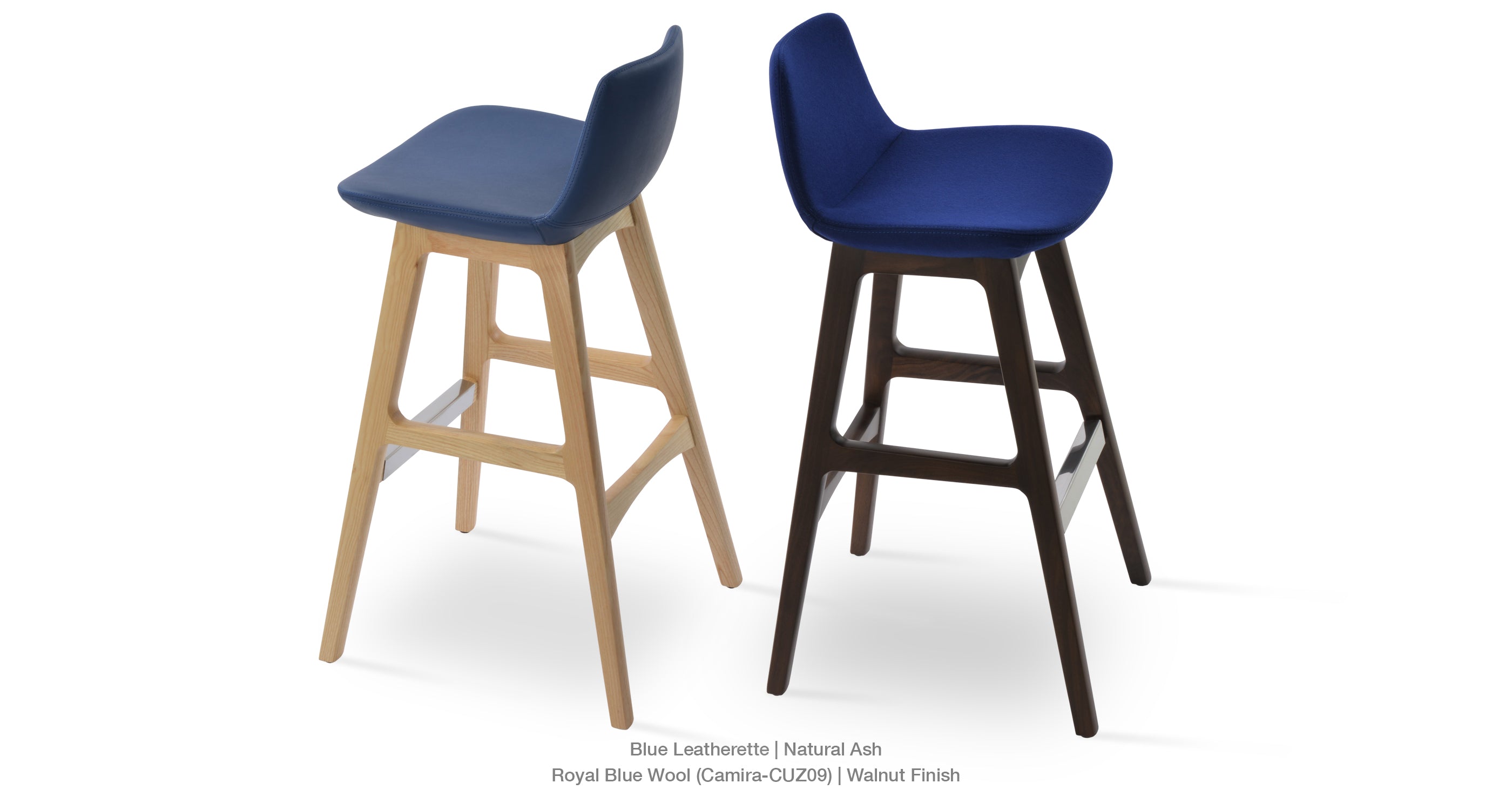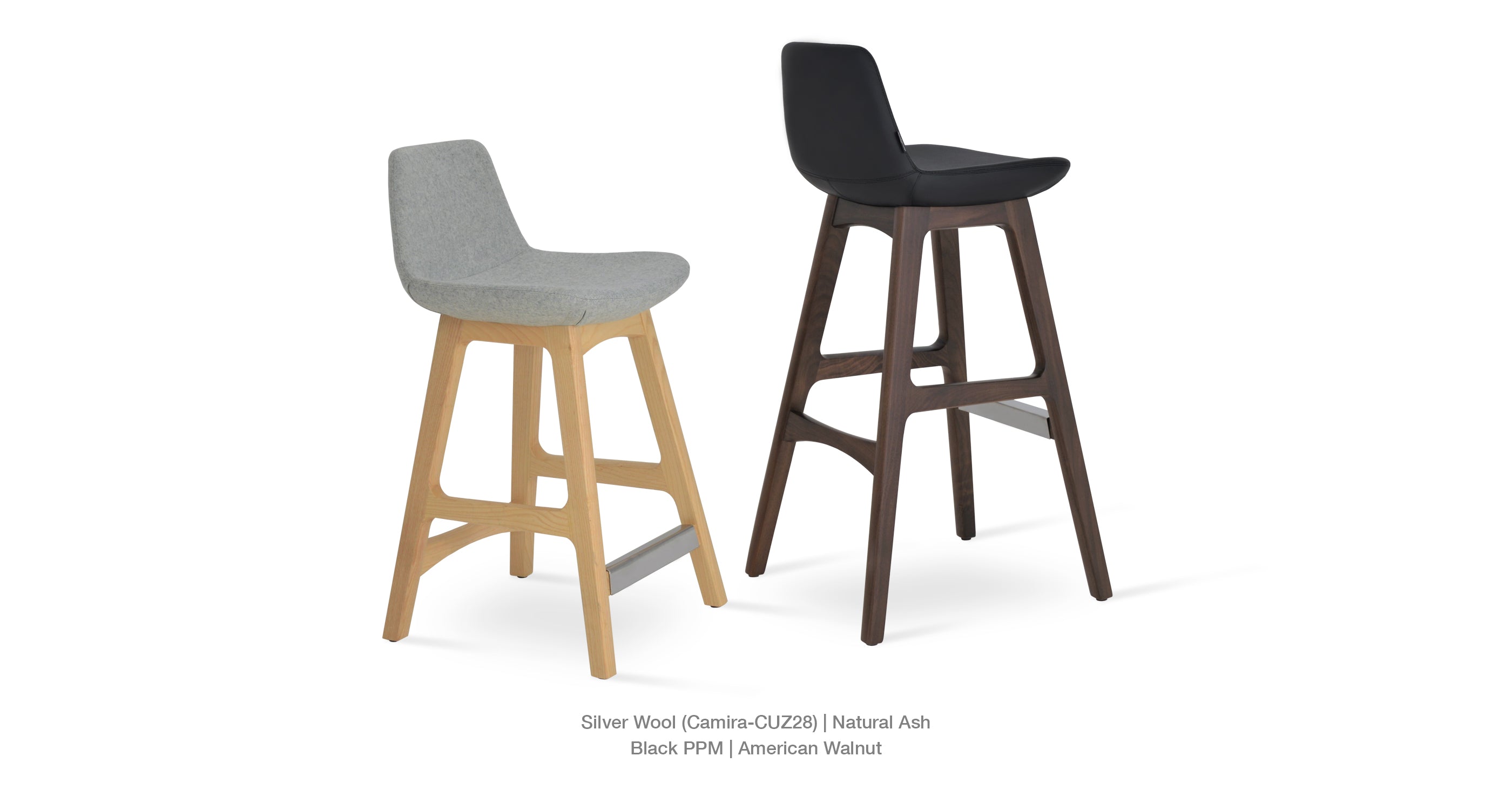 Pera Wood is a unique counter and bar stool with a comfortable upholstered seat and backrest on a wood base. The base finish is offered in beech wood walnut & wenge paint as well as original walnut and natural ash wood. The seat has a steel structure with “S” shape springs for extra flexibility and strength. This steel frame is molded by injecting polyurethane foam. Pera seat is upholstered with a removable velcro slip cover. The stool is specially recommended for commercial use with its durability. Upon request, stainless steel footrest will be used especially for contract projects.