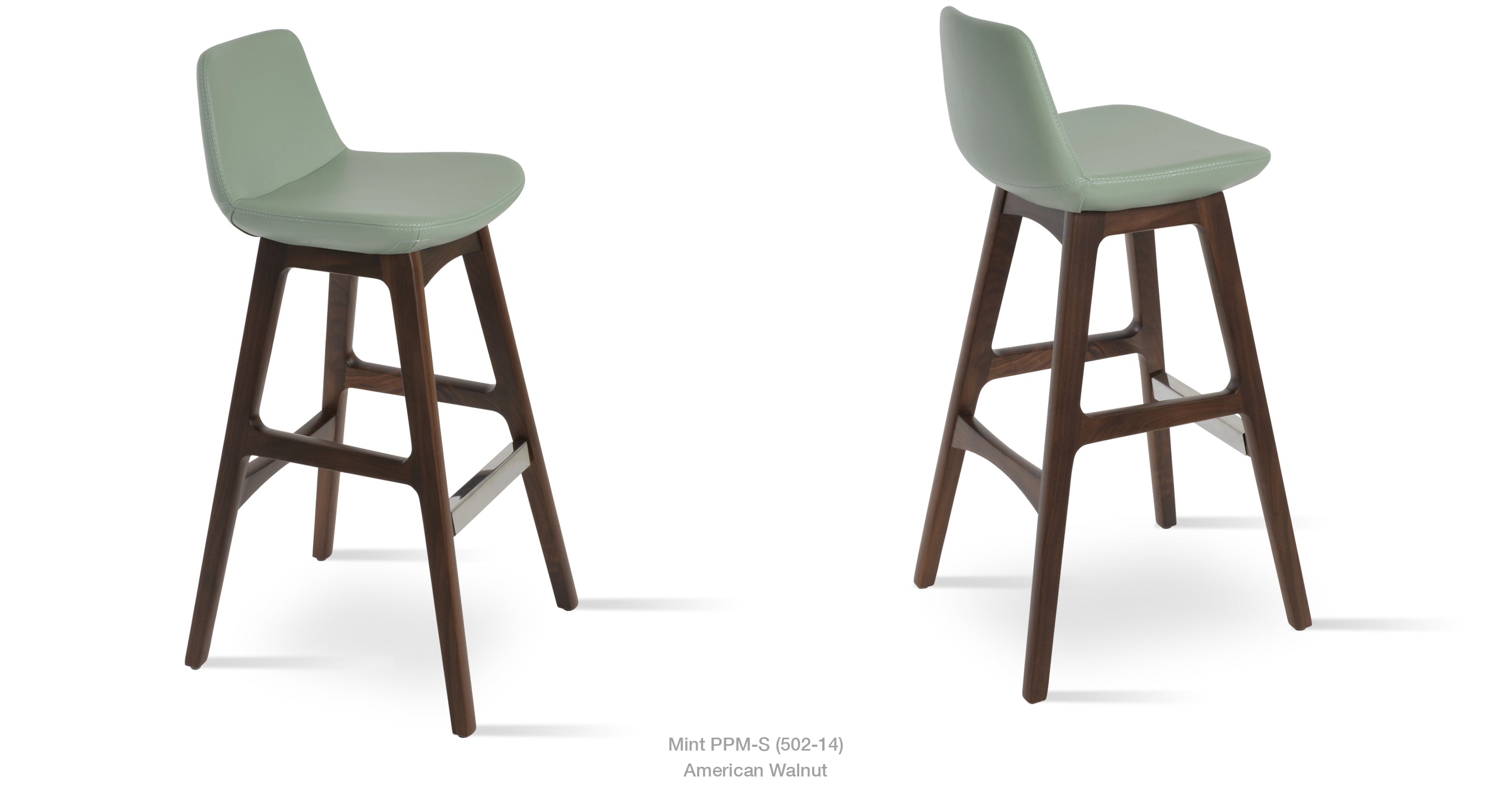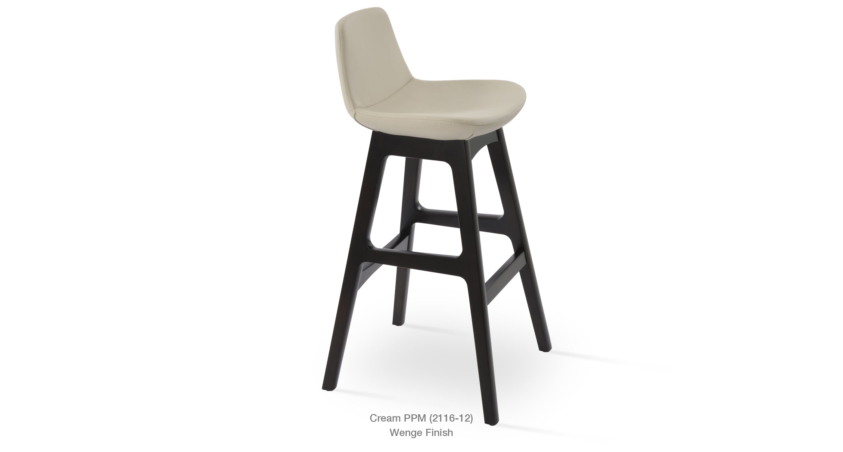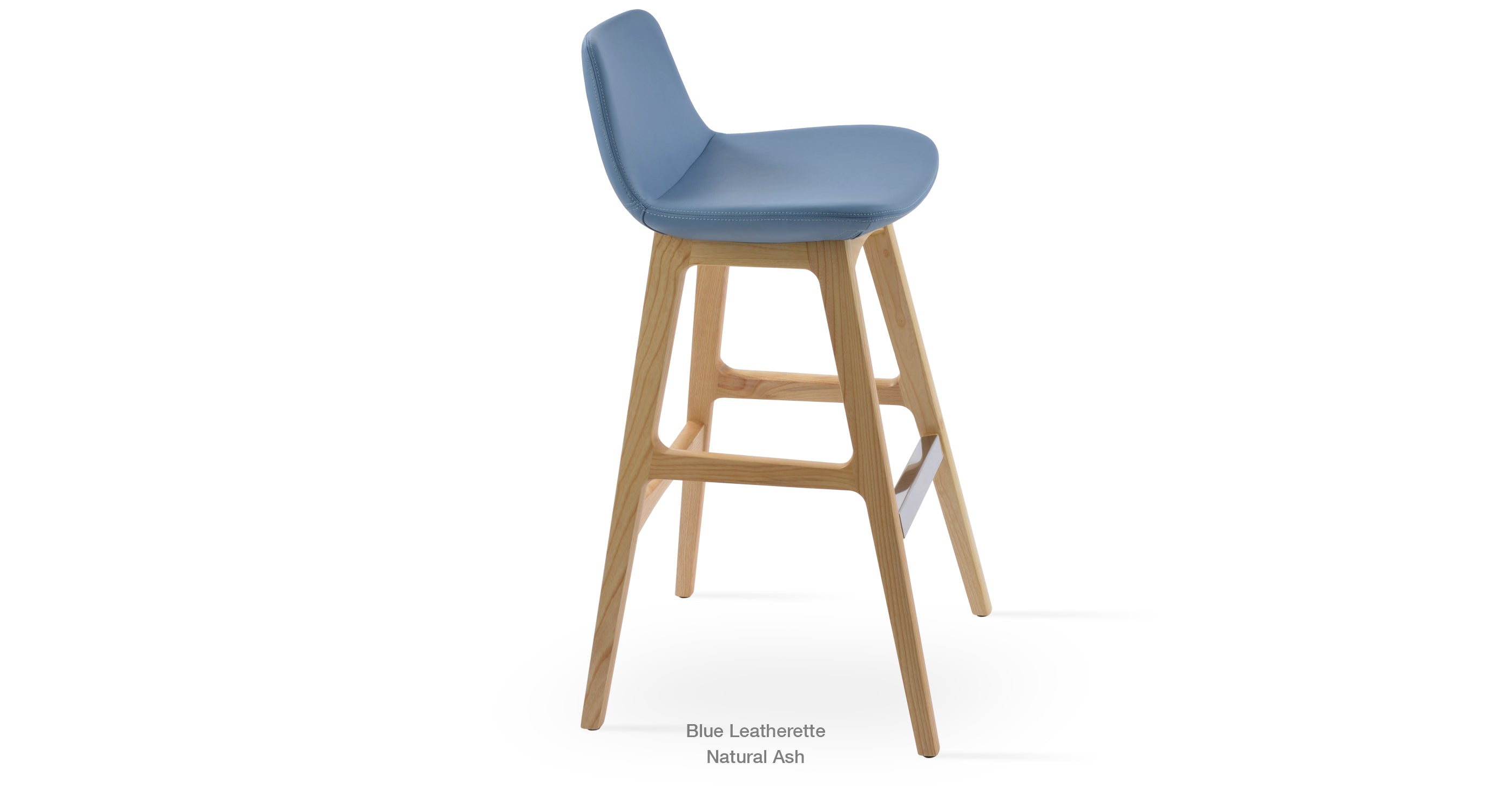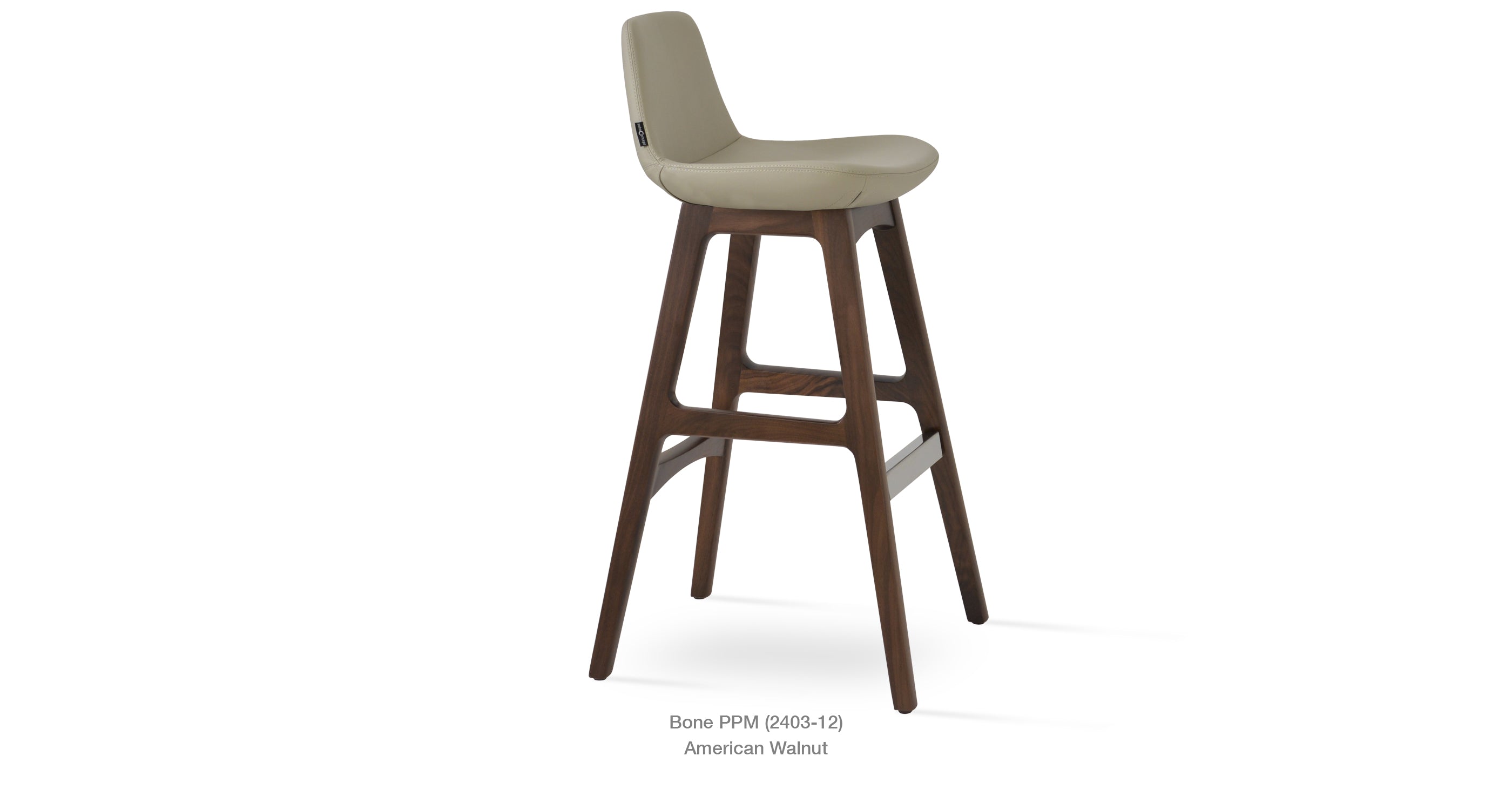 Pera Wood is a unique counter and bar stool with a comfortable upholstered seat and backrest on a wood base. The base finish is offered in beech wood walnut & wenge paint as well as original walnut and natural ash wood. The seat has a steel structure with “S” shape springs for extra flexibility and strength. This steel frame is molded by injecting polyurethane foam. Pera seat is upholstered with a removable velcro slip cover. The stool is specially recommended for commercial use with its durability. Upon request, stainless steel footrest will be used especially for contract projects.