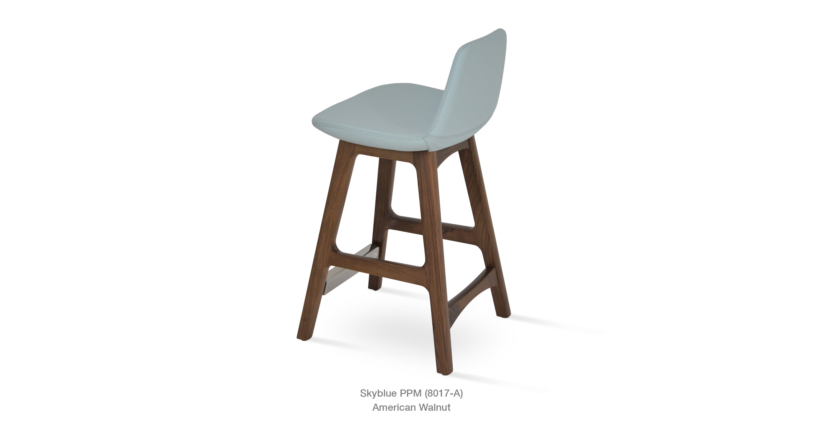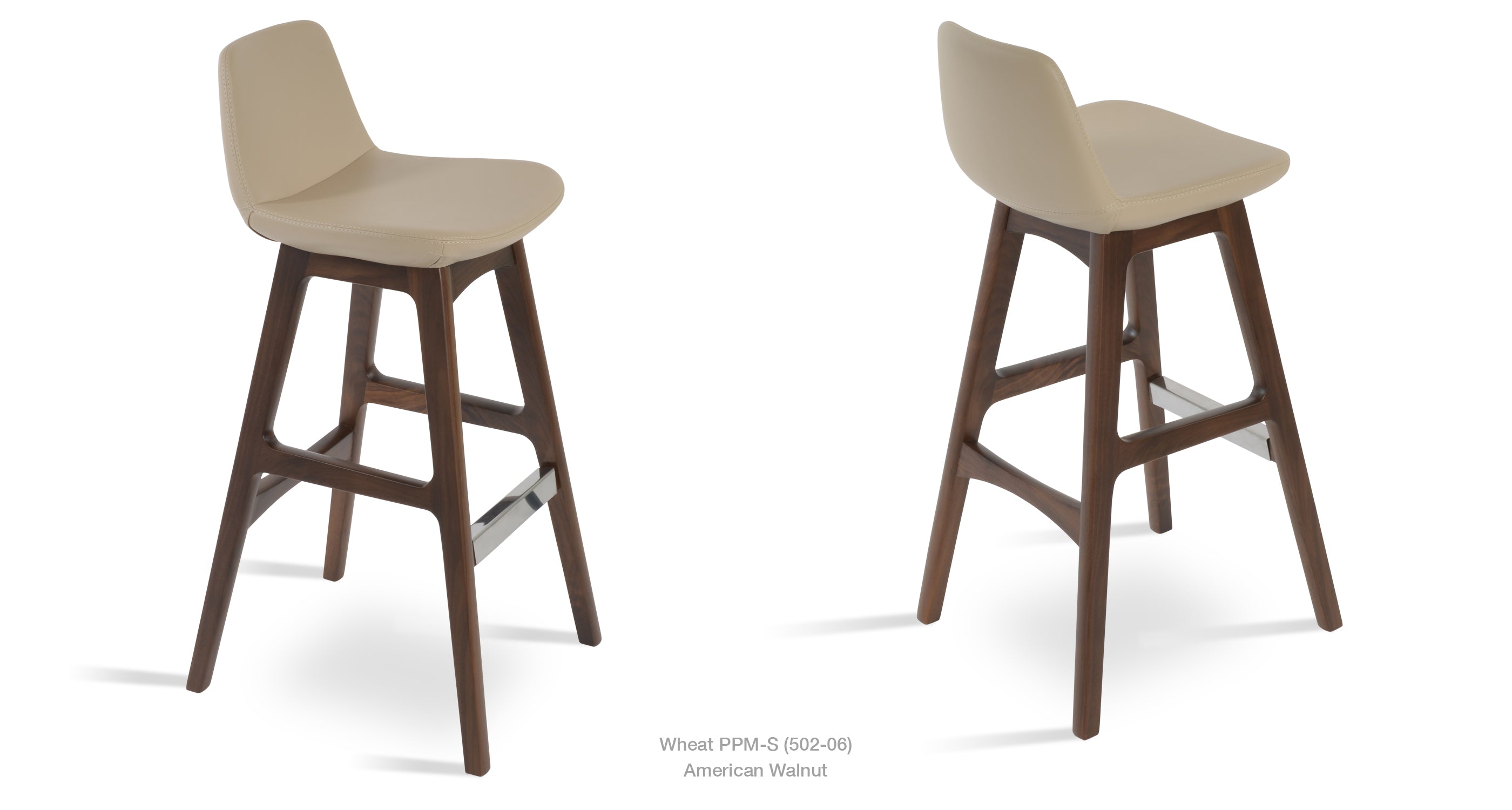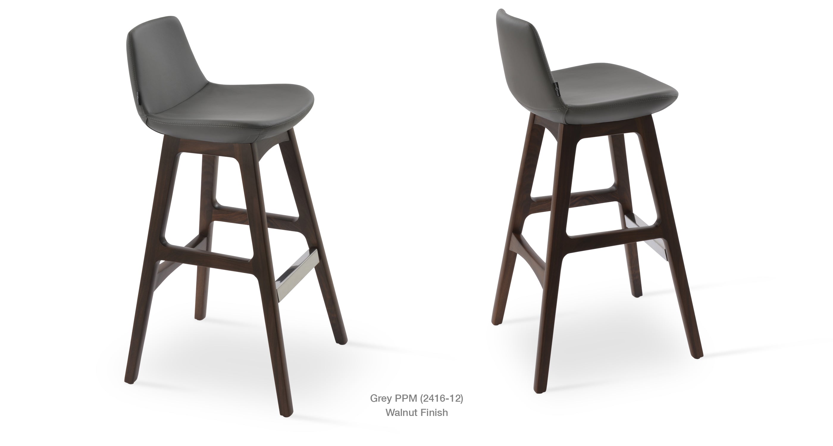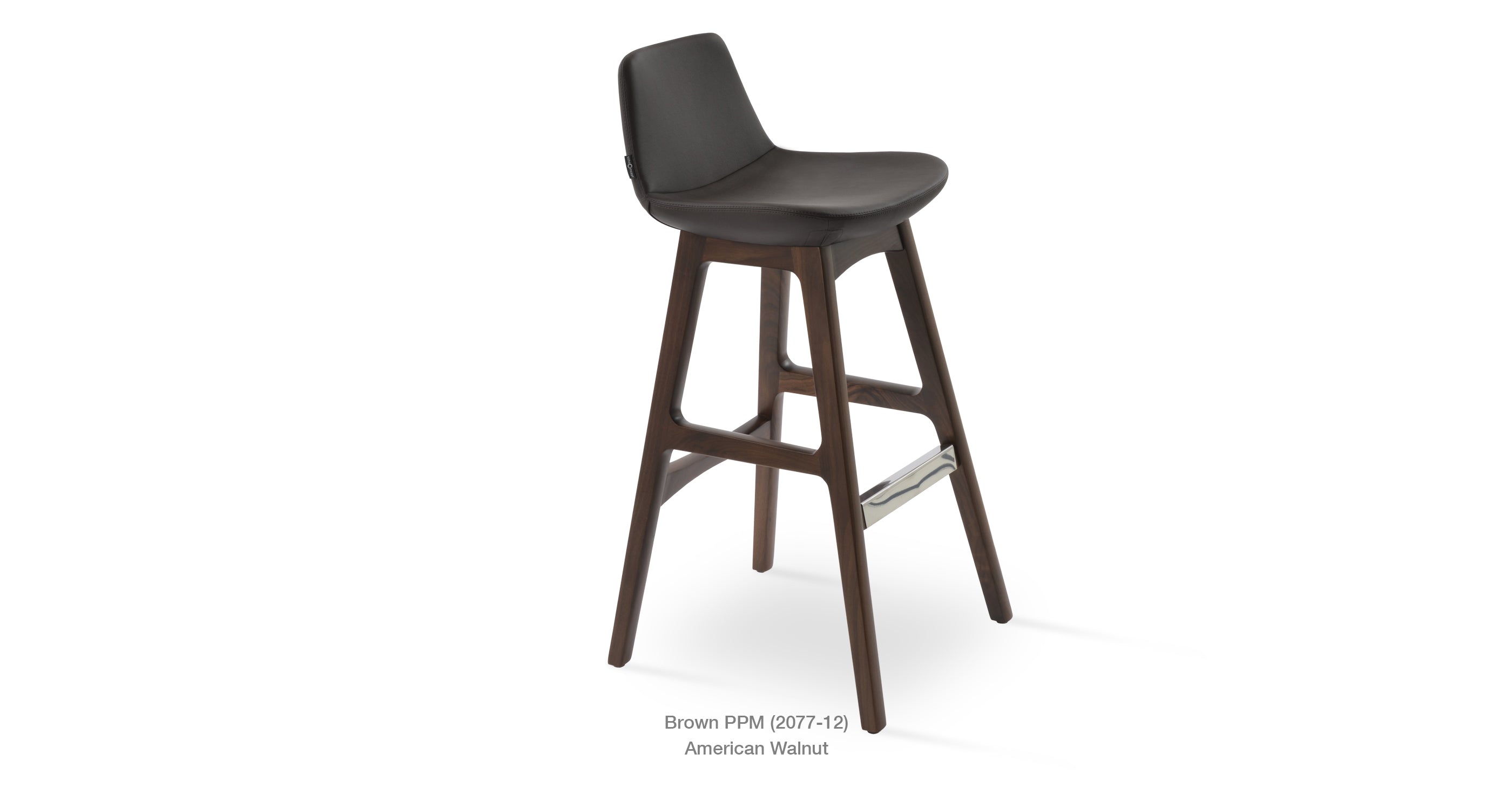 Pera Wood is a unique counter and bar stool with a comfortable upholstered seat and backrest on a wood base. The base finish is offered in beech wood walnut & wenge paint as well as original walnut and natural ash wood. The seat has a steel structure with “S” shape springs for extra flexibility and strength. This steel frame is molded by injecting polyurethane foam. Pera seat is upholstered with a removable velcro slip cover. The stool is specially recommended for commercial use with its durability. Upon request, stainless steel footrest will be used especially for contract projects.