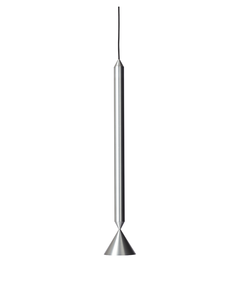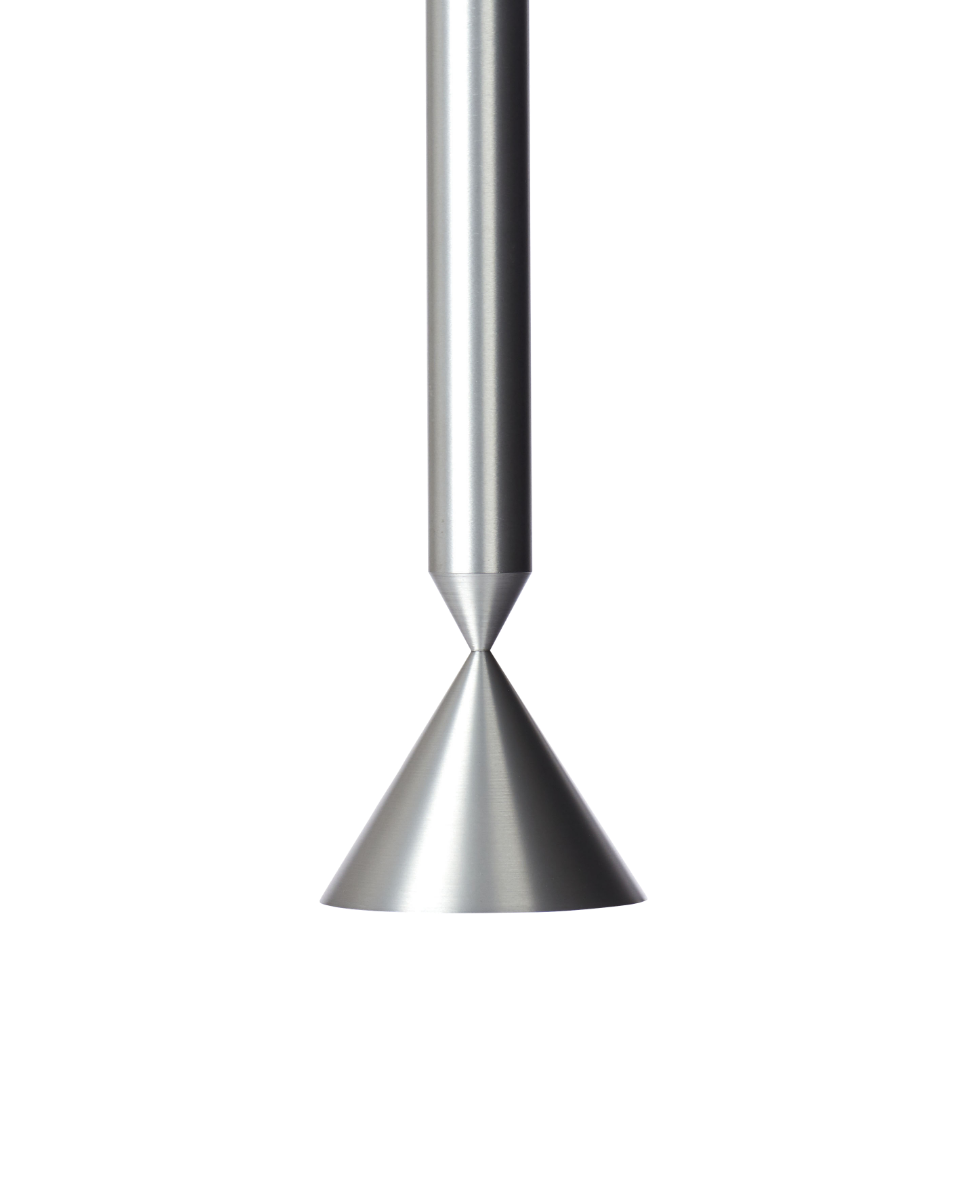 Pure turned-aluminum cones form a minimalist totem, lending architectural clarity and even task lighting to contemporary kitchens and studios.
