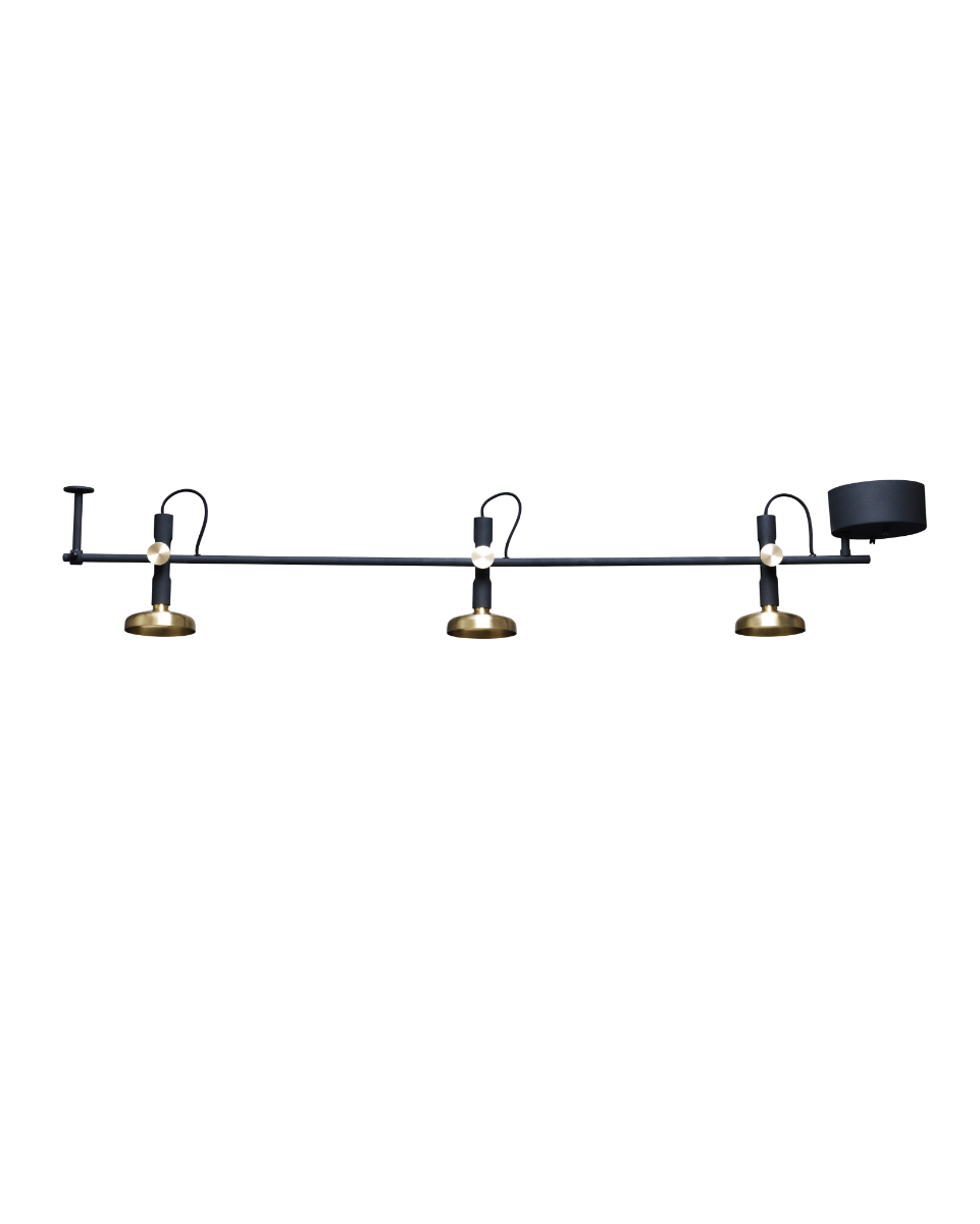 Sabina Grubbeson unites crisp Nordic lines and Japanese-inspired brass details in this jet-black ceiling fixture, lending gallery-worthy poise to any room.