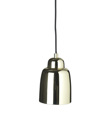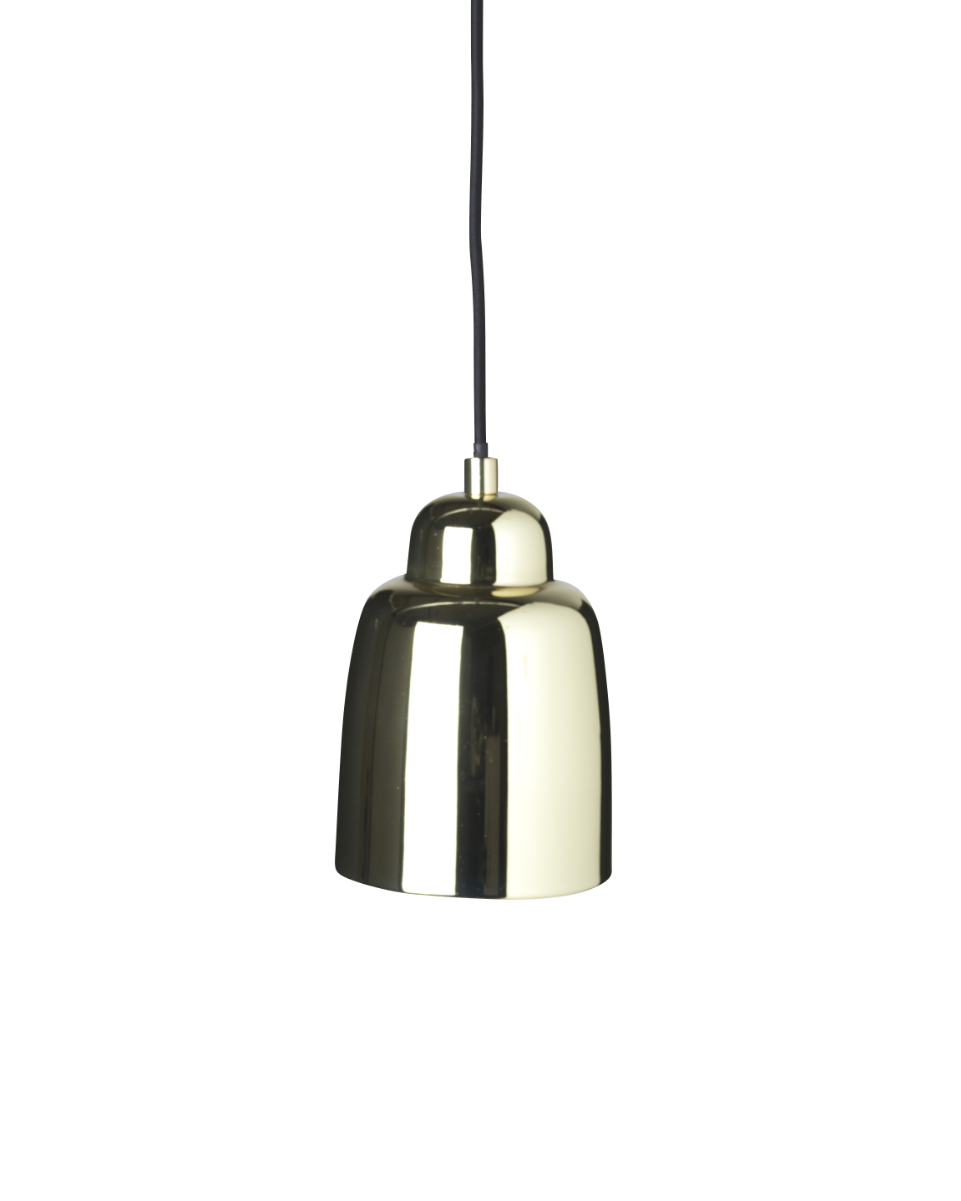 Monika Mulder’s design echoes vintage flutes, pairing reflective gold finish with soft curves to create a warm, nostalgic ambience above dining sets.