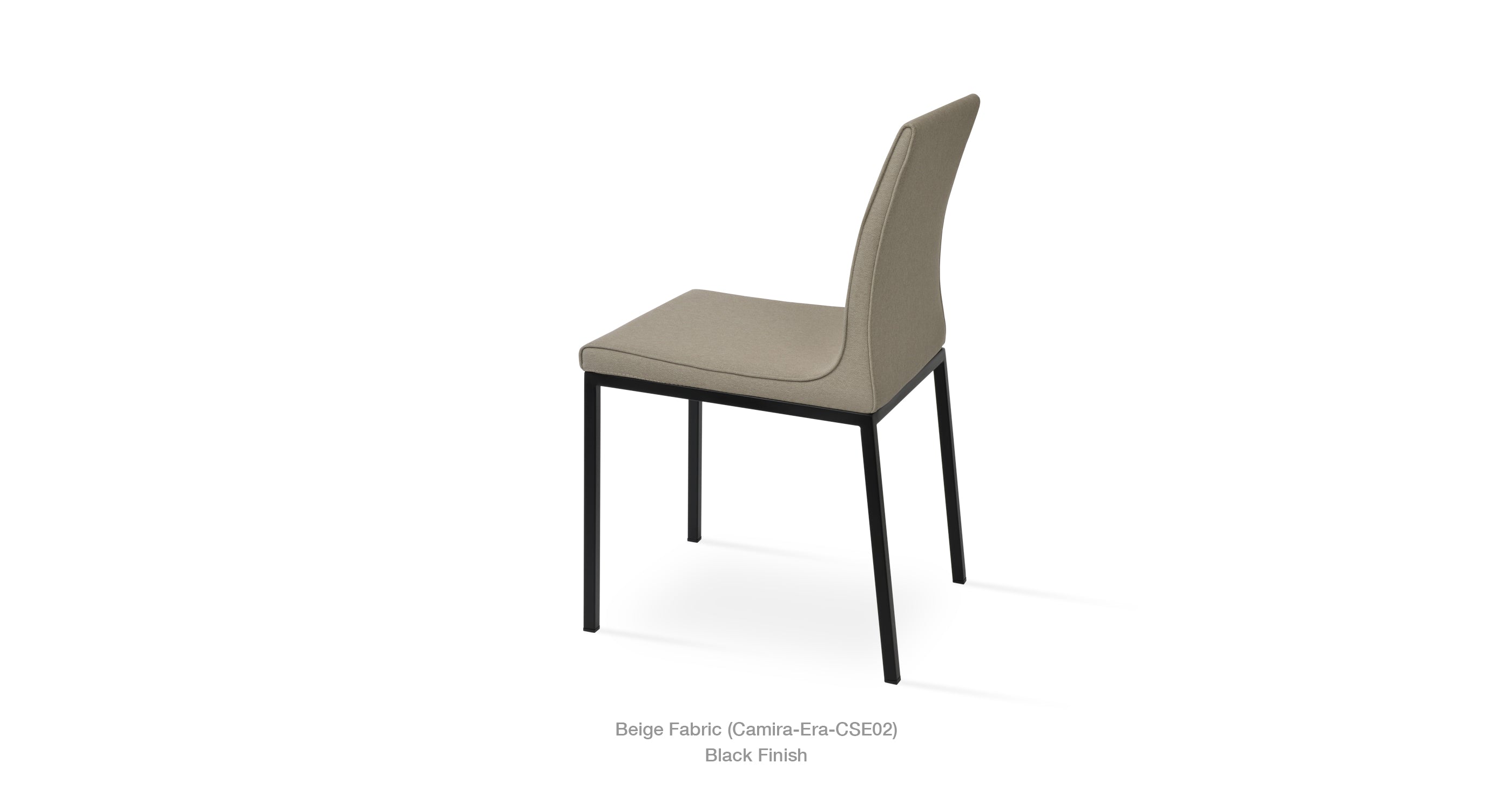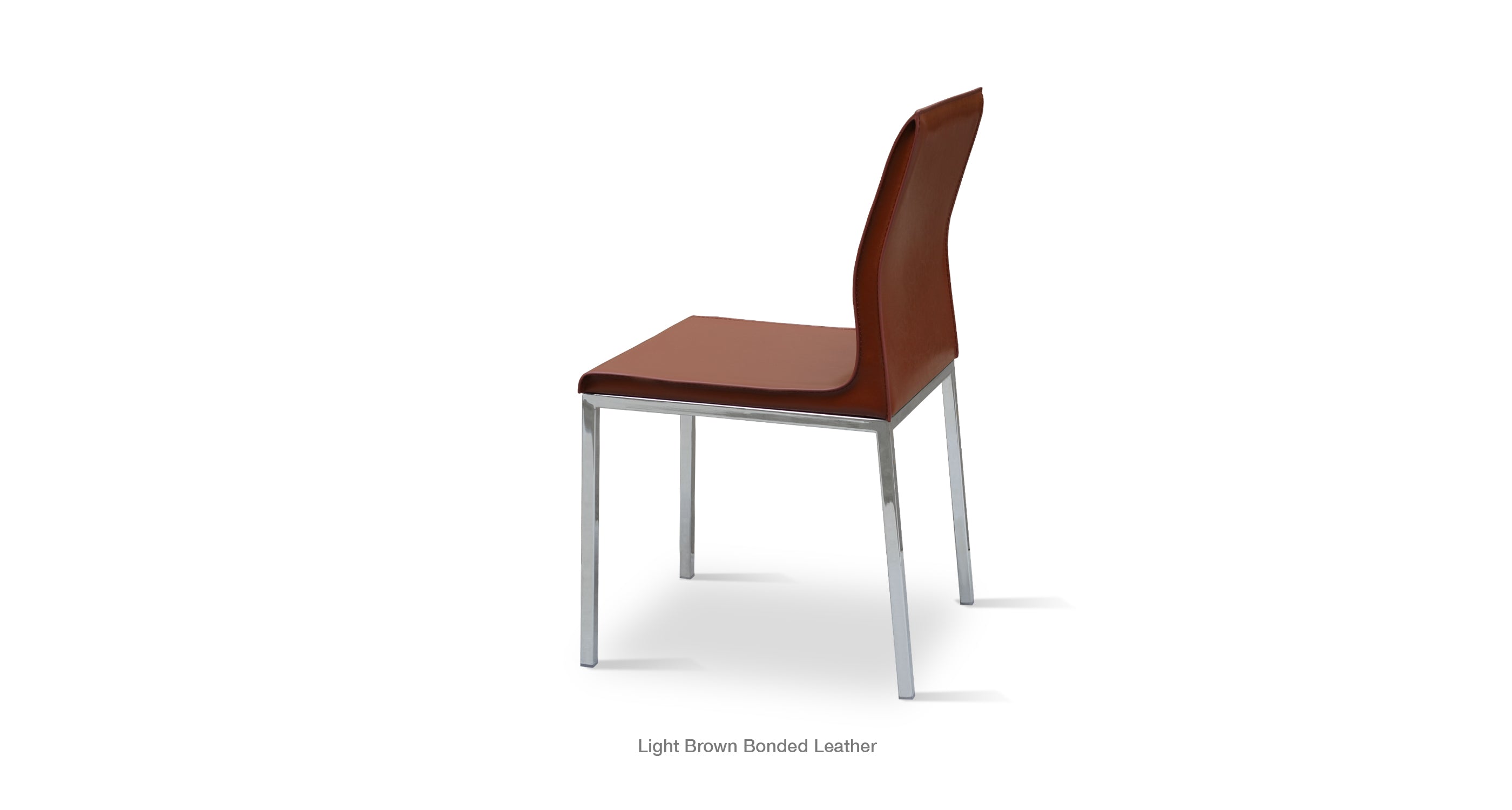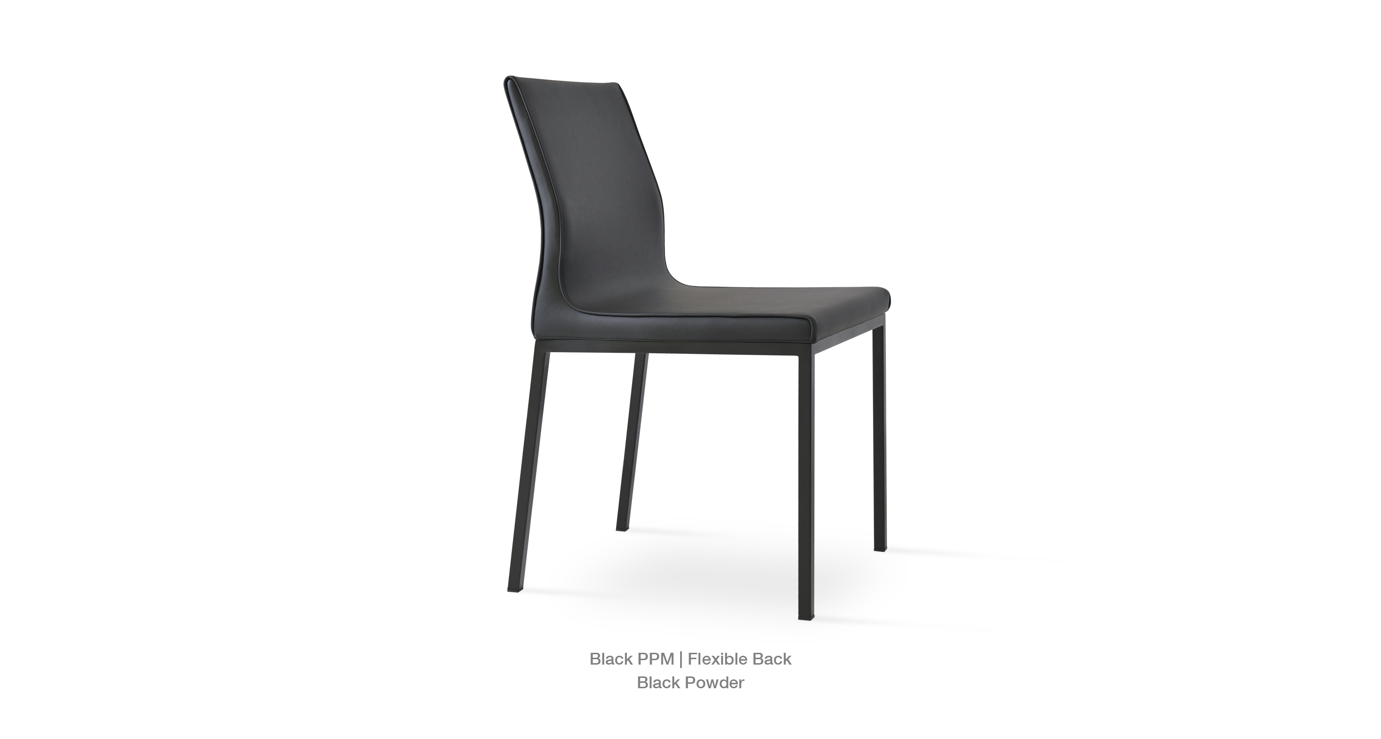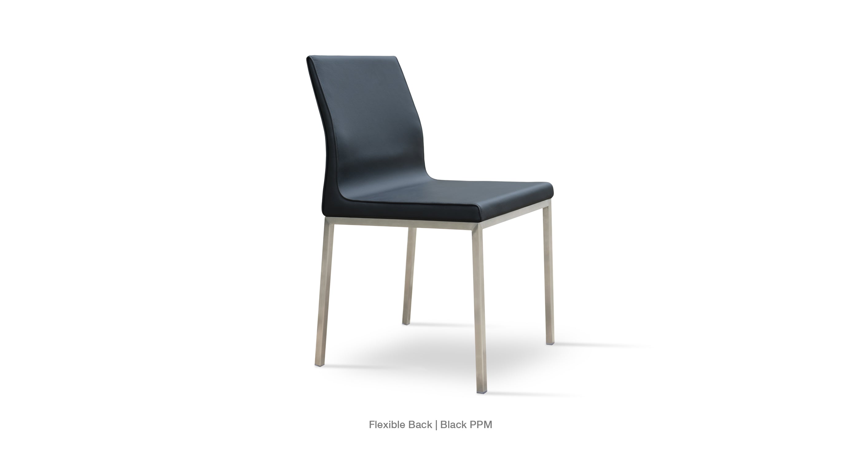Polo Metal is a contemporary dining chair with a comfortable upholstered seat and backrest on steel legs which are plastic tipped. The steel base can be finished in chrome, stainless steels and black powder coating. Polo Metal is also available with an adjuster base which is done in chrome and brass gold. The seat has a steel structure with an “S” shape springs for extra flexibility and strength. This steel frame is molded by an injecting polyurethane foam. The seat is upholstered with a removable velcro enclosed fabric, leatherette, PPM, leather or wool fabric slip cover. Other colors are available as a special order with a minimum quantity required. The chair is suitable for both residential and commercial use.