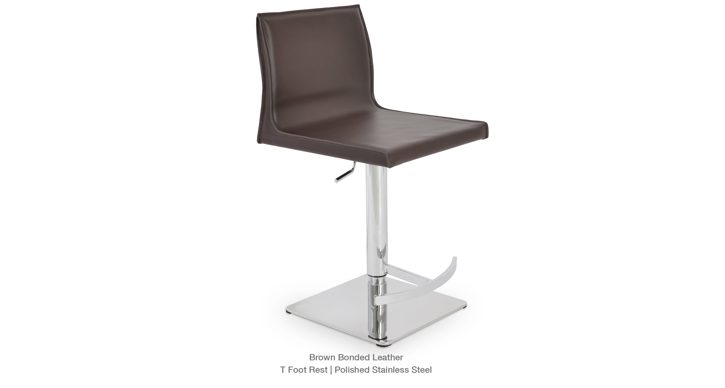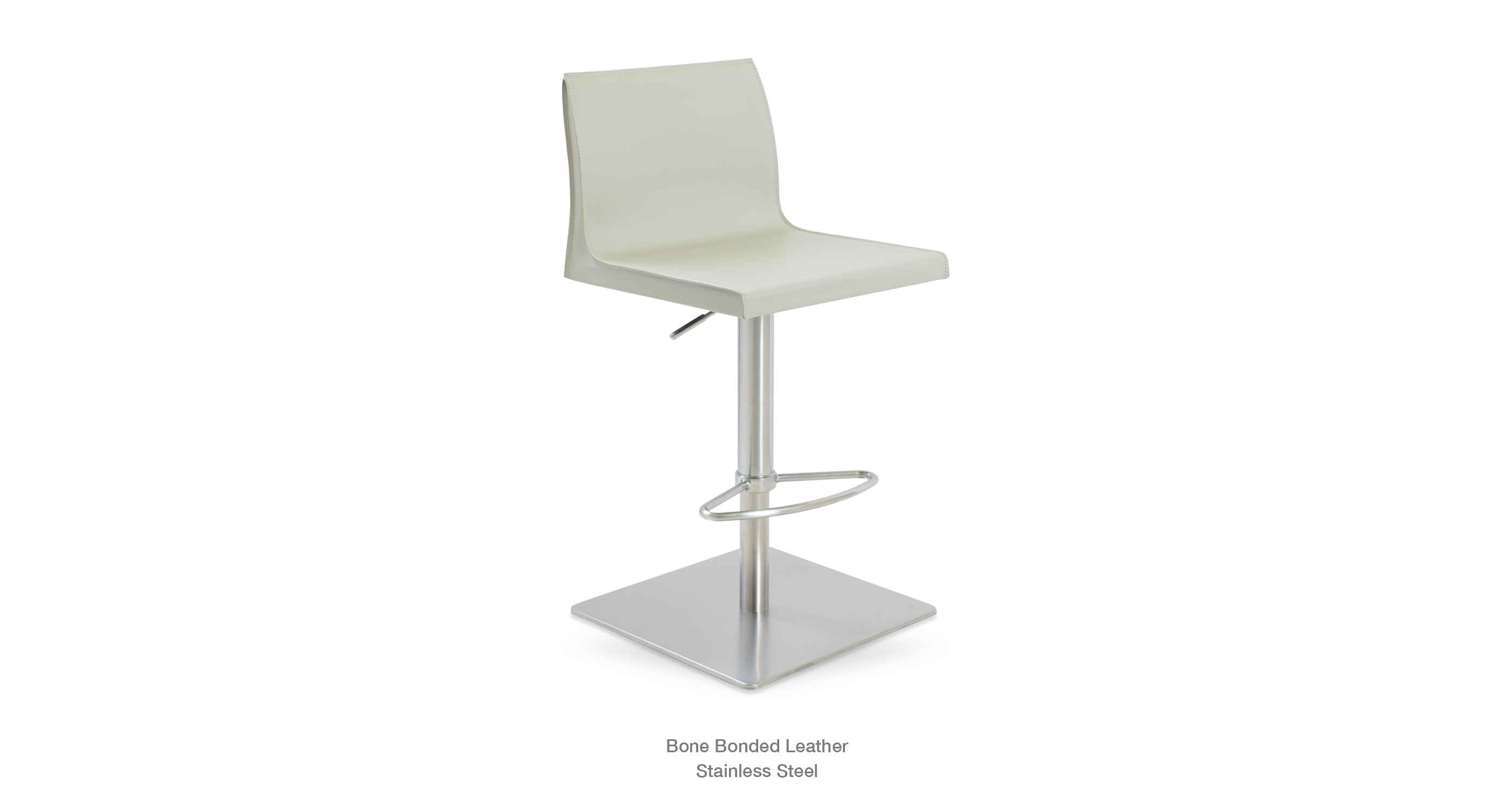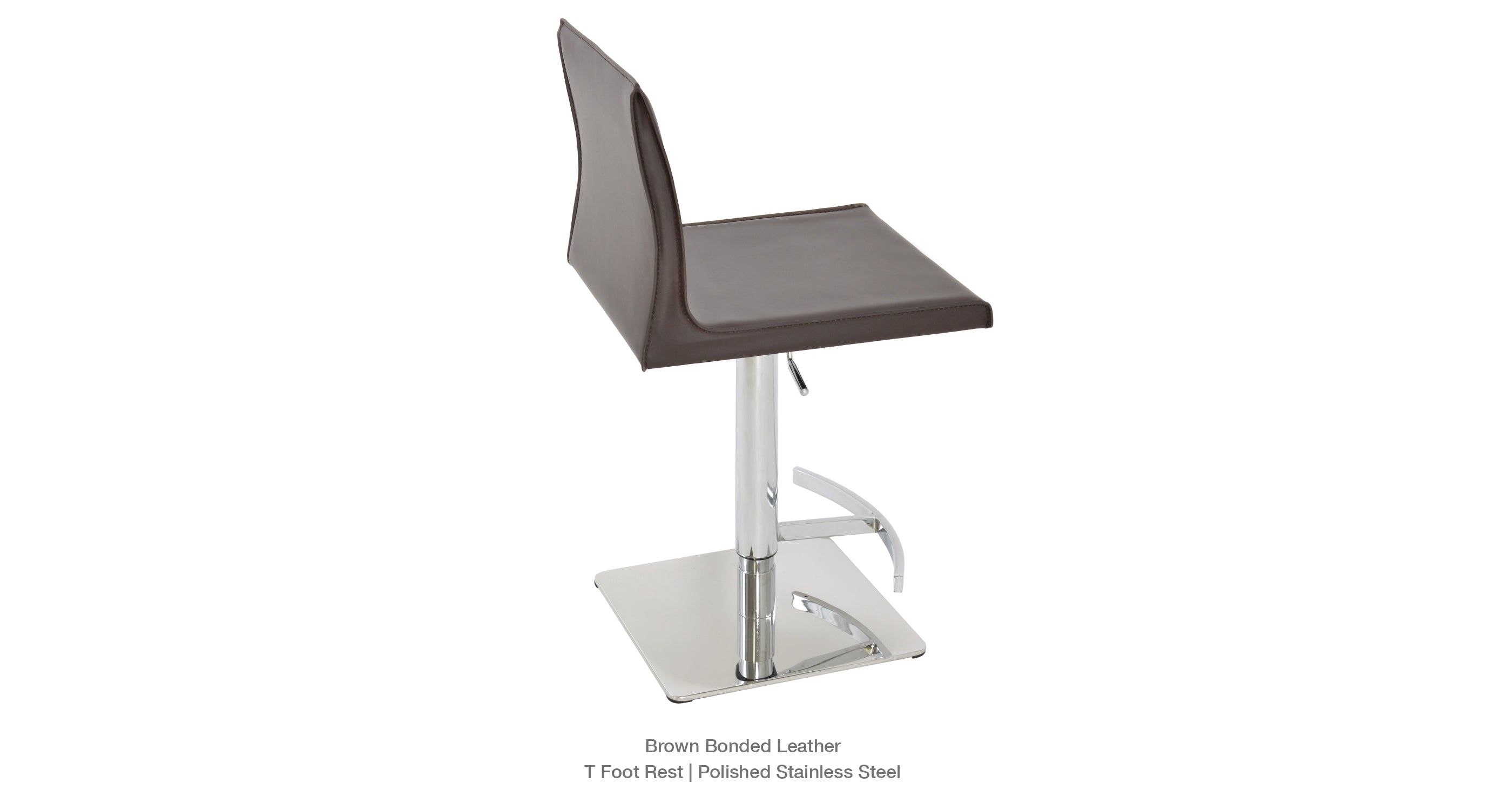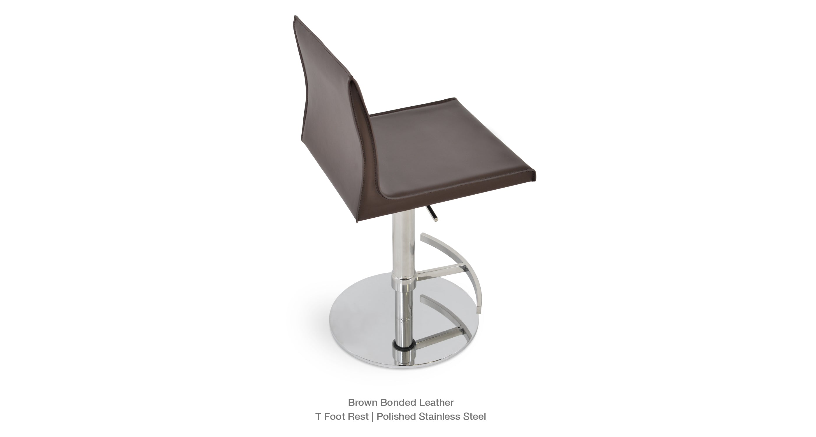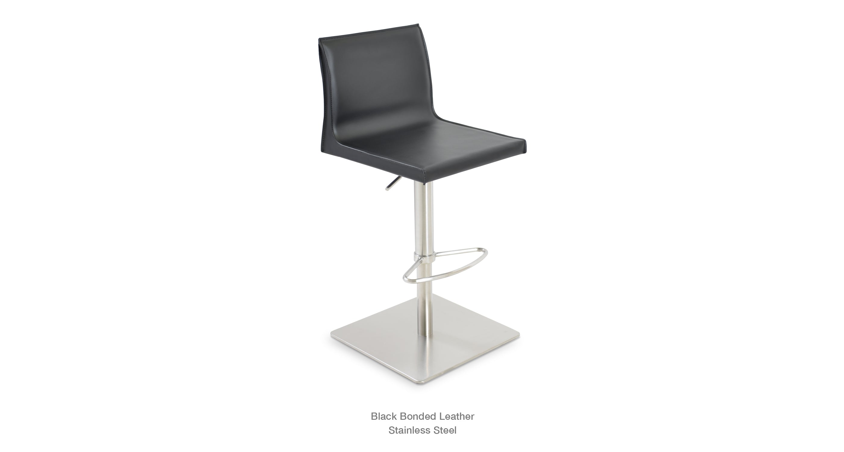 Polo Piston is a contemporary stool with a comfortable upholstered seat and backrest on an adjustable gas piston base which swivels and also adjusts easily from a counter height to a bar height with a lever that activates the gas piston mechanism. The seat has a steel structure with “S” shape springs for extra flexibility and strength. Polo Piston is suitable for both residential and commercial use.
