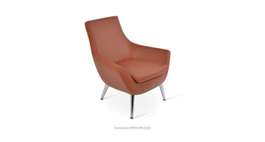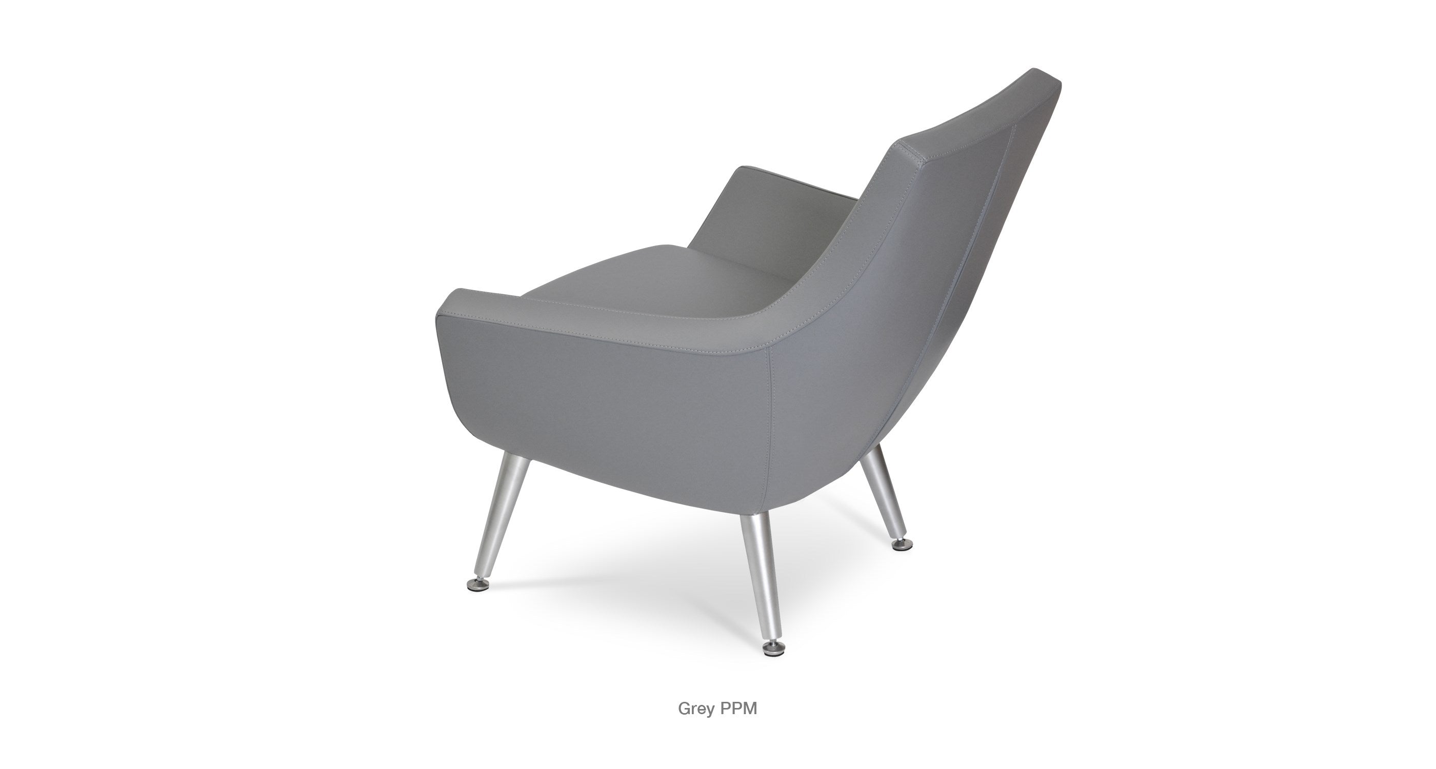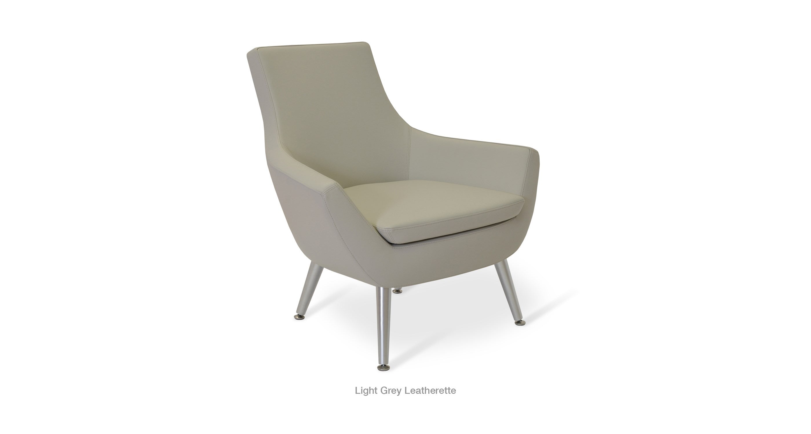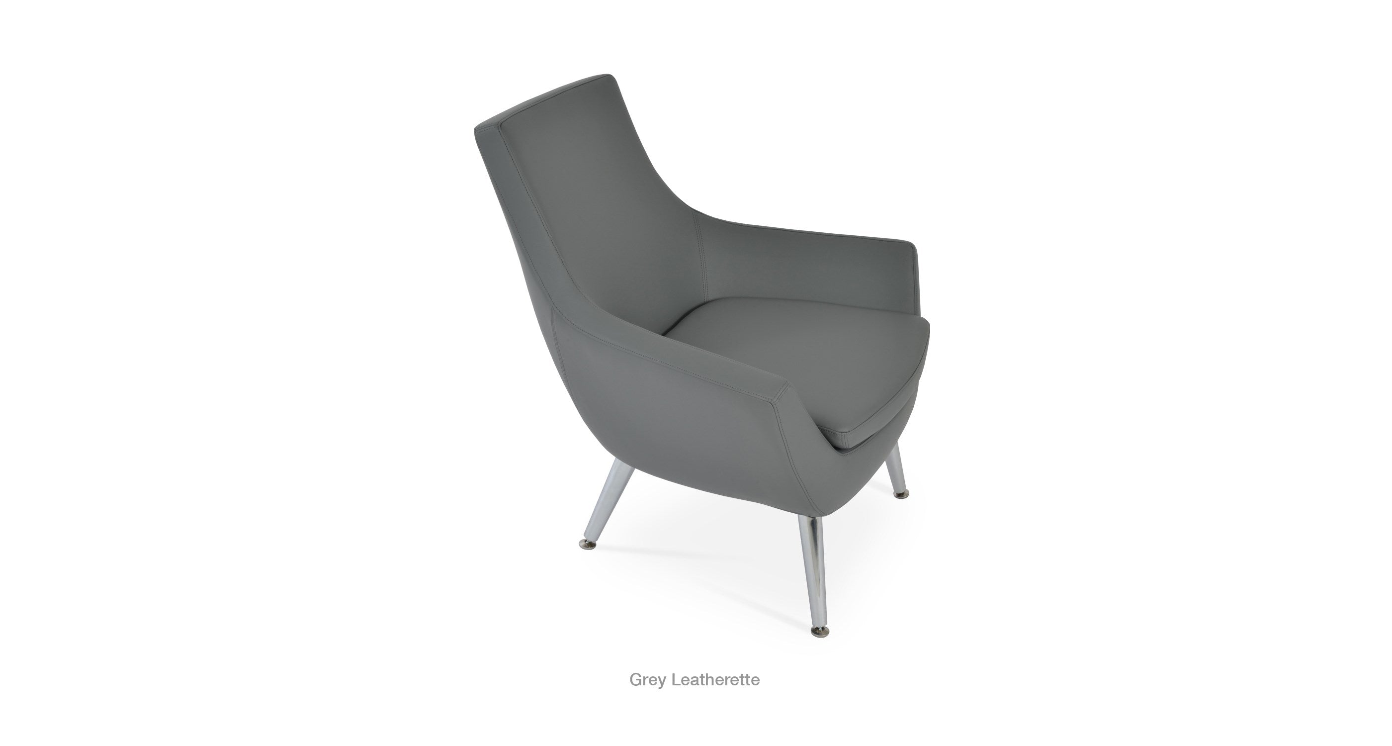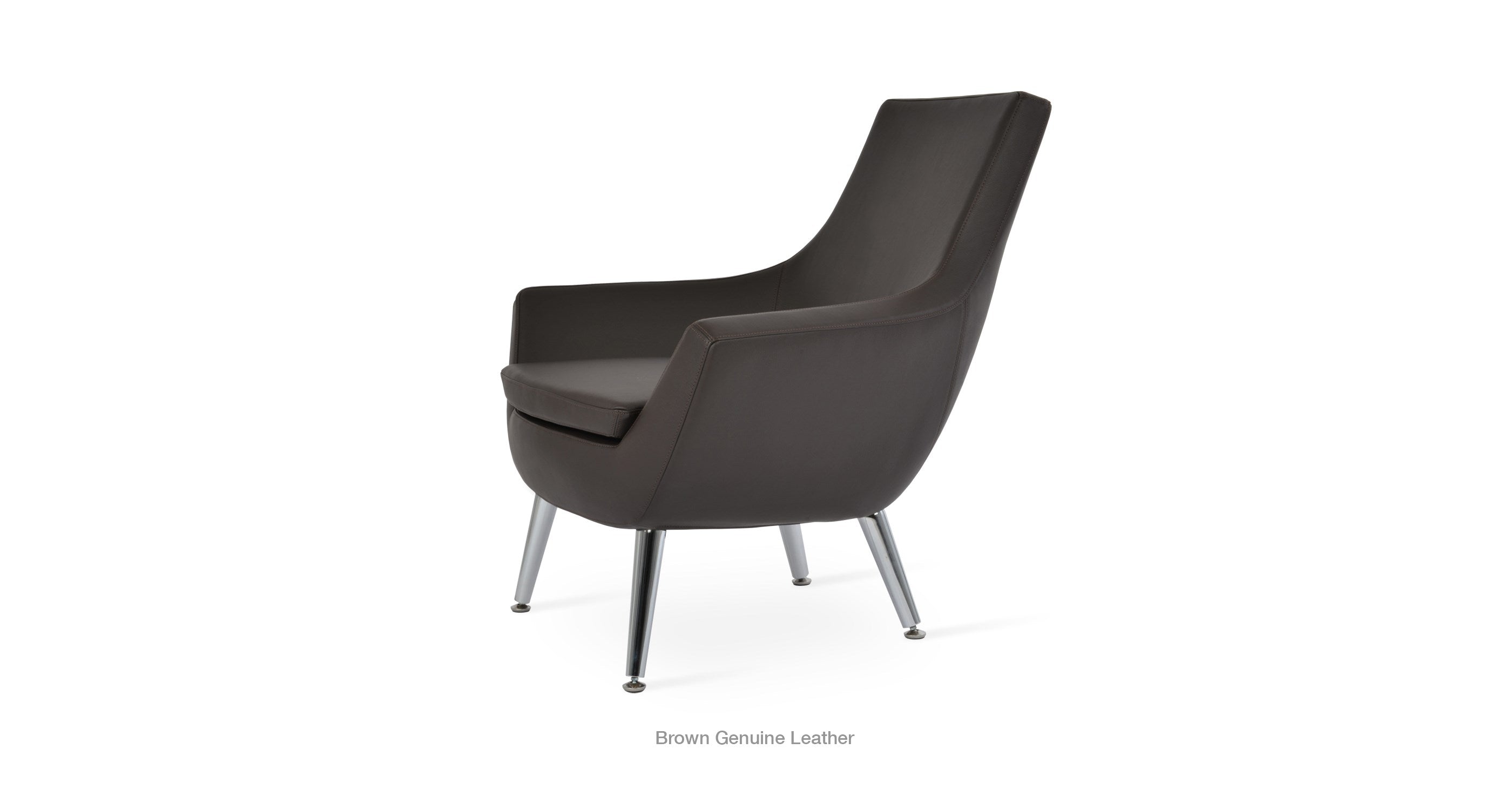 Rebecca is a contemporary occasional chair with a matt brushed nickel base. The padded seat cushion enhances the comfort of the chair. The seat has a steel structure with “S” shape springs for extra flexibility and strength. This wood frame is molded by injecting polyurethane foam. Rebecca seat is upholstered with leather, leatherette, organic wool which has a 5 year guarantee. The chair is suitable for both residential and commercial use.