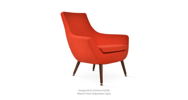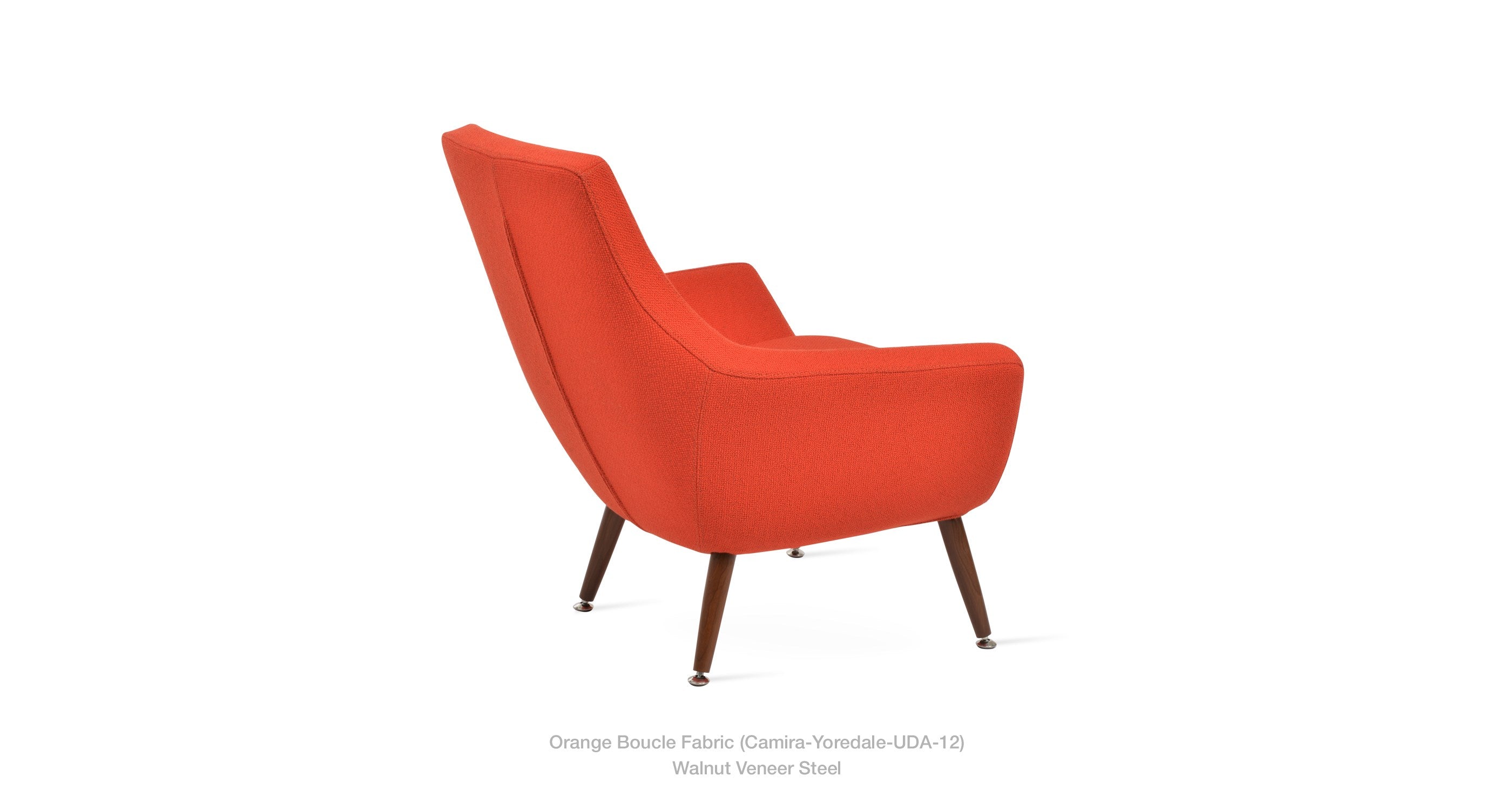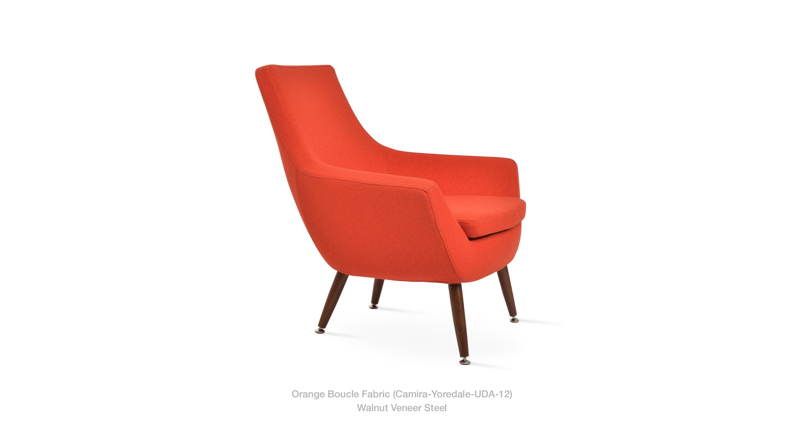 Rebecca is a contemporary occasional chair with a Walnut Veneer Steel base. The padded seat cushion enhances the comfort of the chair. The seat has a steel structure with “S” shape springs for extra flexibility and strength. This wood frame is molded by injecting polyurethane foam. Rebecca seat is upholstered with leather, leatherette, organic wool which has a 5 year guarantee. The chair is suitable for both residential and commercial use.