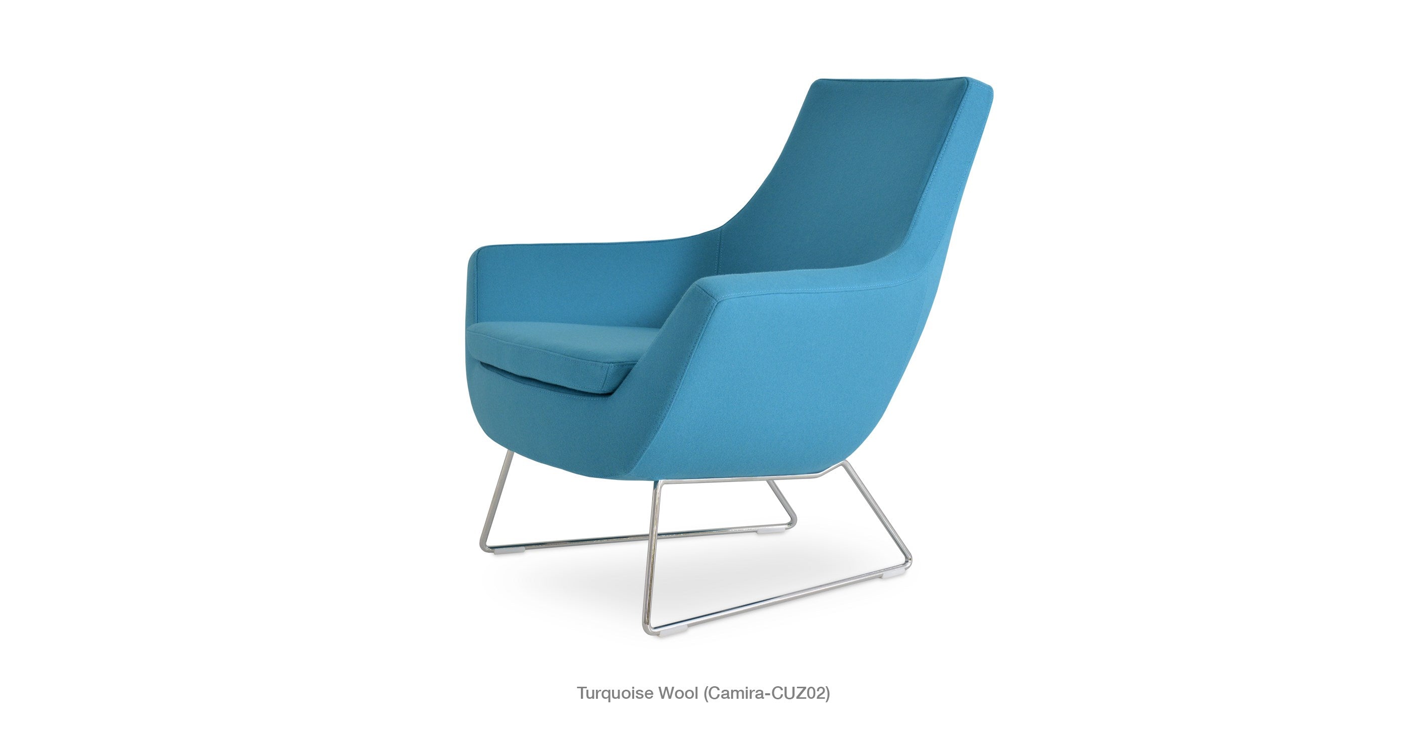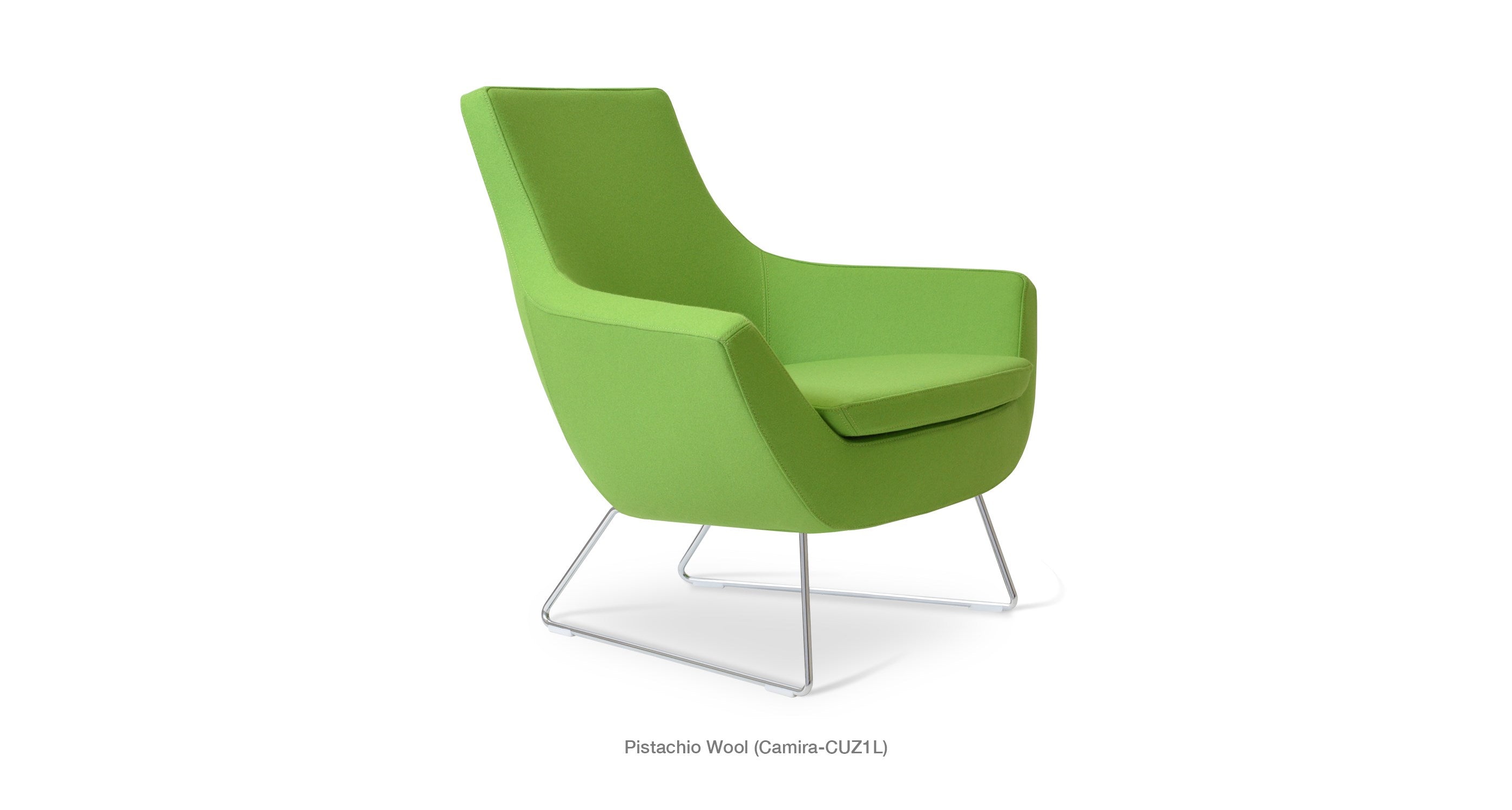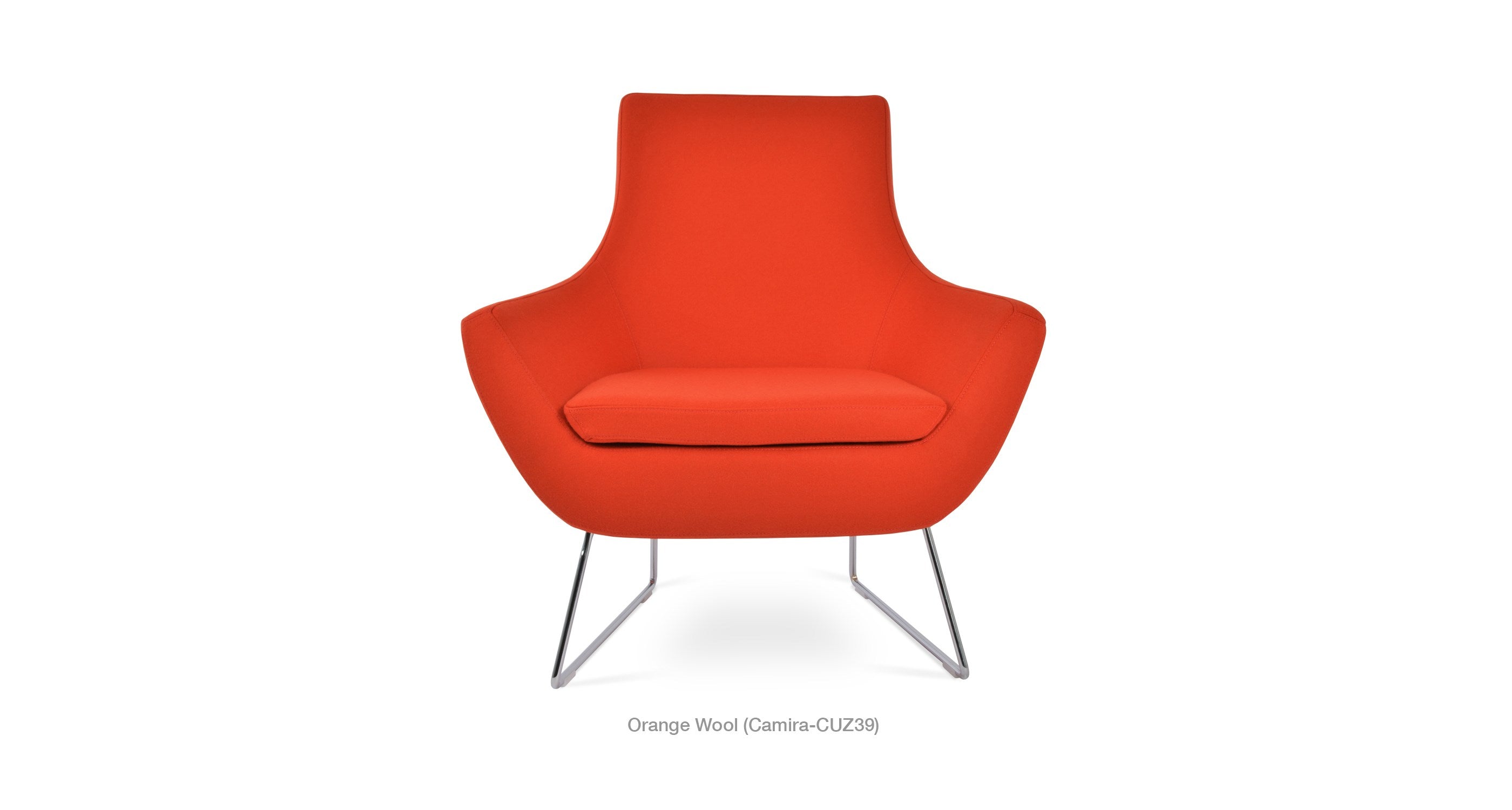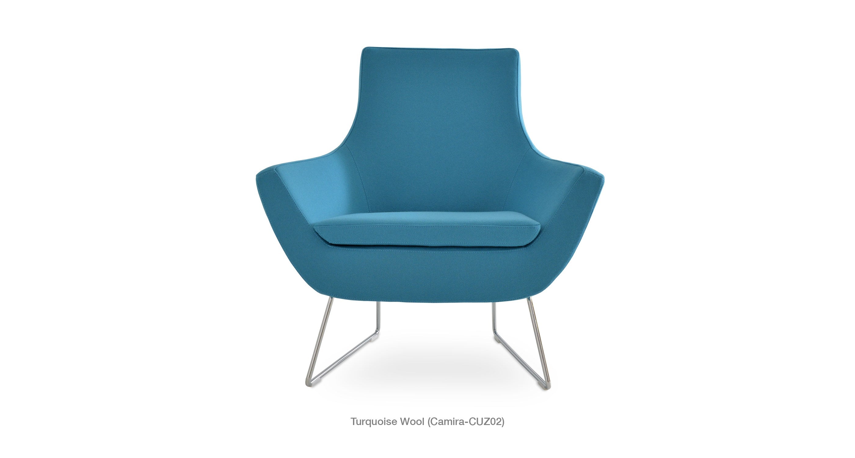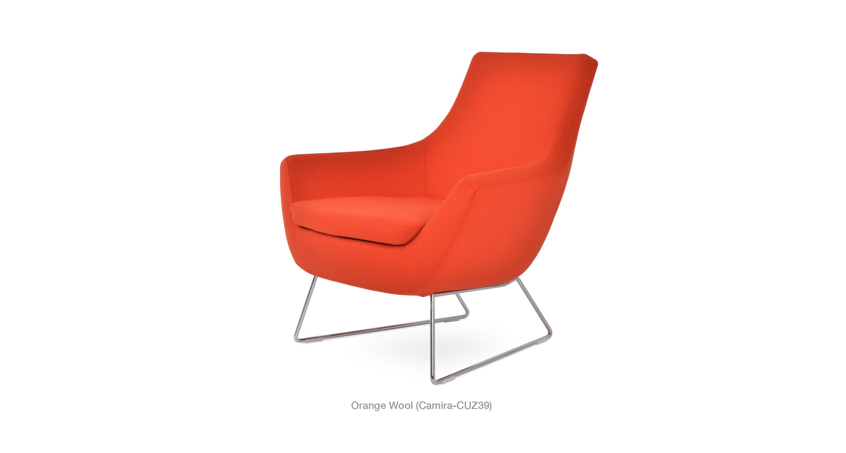 Rebecca is a contemporary occasional chair with a sled chrome steel wire base. Each leg is tipped with a plastic glide embedded into the metal wire. The padded seat cushion enhances the comfort of the chair. The seat has a steel structure with "S" shape springs for extra flexibility and strength. This steel frame is molded by injecting polyurethane foam. The chair is suitable for both residential and commercial use.