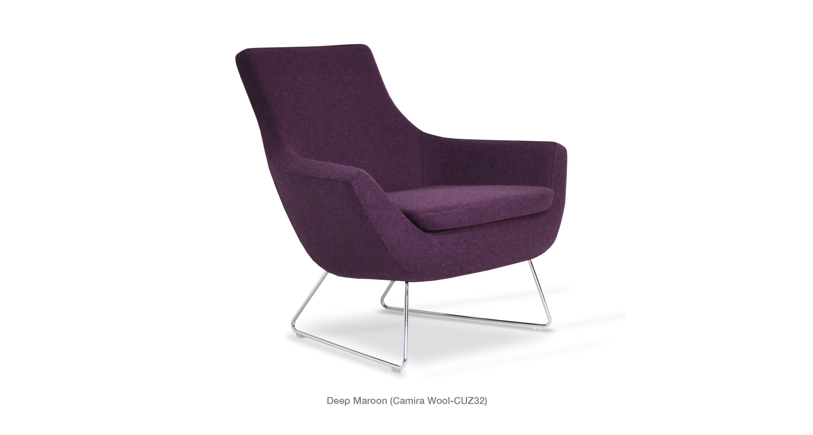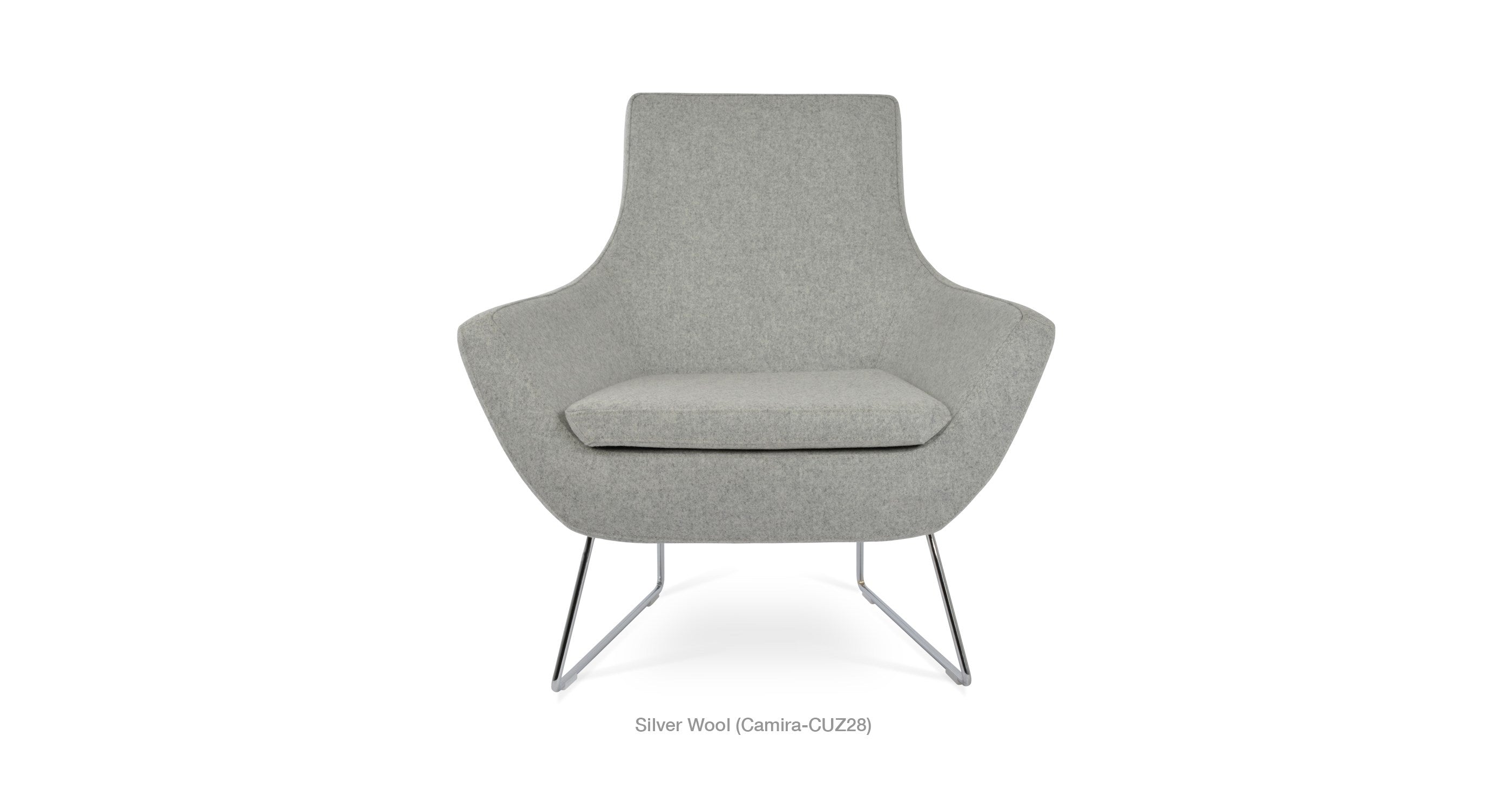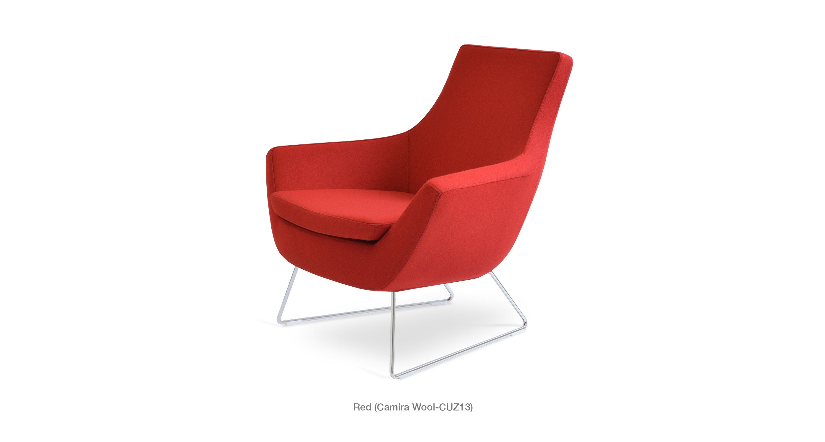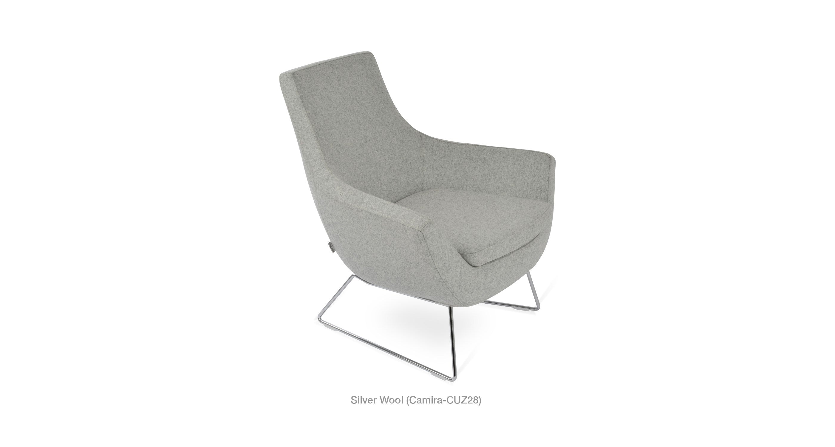 Rebecca is a contemporary occasional chair with a sled chrome steel wire base. Each leg is tipped with a plastic glide embedded into the metal wire. The padded seat cushion enhances the comfort of the chair. The seat has a steel structure with "S" shape springs for extra flexibility and strength. This steel frame is molded by injecting polyurethane foam. The chair is suitable for both residential and commercial use.