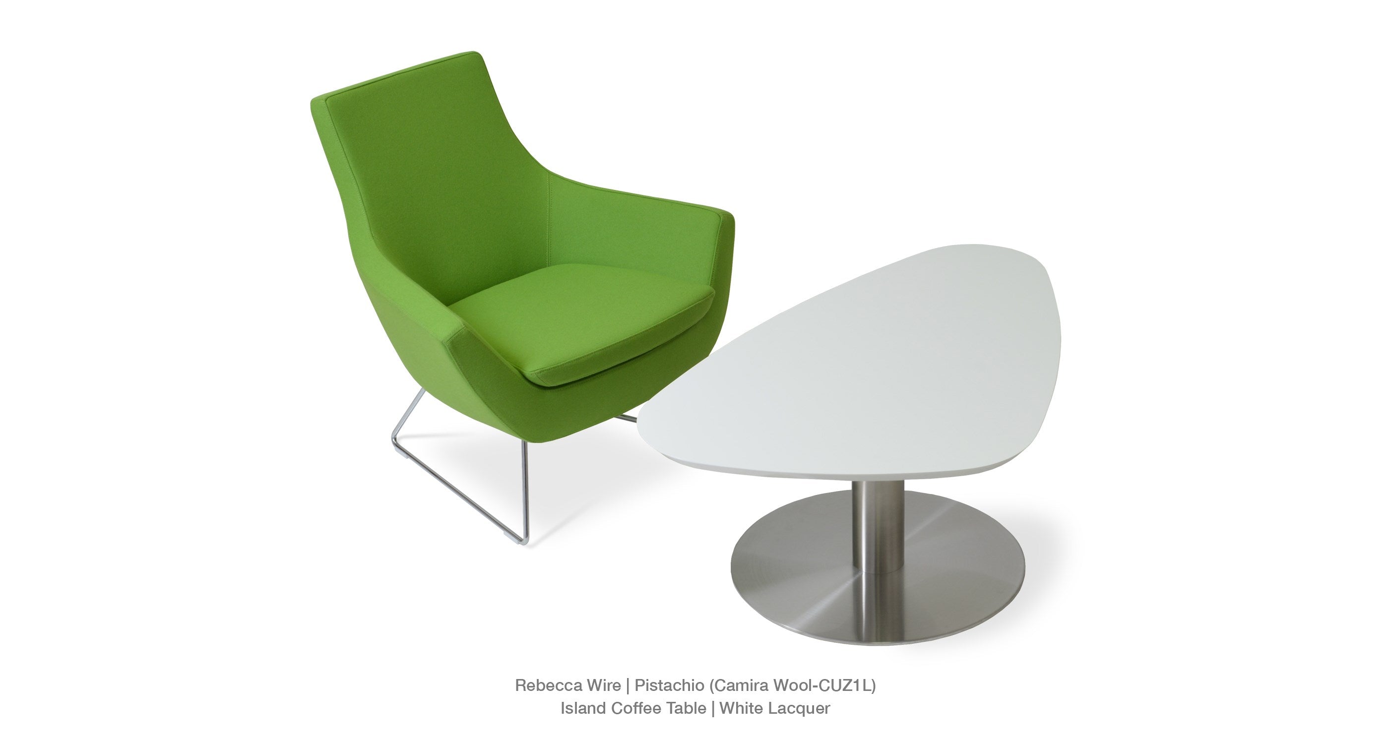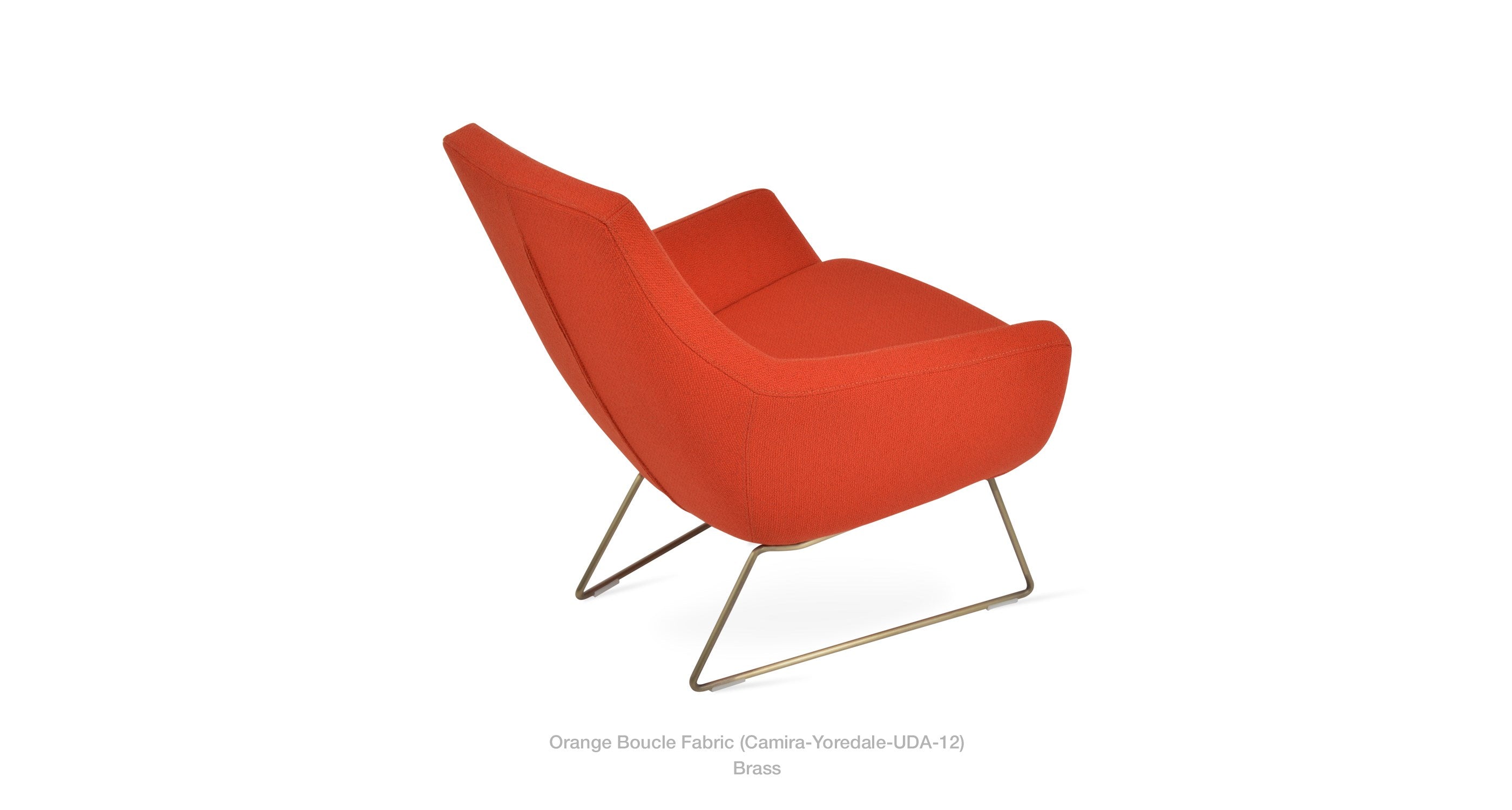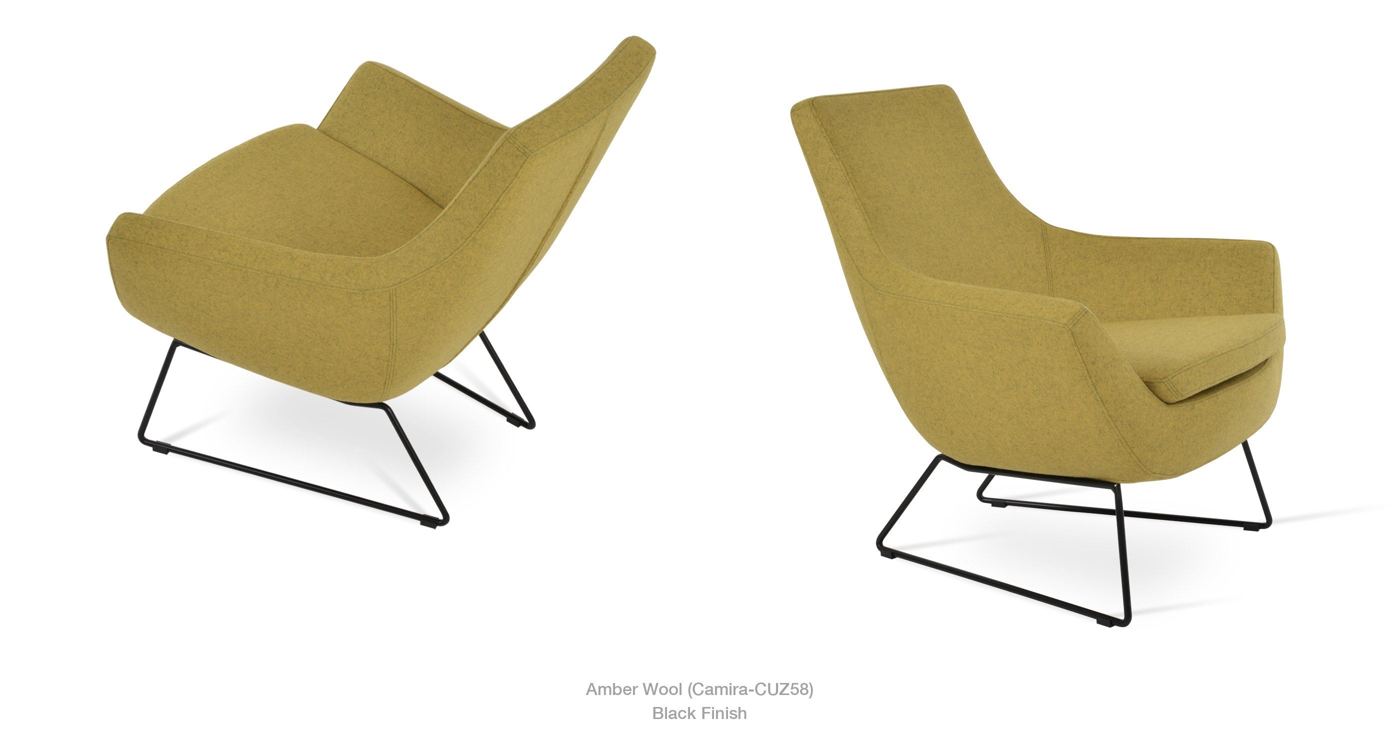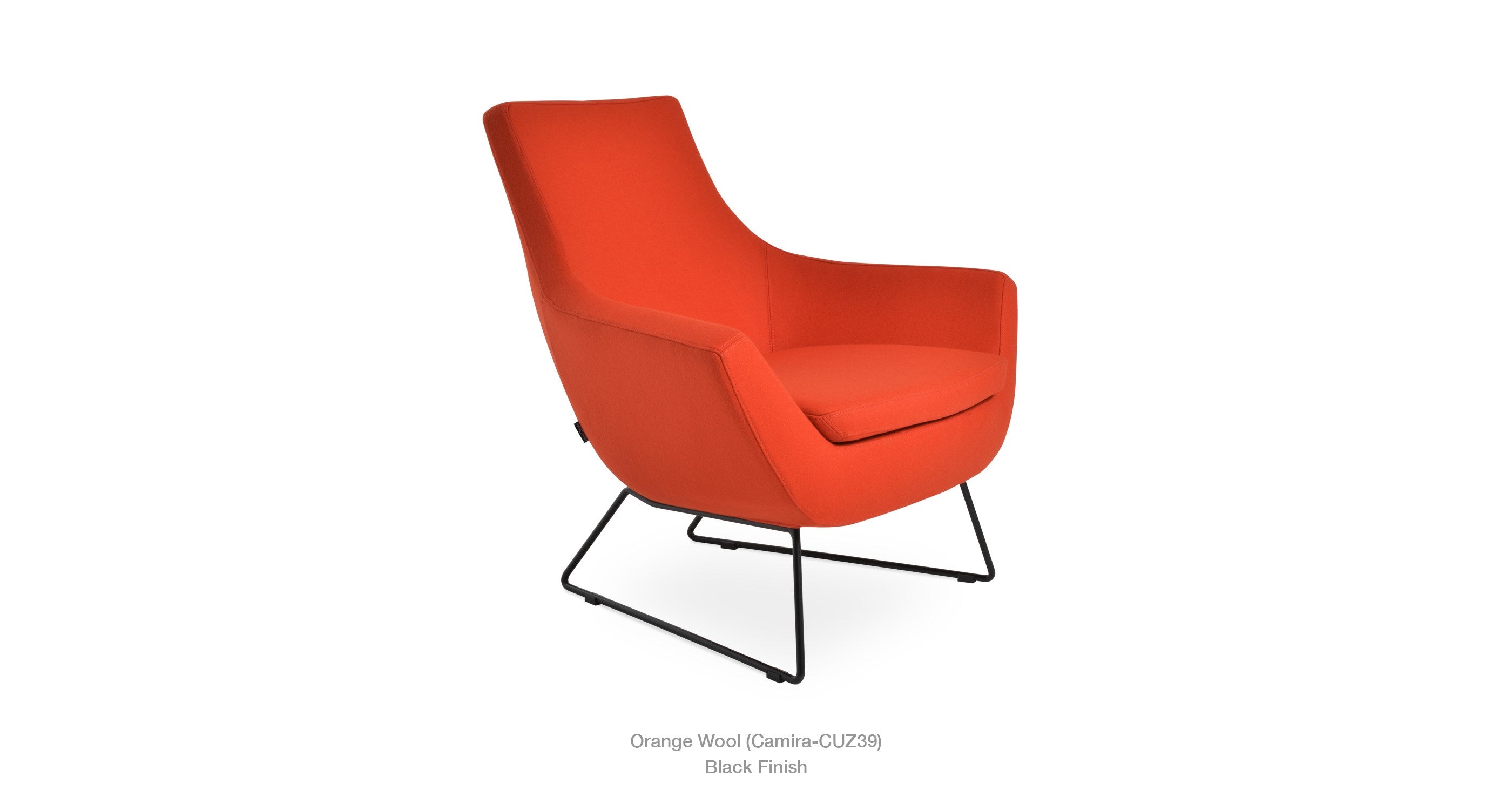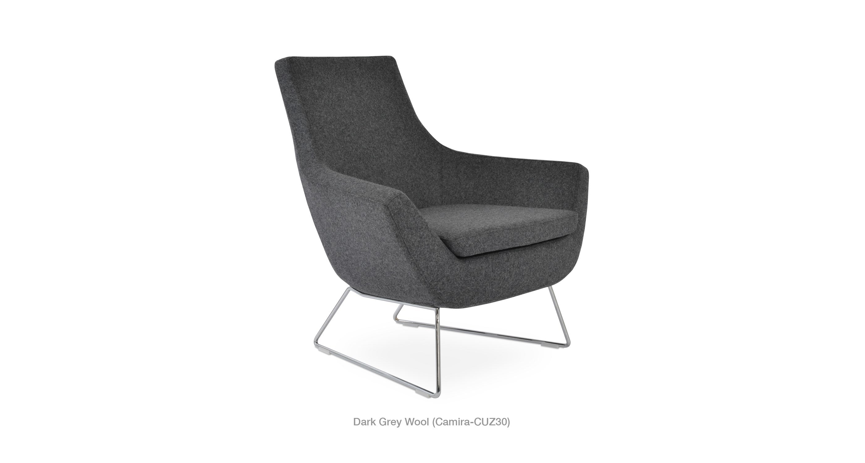 Rebecca is a contemporary occasional chair with a sled chrome steel wire base. Each leg is tipped with a plastic glide embedded into the metal wire. The padded seat cushion enhances the comfort of the chair. The seat has a steel structure with "S" shape springs for extra flexibility and strength. This steel frame is molded by injecting polyurethane foam. The chair is suitable for both residential and commercial use.