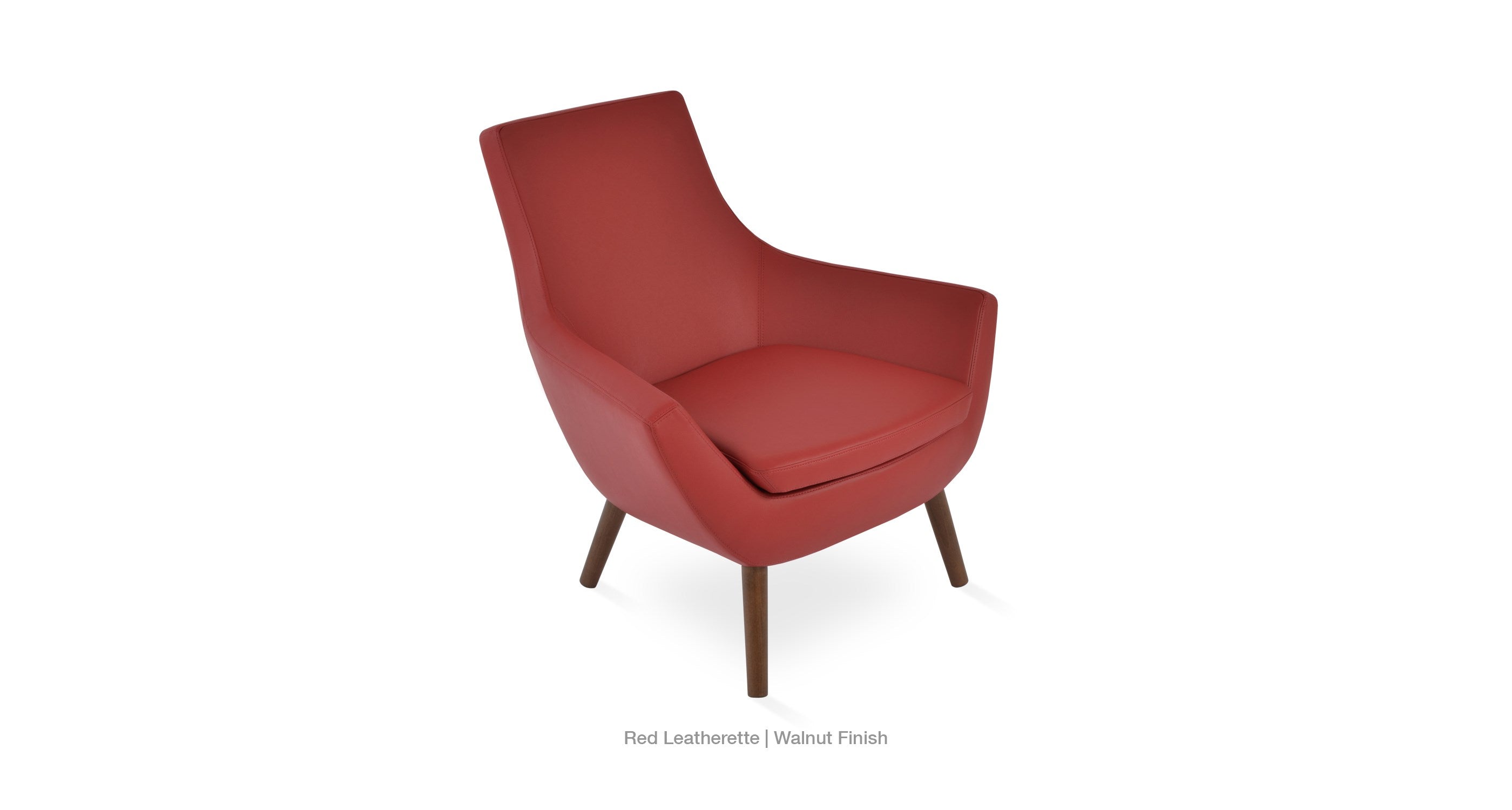 Rebecca is a contemporary occasional chair with a wood base. The padded seat cushion enhances the comfort of the chair. The seat has a steel structure with "S" shape springs for extra flexibility and strength. This wood frame is molded by injecting polyurethane foam. Rebecca seat is upholstered with leather, leatherette, organic wool which has a 5 year guarantee.