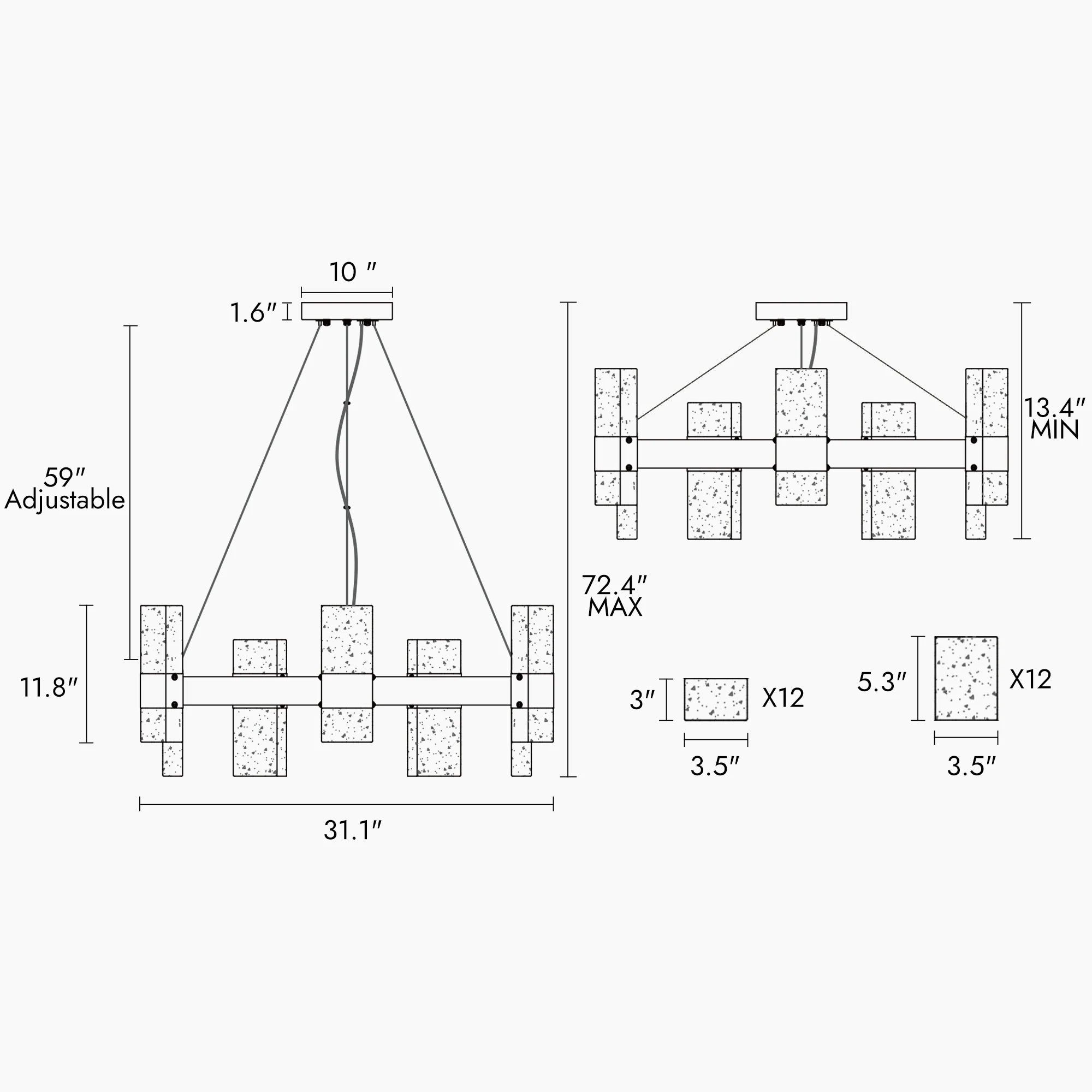 - Mesmerizing Sparkle: The chandelier features an array of rectangular textured glass pieces that beautifully diffuse light, creating a dazzling display that will enhance any room.