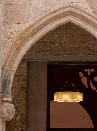 Sexta is a renewal of the iron luminaire, reminiscent of traditional medieval chandeliers. Its illustrious, solid predecessor is the Estadio, also designed by Miguel Mila when paired in the same room, they maintain a beautiful balance.