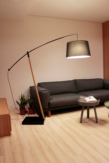 ARCHER is one of the brightest constellations in a summer night. The solid bow arm is constructed with beech. The bowstring is conveniently created for easy adjustment in the lamp's arm. The ARCHER is available in two floor sizes. Its base is solidly constructed with metal. With ingenuity and technique, the wires are concealed within the wooden body.
