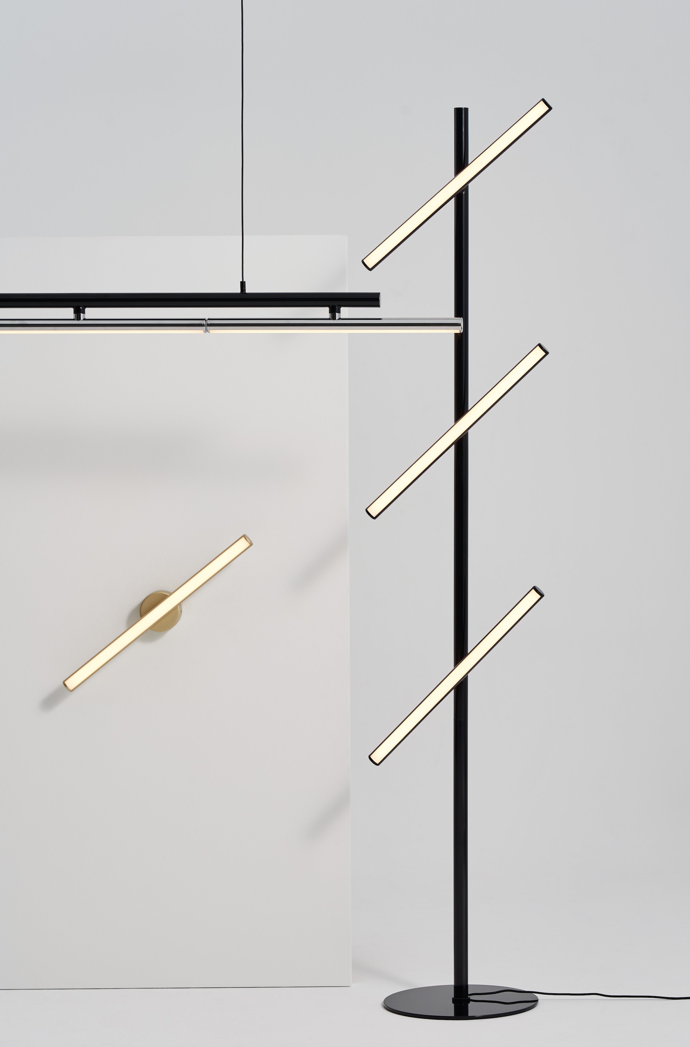 Cutting out all superfluous details, the LISA perfectly depicts the flow of light, thru its highly functional, yet precisely sculptural form. Available in ceiling, wall, and floor lamp configurations, all LISA models offer a high quality CRI95 light output, without undesirable glare. The Wall and Ceiling version are fully dimmable via Triac dimming, while the Floor version is controlled thru a touchless integrated optic sensor. Each LISA lighting beam is adjustable up to 240 degrees for the ceiling and floor model, and up to 300 degrees for the wall version. Whether it is the all shiny black version, or the shiny black with chrome accents, the LISA will serve as an elegant addition to any environment.