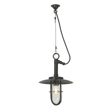 The 7523 Ship's Well Glass Pendant is suitable for both exterior and interior locations. Weathered brass reflector and clear or frosted glass.