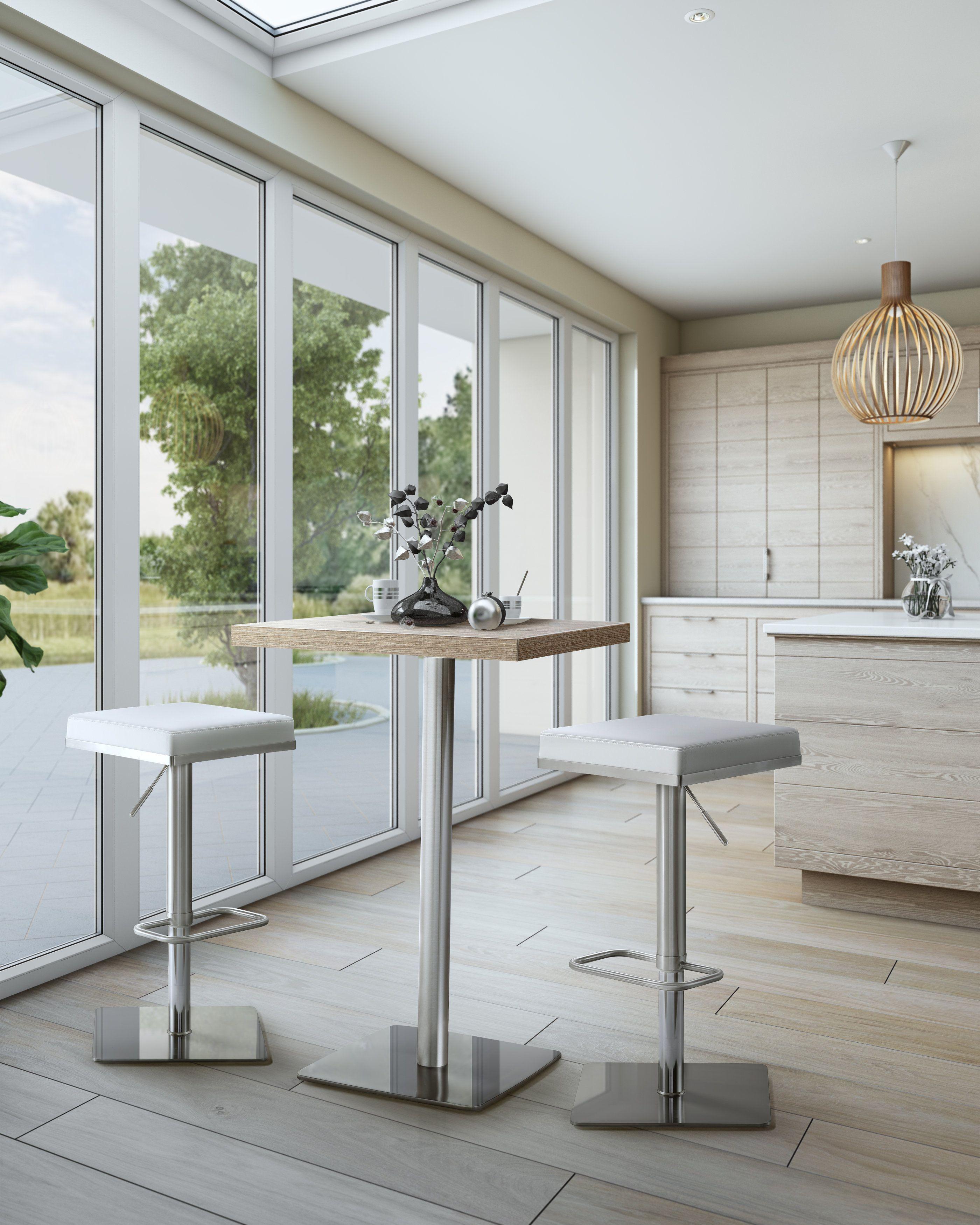 Furnish your kitchen or bar area in contemporary style with the Bari stool from TOV. The solid stainless steel frame provides a sturdy base, while the plush seat and footrest ensure maximum comfort. The combination of angles and gentle curves gives this stool an eye-catching appearance, while the neutral color allows it to match well with any decor.