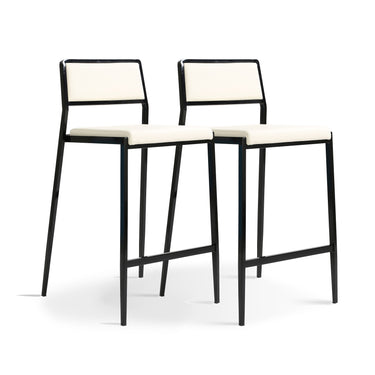 Transform your kitchen with the striking Gale Stackable Counter Stool, available in sets of two and offered in luxurious cream or black vegan leather, as well as a sophisticated Tan Basketweave fabric. The stools are crafted with an anti-rust stainless steel frame, ensuring both durability and a timeless aesthetic. The combination of durable woven fabric for high-traffic areas and supple vegan leather for easy cleaning encapsulates a sleek, minimalist-modern design that makes a bold, fresh statement in any space.