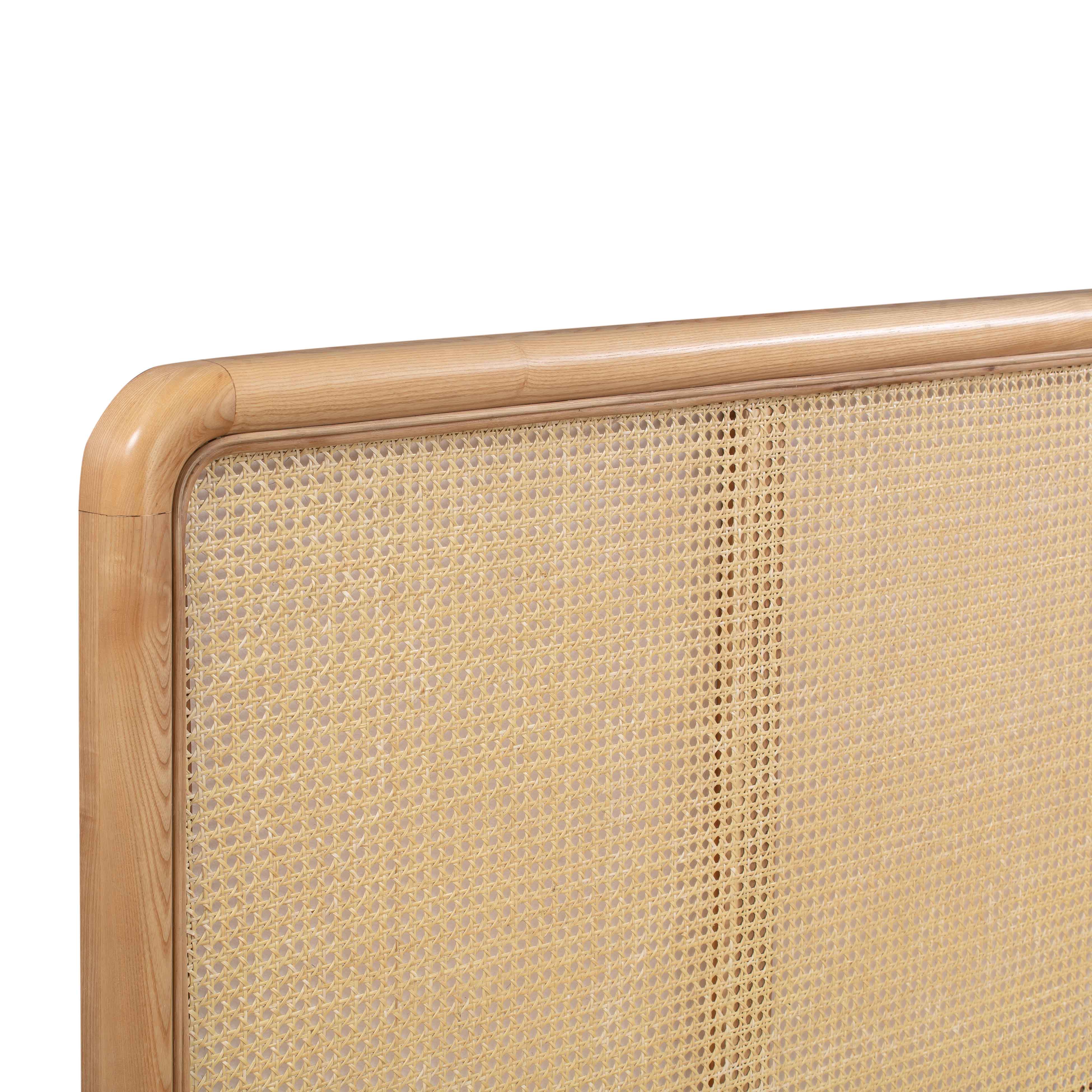 Dream on in comfort and style with the Kavali bed. Masterfully crafted from Ash wood and cane and complemented with soft velvet, this retro-inspired bed is available in mutiple sizes and colors.