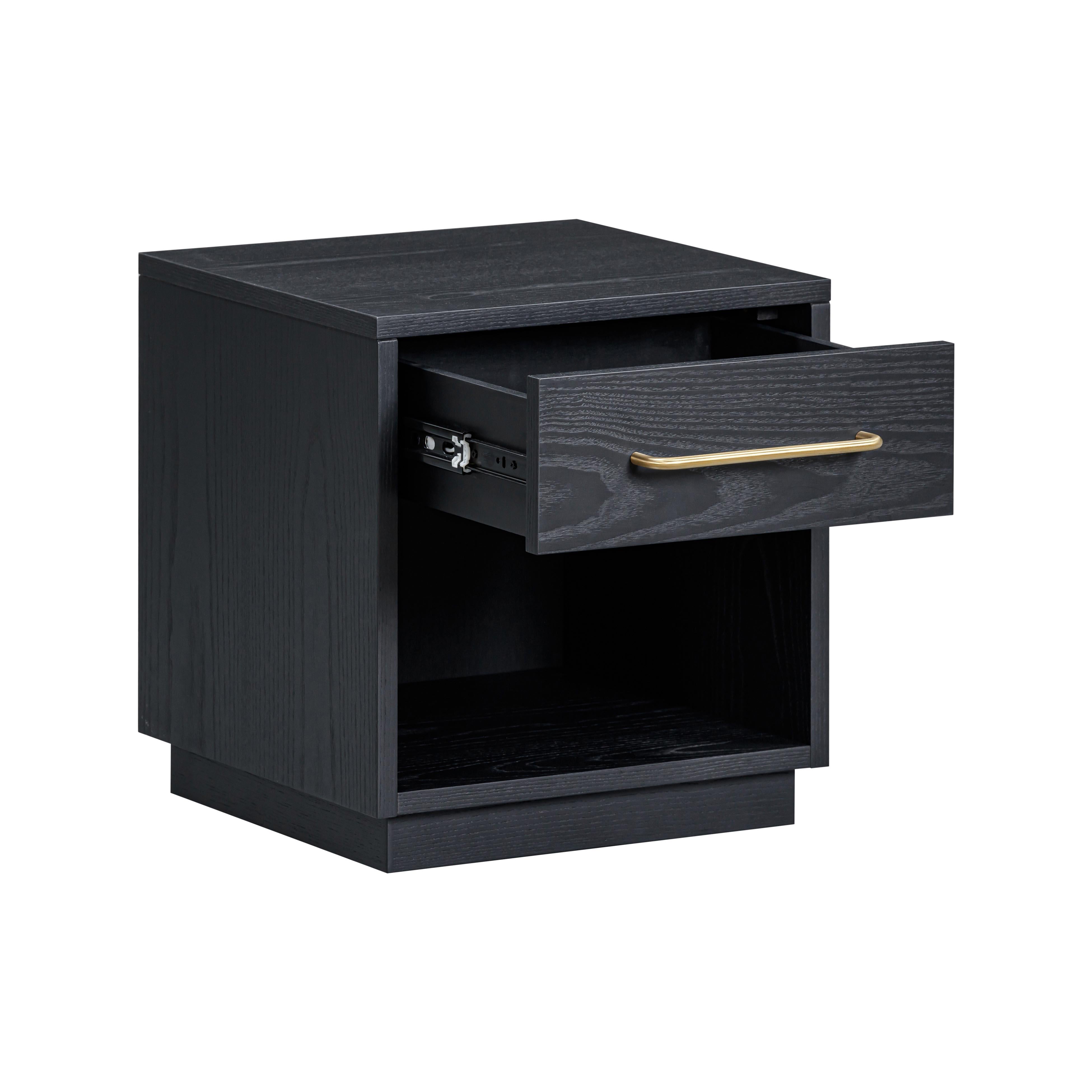 Elevate your bedroom with the Marlow Nightstand, a perfect blend of style and function. Crafted with a sleek, natural wood finish, this nightstand exudes warmth and timeless elegance. The single drawer, adorned with nickel hardware, offers a discreet storage solution, while the open space below provides easy access to your favorite books or decorative pieces. For a bolder look, the Marlow Nightstand is also available in a sophisticated black finish, complemented by brass hardware, adding a touch of modern luxury to any space.