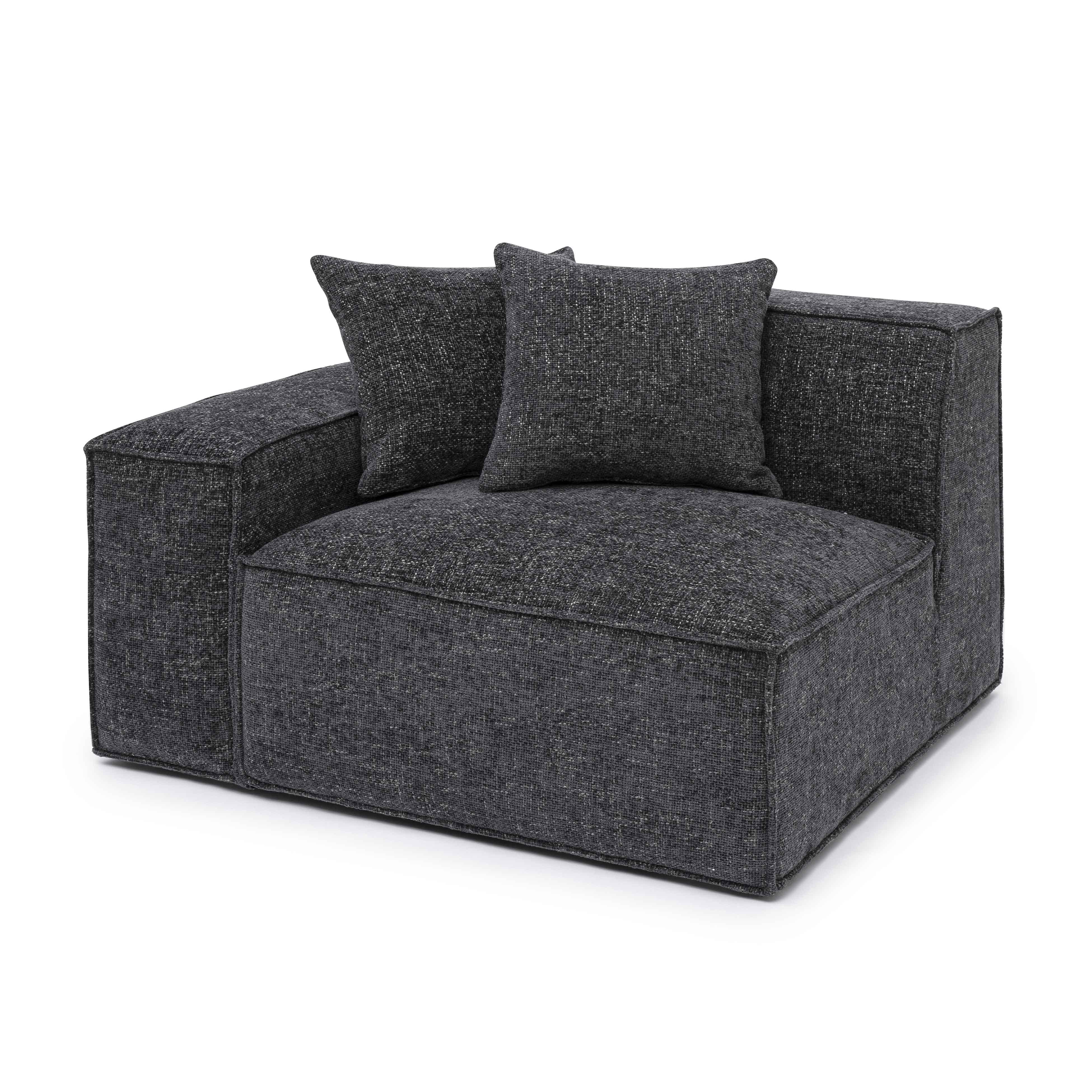 The Mindy Modular Sectional delivers cozy texture and standout style with its soft chenille basketweave, thick stitching, and plush accent pillows. Built for comfort with deep seating and endless ways to configure, it’s available in cream, charcoal, or taupe to suit your space.