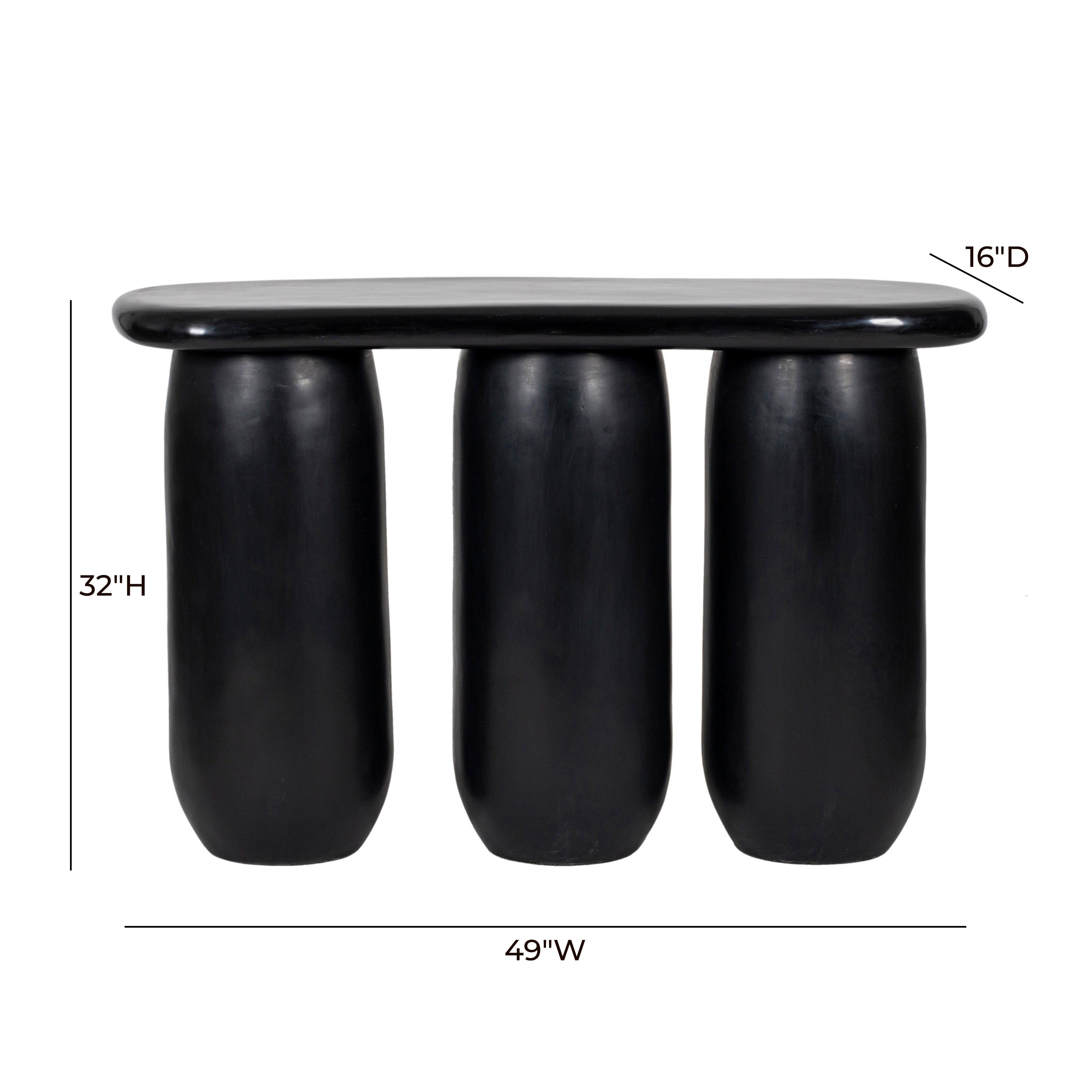 Introducing the Rahul Black Console Table: a lightweight and versatile masterpiece that effortlessly blends modern design with an earthy aesthetic. Crafted with high-quality fiberglass, this console table is easy to move and position wherever you desire. Its raw edge stone look, coupled with a wabi sabi vibe, adds an organic and unique touch to your living space, creating a harmonious blend of contemporary style and natural beauty.