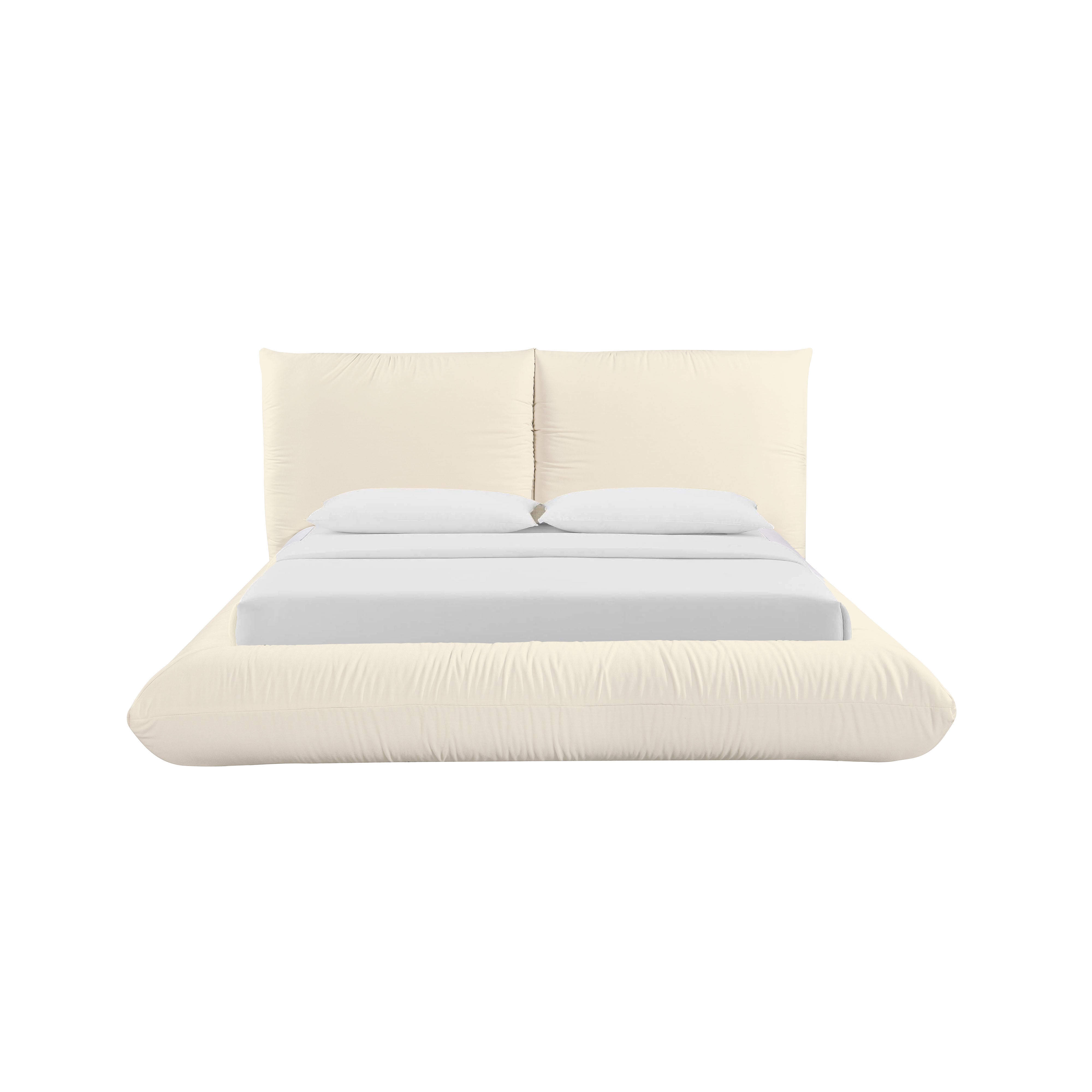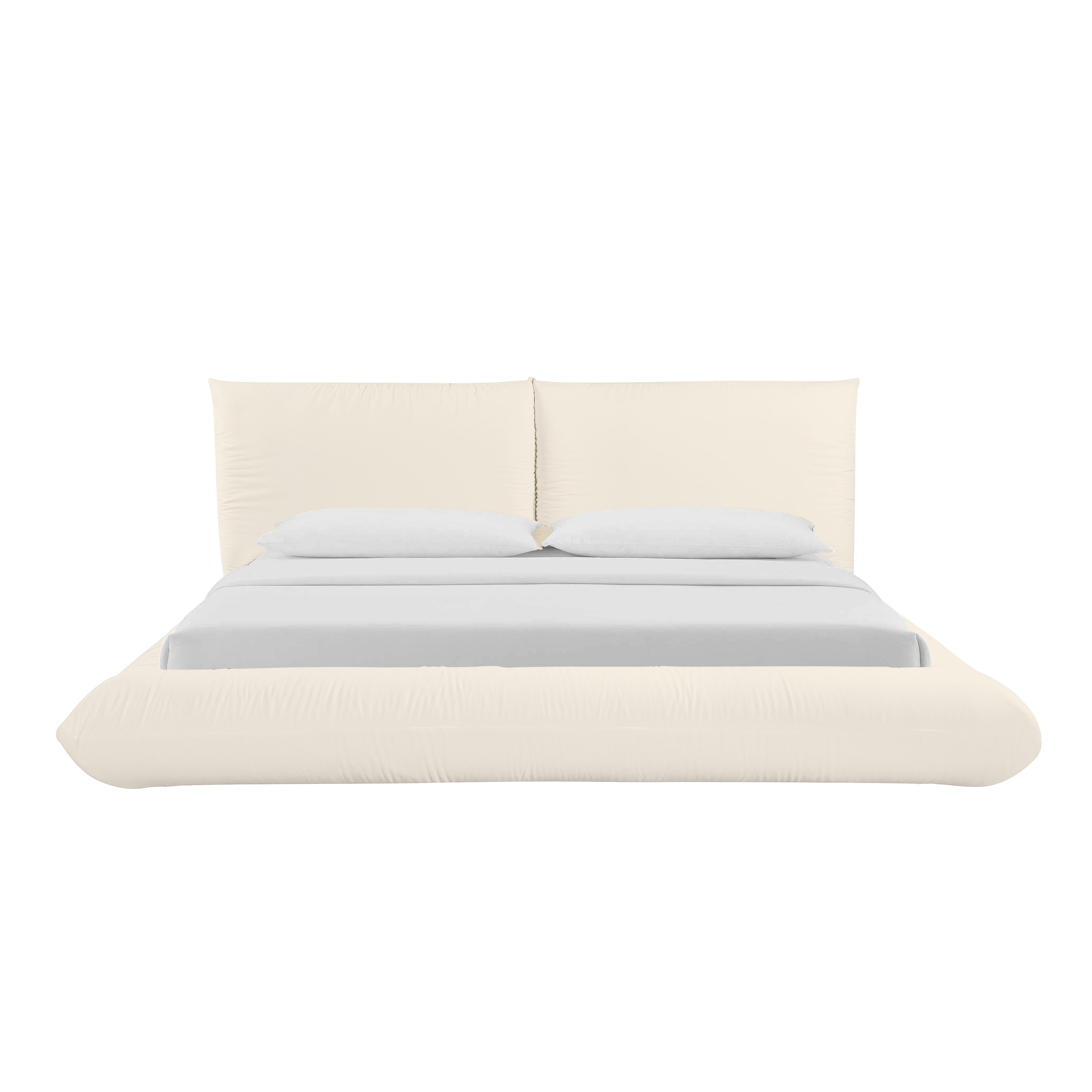 Meet the Romp Cream 100% Recycled Linen Bed—our most ingenious creation to date, bringing overtly plush and ultra-luxurious style to the mass market like never before. Utilizing a unique assembly technique, the pillowed nature of the bed frame is now available at an unprecedented price point. With two matching accent pillows included, this platform bed is not just a place to sleep but also the perfect spot to 'romp around' or enjoy your Netflix and chill.