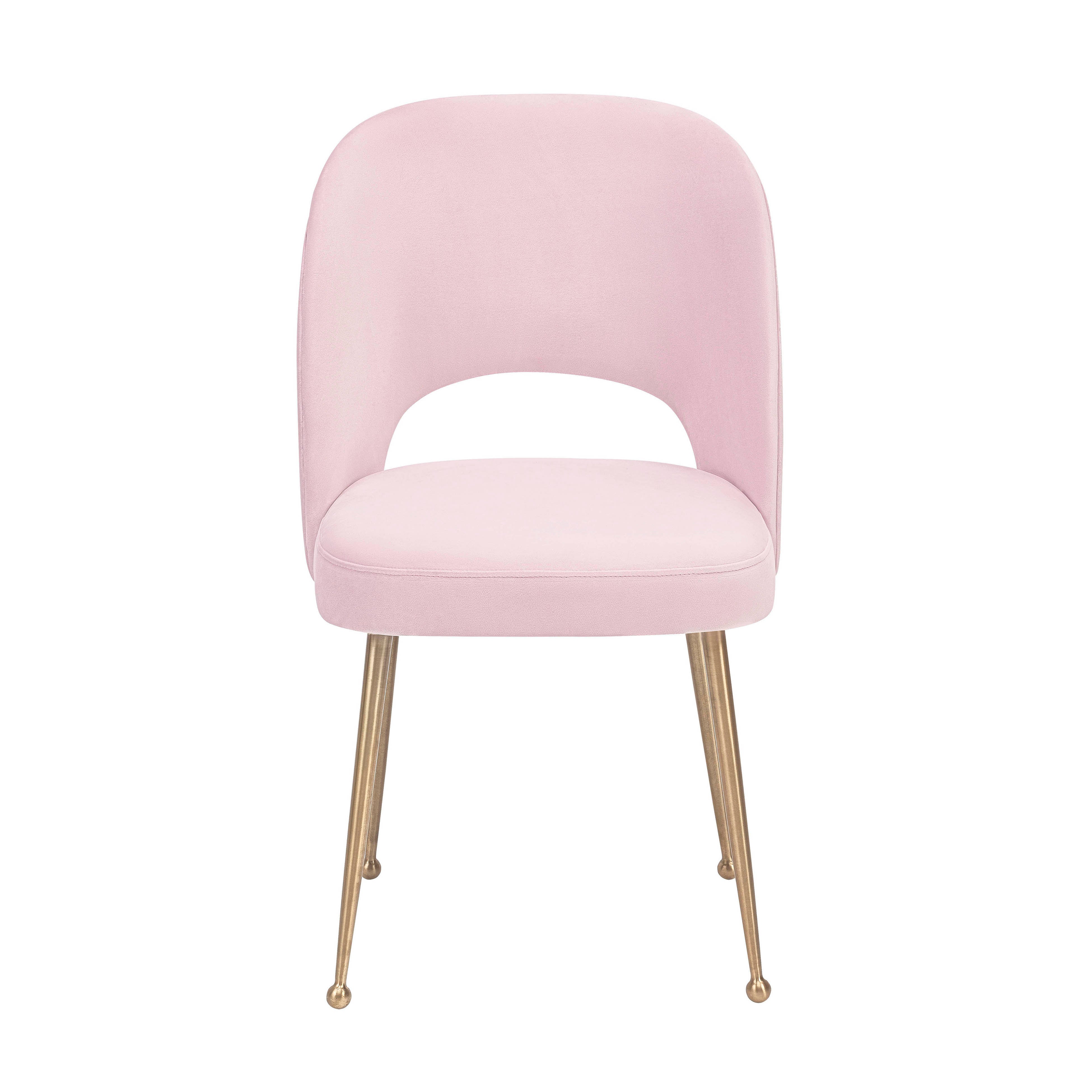 The Swell dining chair offers the perfect blend of Mid Century Modern and Hollywood Glam. With sumptuous velvet upholstery and gold antenna shaped steel legs this chair is a definite winner and is versatile to match any decor. Available in several color options and pairs exceptionally well with one of our complimenting dining tables (shown).