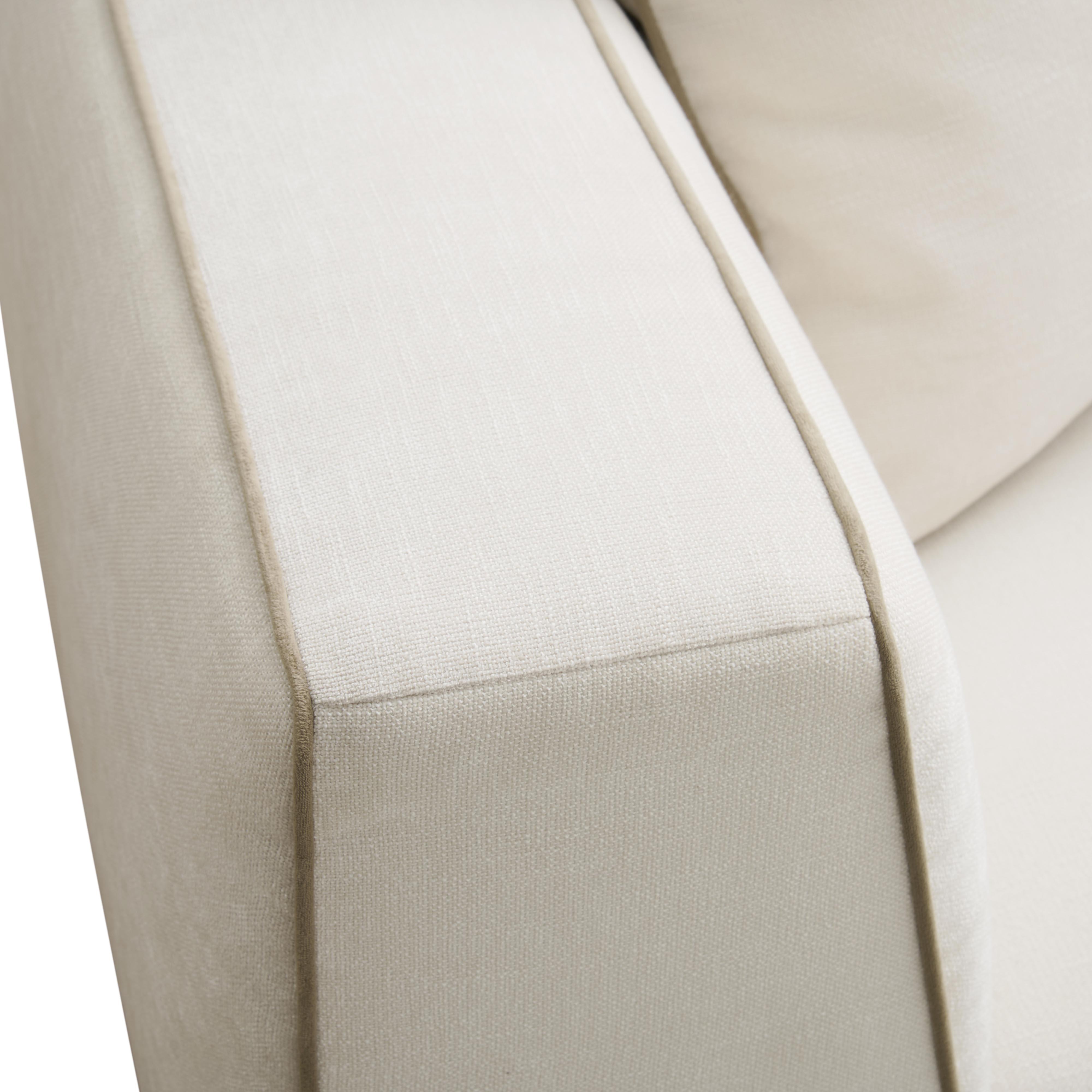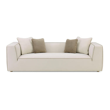 Bold and stylish, the Tristine is a sleek yet formidable addition to your living room. Deep and highly cushioned, this European silhouette is modified for US comfort and comes with heavy accent pillows of ethical synthetic down fibers. Lined with contrasted piping and accent pillows, the mixture of materials here is one of the hottest trends. Amazing in the middle of the room or against a corner, this 360 degree beauty is a showstopped from any angle. Every face is rounded and padded and covered in high density foam.