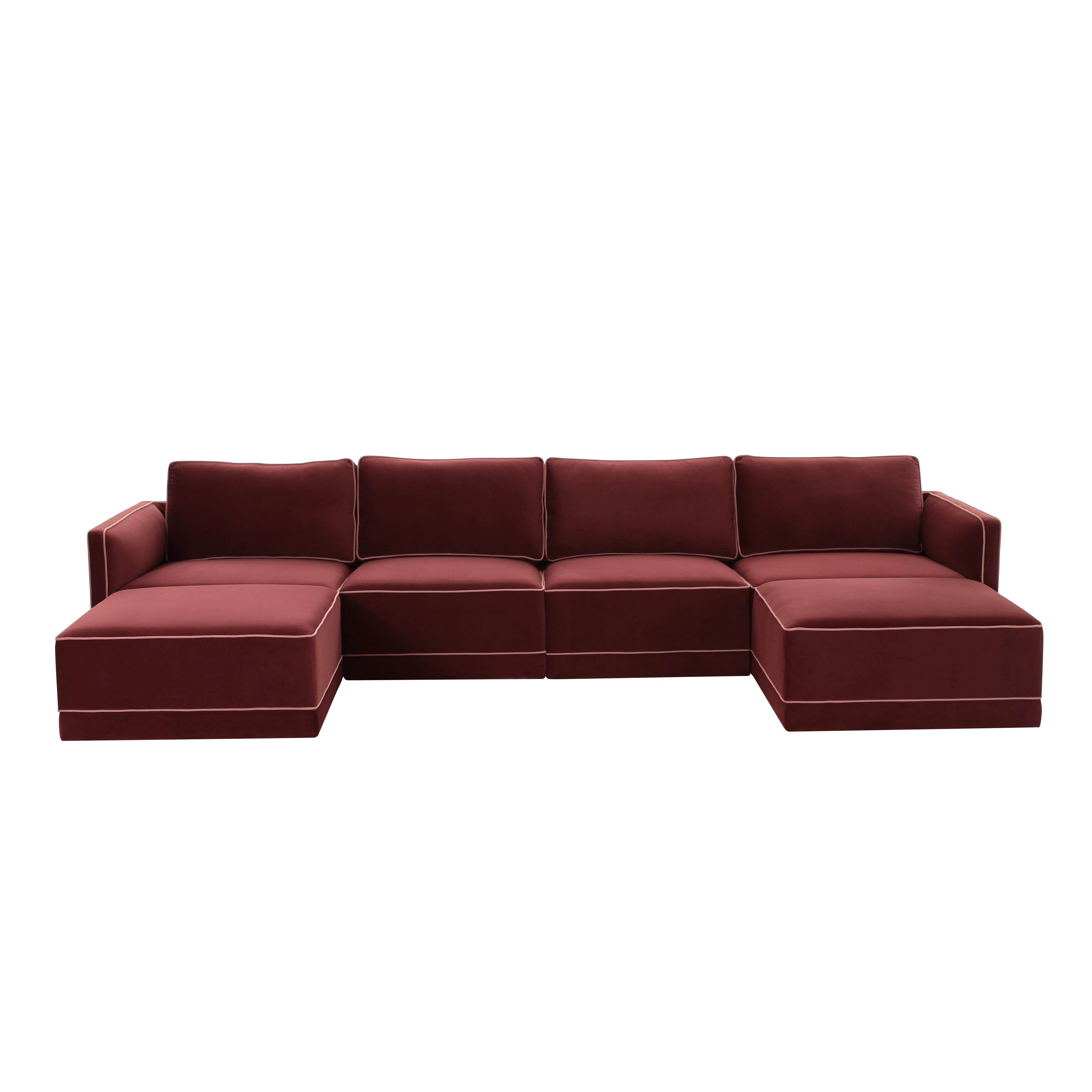 Discover the timeless elegance of the Willow Sectional, a modular masterpiece upholstered in luxurious velvet. This sectional features striking contrast piping in the sophisticated hues of Berry Red, a rich burgundy accented with mauve piping, and Misty Blue, a serene grey-blue with delicate pale blue piping. For those who prefer classic simplicity, the Willow Sectional is also available in solid velvet colors including Taupe, Navy, and Charcoal. With its versatile modular design and plush comfort, the Willow Sectional is the perfect centerpiece for a modern, stylish home.