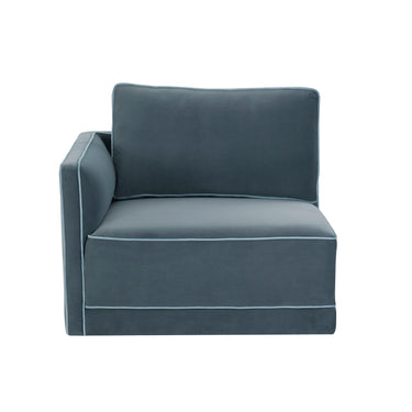 Discover the timeless elegance of the Willow Sectional, a modular masterpiece upholstered in luxurious velvet. This sectional features striking contrast piping in the sophisticated hues of Berry Red, a rich burgundy accented with mauve piping, and Misty Blue, a serene grey-blue with delicate pale blue piping. For those who prefer classic simplicity, the Willow Sectional is also available in solid velvet colors including Taupe, Navy, and Charcoal. With its versatile modular design and plush comfort, the Willow Sectional is the perfect centerpiece for a modern, stylish home.