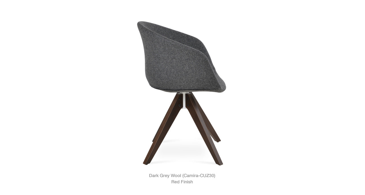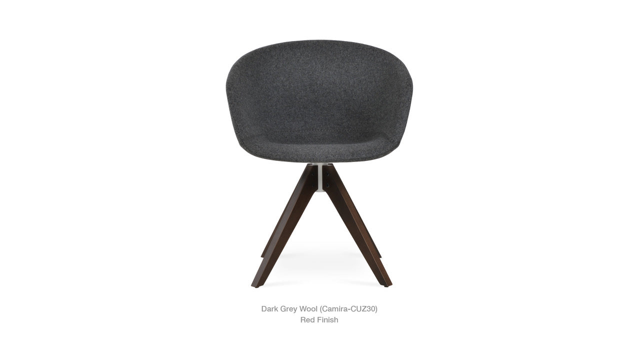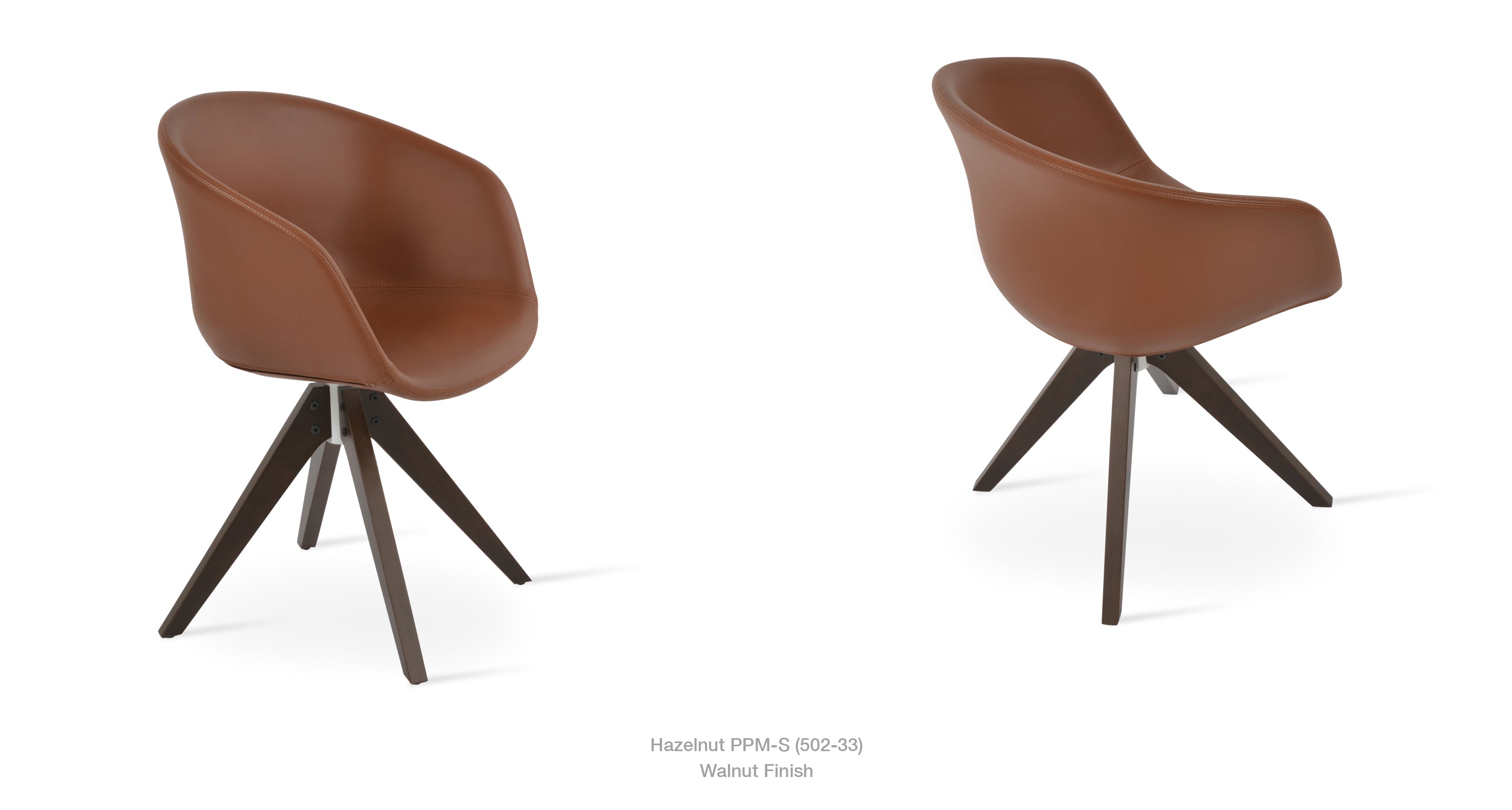 Tribeca Pyramid Swivel is a contemporary dining chair with a comfortable upholstered seat and backrest on swivel wood legs. The seat has a steel structure with “S” shape springs for extra flexibility and strength. This steel frame molded by injecting polyurethane foam. Tribeca seat is upholstered with a removable zipper enclosed leather, PPM, leatherette or wool fabric slip cover. The chair is suitable for residential use only.